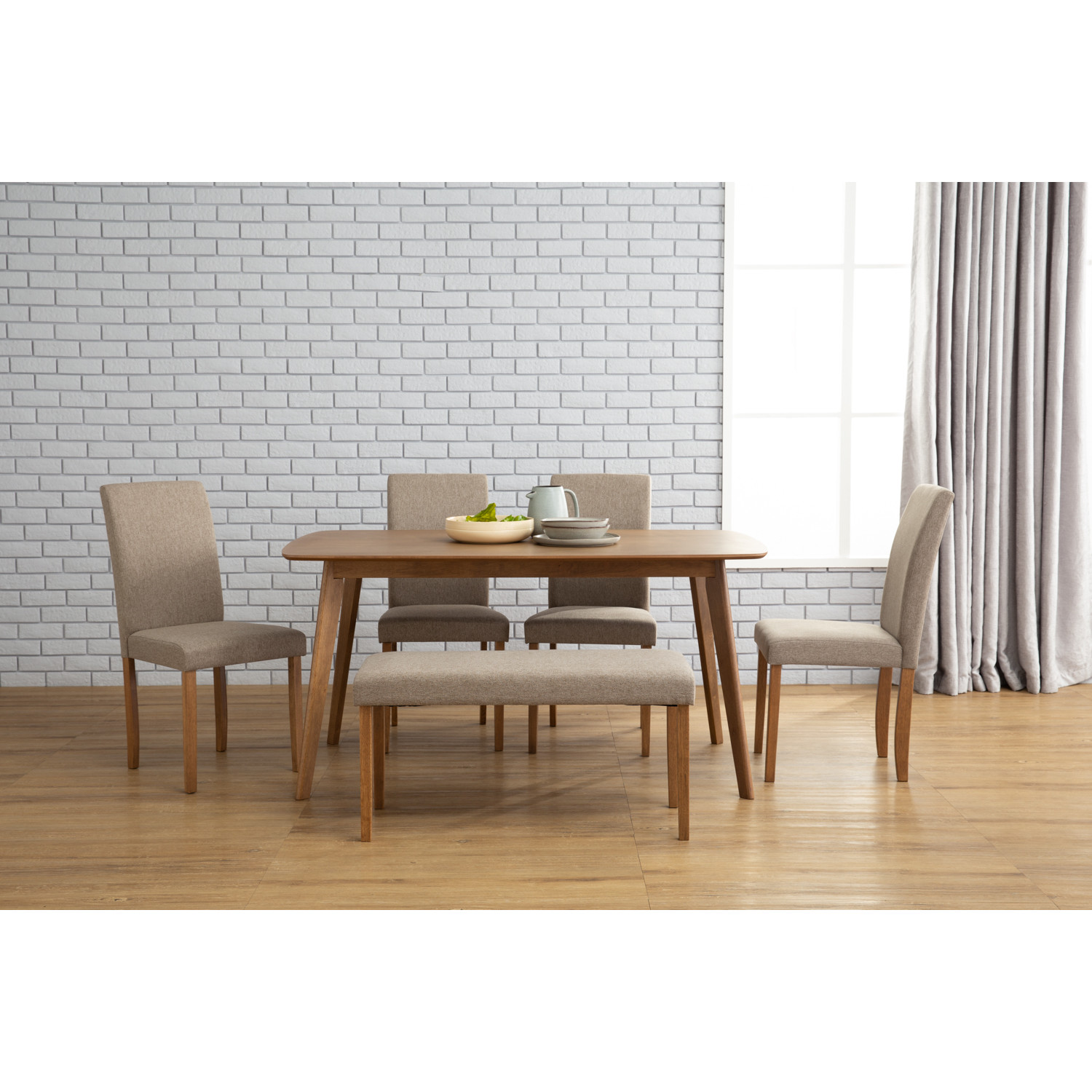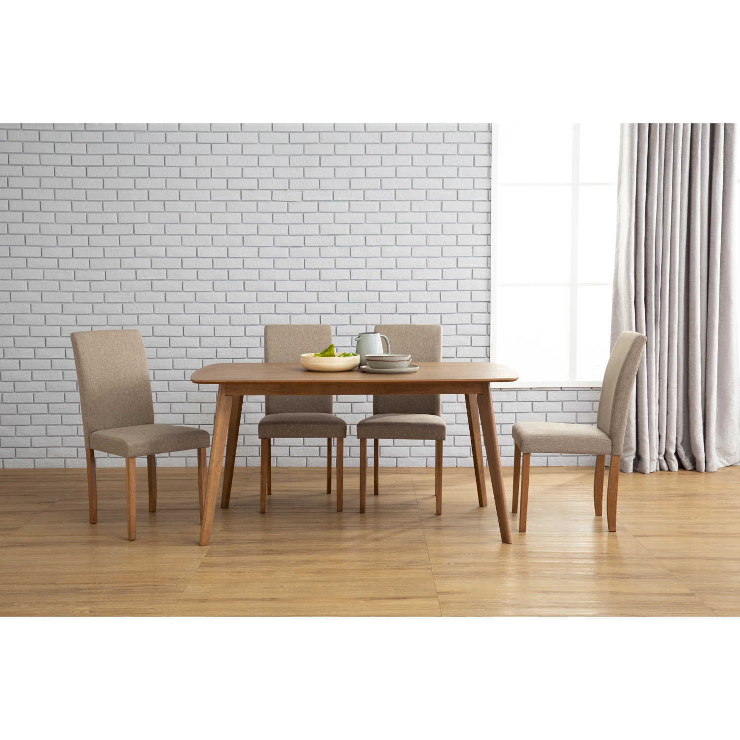 Aimon 900 x 1500 dining table in Cocoa colour. The Aimon Dining Table offers a rustic Mid-Century charm with its solid Malaysian oak legs and MDF veneer top in a rich cocoa finish. Its generous rectangular design provides ample space for family dining, making it both functional and stylish. A perfect centerpiece for homes seeking natural warmth with timeless appeal.