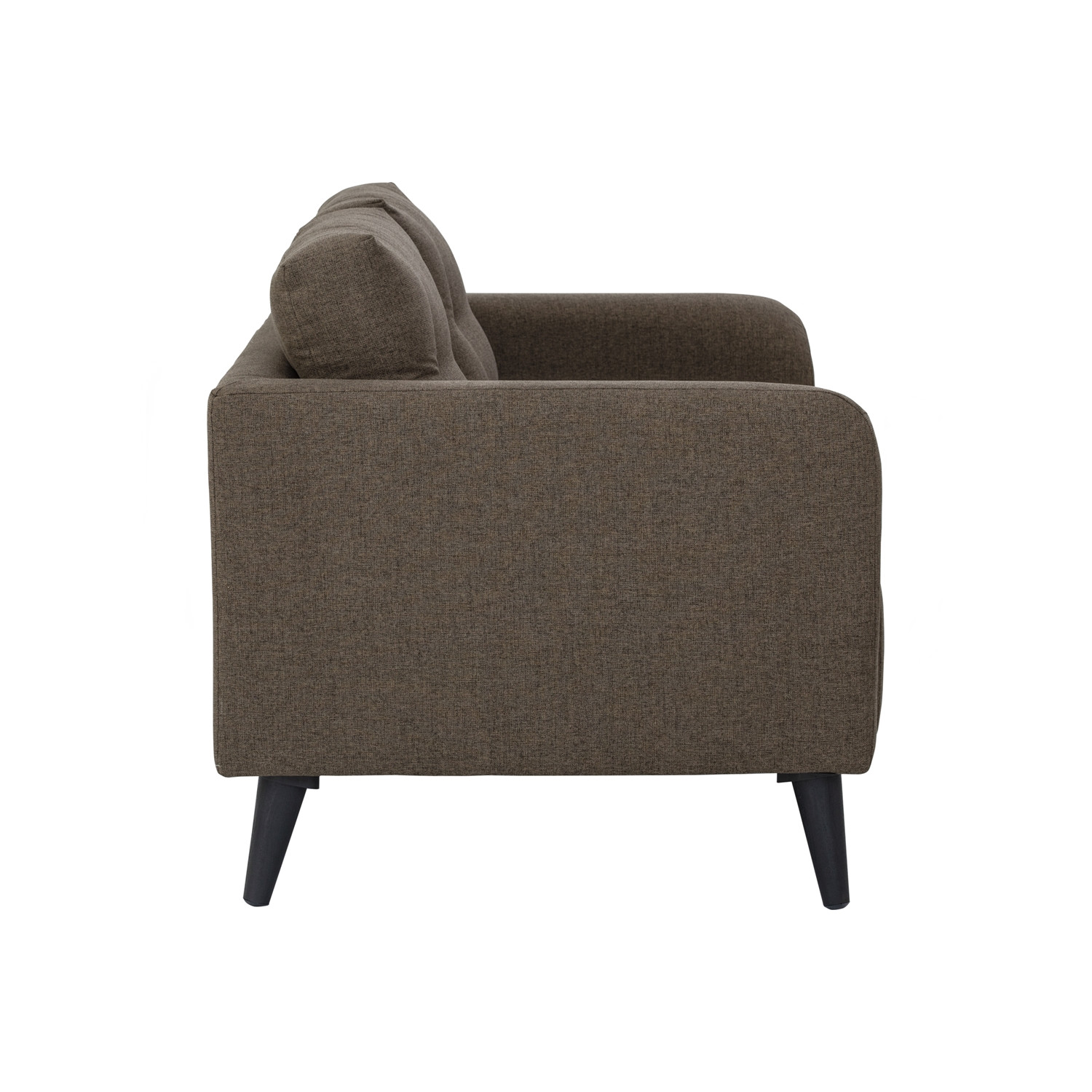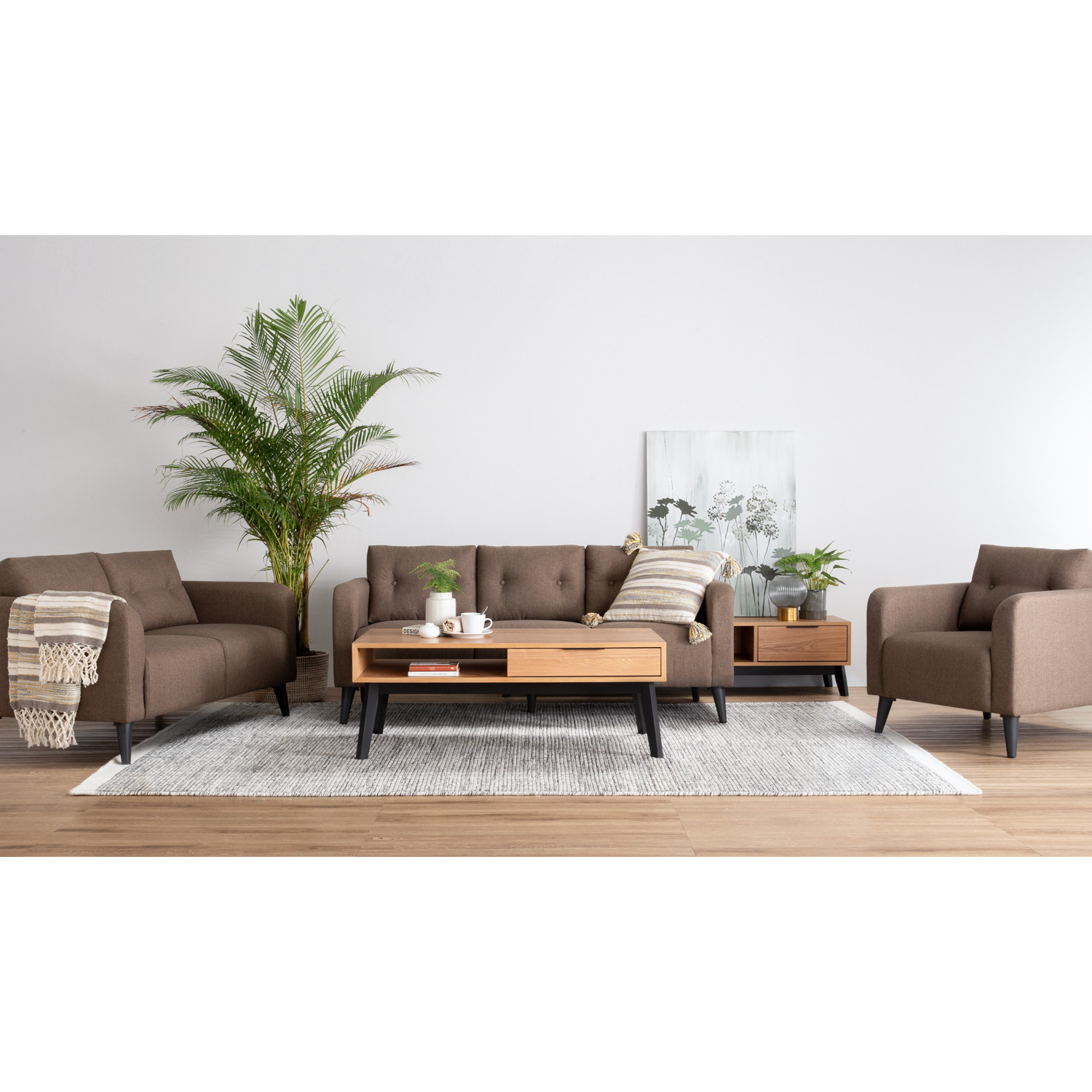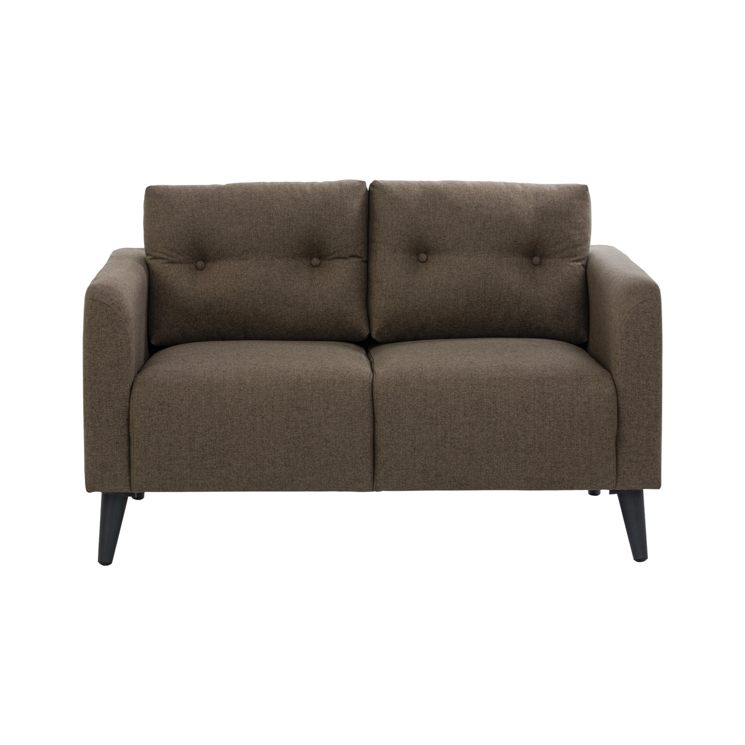 Alto 2 seater sofa in Black colour leg, Chestnut colour Challis fabric body. The Alto 2 Seater Sofa presents Mid-Century Modern styling with Contemporary sensibility. Supported by black PVC legs, it maintains strength and a clean finish. Its tropical wood frame ensures everyday durability. Upholstered in challis fabric in chestnut, it adds earthy warmth and elegance. Designed with simple yet refined lines, it blends seamlessly into modern interiors. Compact in size, it works well in apartments or cozy seating spaces. The chestnut fabric offers a rich tone that complements both bold and neutral settings. A practical and stylish choice for everyday comfort.