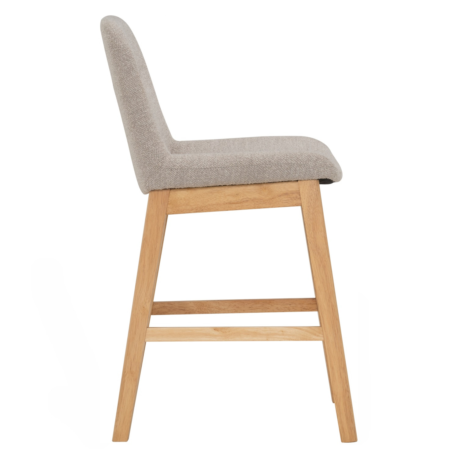 Arden counter chair with Natural colour leg, Beige colour Ruby fabric seat. The Arden Counter Chair embodies Mid-Century Modern elegance with Modern versatility, offering comfort and sophistication. Constructed with a Malaysian oak frame in Natural finish, the chair provides strength and organic character. Its Ruby fabric upholstery in Beige adds a soft, inviting tone suitable for diverse interiors. Designed with ergonomic proportions, the Arden Counter Chair is well-suited for residential counters, cafés, and restaurants that value both style and function.