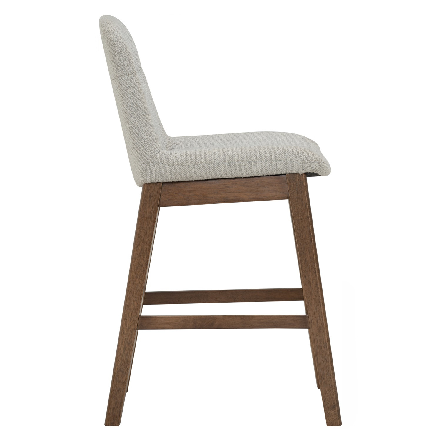 Arden counter chair with Cocoa colour leg, Light Grey colour Ruby fabric seat. The Arden Counter Chair combines Mid-Century Modern aesthetics with Modern practicality, making it a stylish and reliable seating option. Built with a Malaysian oak frame in Cocoa finish, the chair highlights natural warmth and strength. Upholstered in Ruby fabric in Light Grey, the seat and backrest offer both comfort and refined texture. With its supportive profile and elegant proportions, the Arden Counter Chair is perfect for kitchen counters, dining spaces, or hospitality environments.