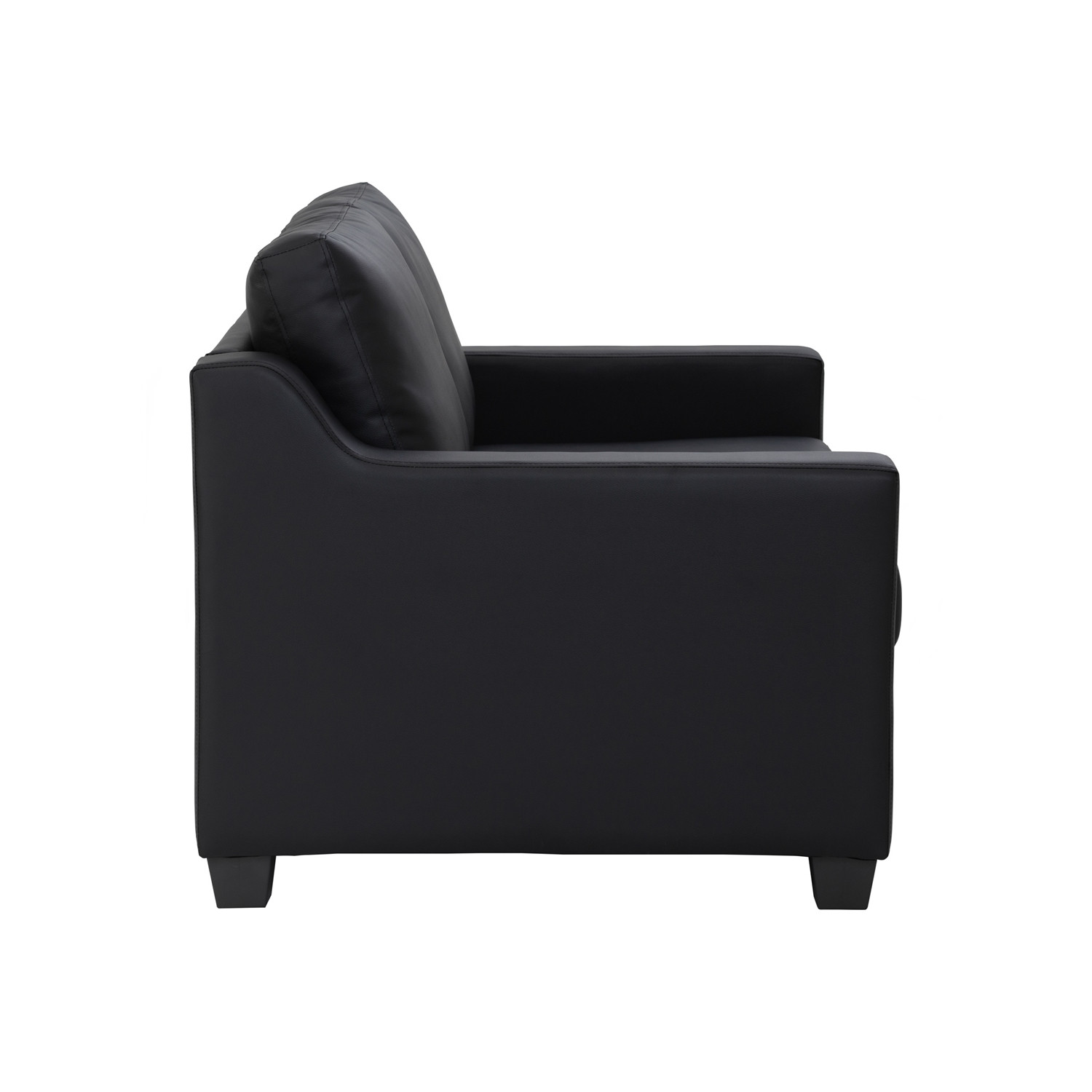 Baleno 2 seater sofa in Black colour leg, Espresso colour Premium Vinyl body. The Baleno 2 Seater Sofa blends Mid-Century Modern style with a Modern finish. Crafted with sturdy PVC legs and a tropical wood frame, it offers reliable durability. Upholstered in premium vinyl in espresso, it delivers a sleek and sophisticated look. The dark tones add depth, making it a versatile fit for contemporary interiors. Its clean lines highlight simplicity, while the vinyl cover ensures easy maintenance. Designed for compact living rooms or lounges, it combines comfort with timeless appeal. A functional and stylish piece, the Baleno sofa is perfect for everyday use.