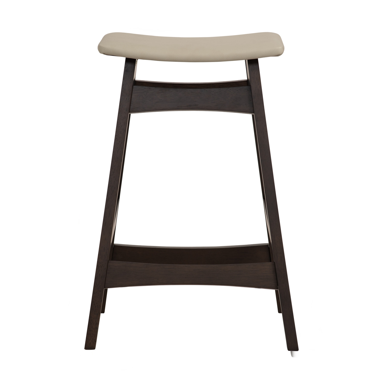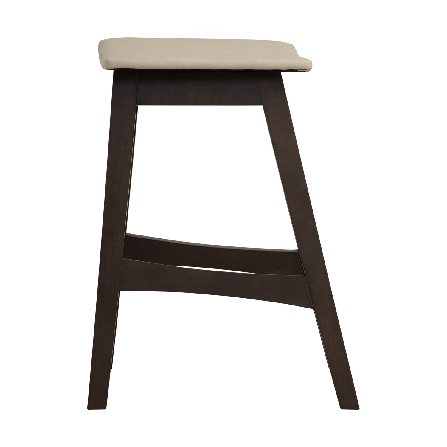 Bernard couter stool with Dark Chestnut colour leg, Cream colour Premium Vinyl. The Bernard Counter Stool blends Mid-Century charm with modern functionality. Supported by Malaysian Oak legs in dark chestnut, it offers strength and a warm natural tone. The cream vinyl seat over MDF provides durability, comfort, and easy maintenance. Compact and versatile, it fits perfectly in kitchen counters, bars, or casual dining areas.