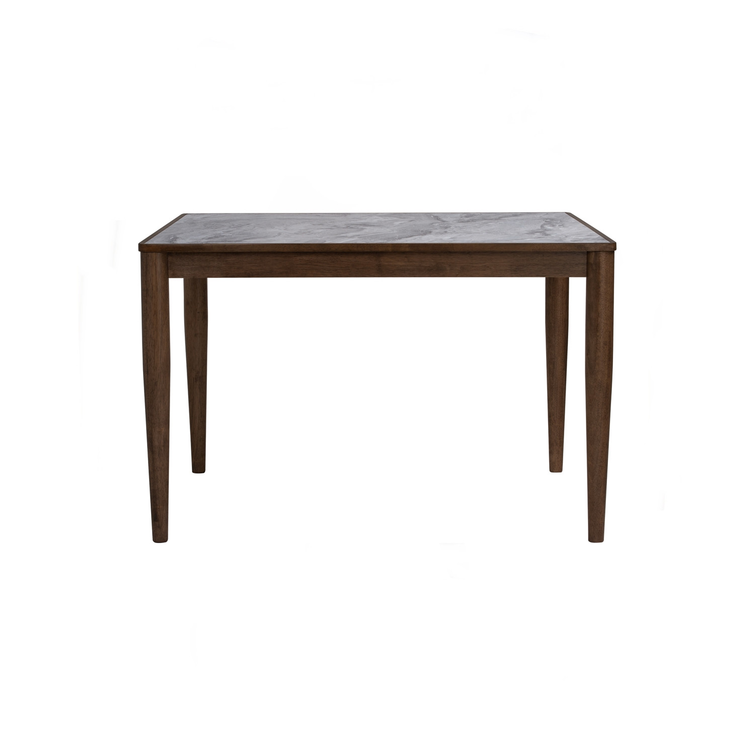 Breda 800×1350 dining table leg in Cocoa colour, White Marble colour Melamine top. The Breda Dining Table blends Mid-Century Modern and minimalist styles. Featuring Malaysian oak legs and a melamine-finished MDF top, it combines strength with style. The cocoa legs pair elegantly with a white marble effect top. Sized at 1350x800mm, it is ideal for modern dining spaces.
