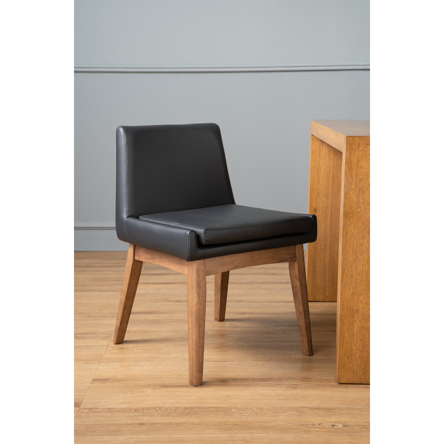 Chanel dining chair in Cocoa colour leg, Espresso colour Vinyl frame. The Chanel Dining Chair combines Mid-Century elegance with practical comfort. Crafted with sturdy Malaysian Oak legs in cocoa finish, it ensures stability and timeless appeal. Upholstered in espresso vinyl, the chair offers durability and easy maintenance while maintaining a sleek look. A versatile piece that fits effortlessly into modern dining spaces and hospitality settings.