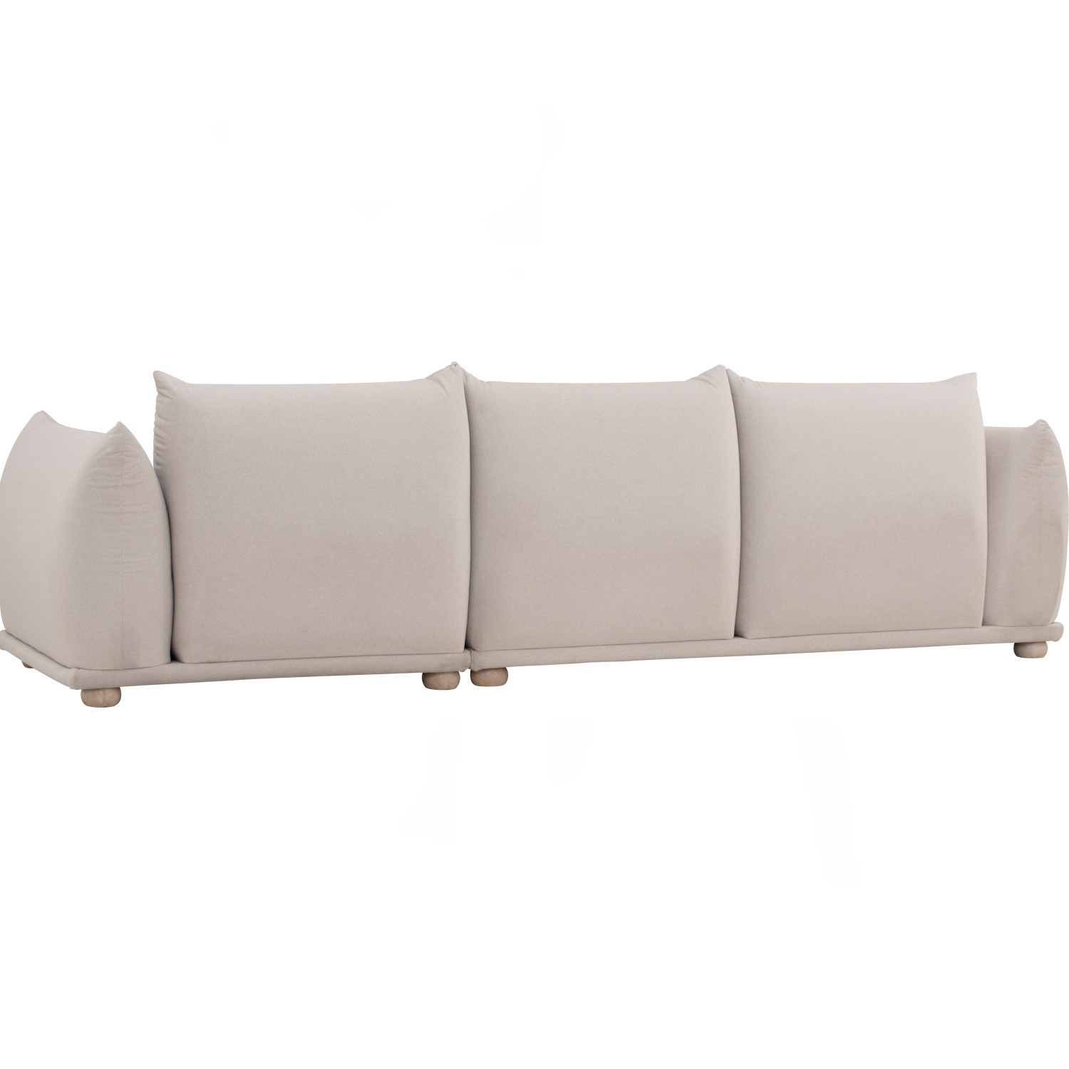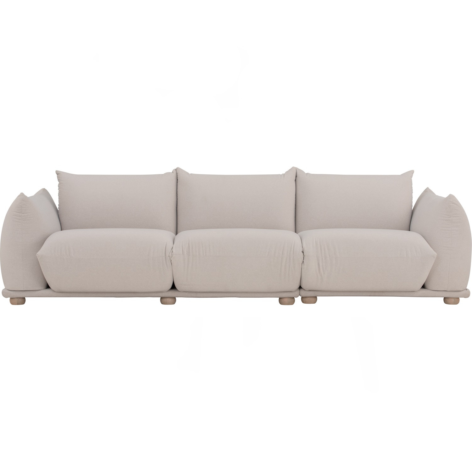 Clio 3 seater sofa with White wash leg, Grey Mist colour Mohair fabric (Pet friendly fabric). The Clio 3 Seater Sofa brings together Mid-Century Modern lines and Art Deco elegance, resulting in a striking and luxurious seating option. Supported by Malaysian Oak legs in a subtle white wash finish, the frame complements its refined silhouette. Upholstered in pet-friendly Mohair fabric in a soft grey mist tone, it offers both sophistication and practicality for family homes or hospitality settings. The tactile texture of the fabric adds depth and warmth, while the solid oak foundation ensures long-lasting support. This sofa is designed for interiors that seek both comfort and style with a touch of timeless charm.