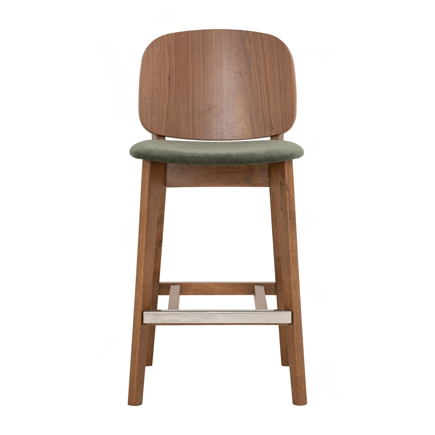 Cora counter chair in Cocoa colour frame, Walnut veneer back and Deep Green colour Danny A fabric seat. The Cora Counter Chair merges Mid-Century Modern sophistication with Rustic warmth, designed for stylish and durable seating. Crafted with Malaysian oak legs in Cocoa and a walnut veneer backrest, it highlights natural beauty and strength. The seat, upholstered in Danny A fabric in Deep Green, adds a bold, contemporary accent while ensuring comfort. With its supportive proportions and elegant material mix, the Cora Counter Chair is ideal for kitchens, dining counters, or hospitality settings seeking timeless appeal.