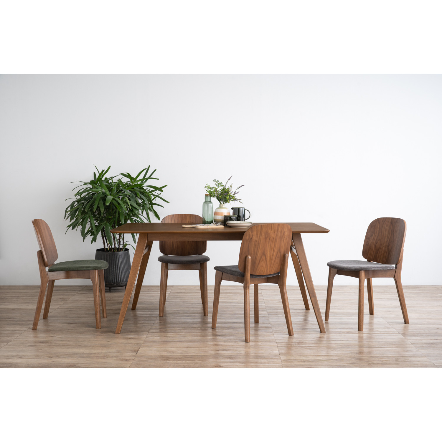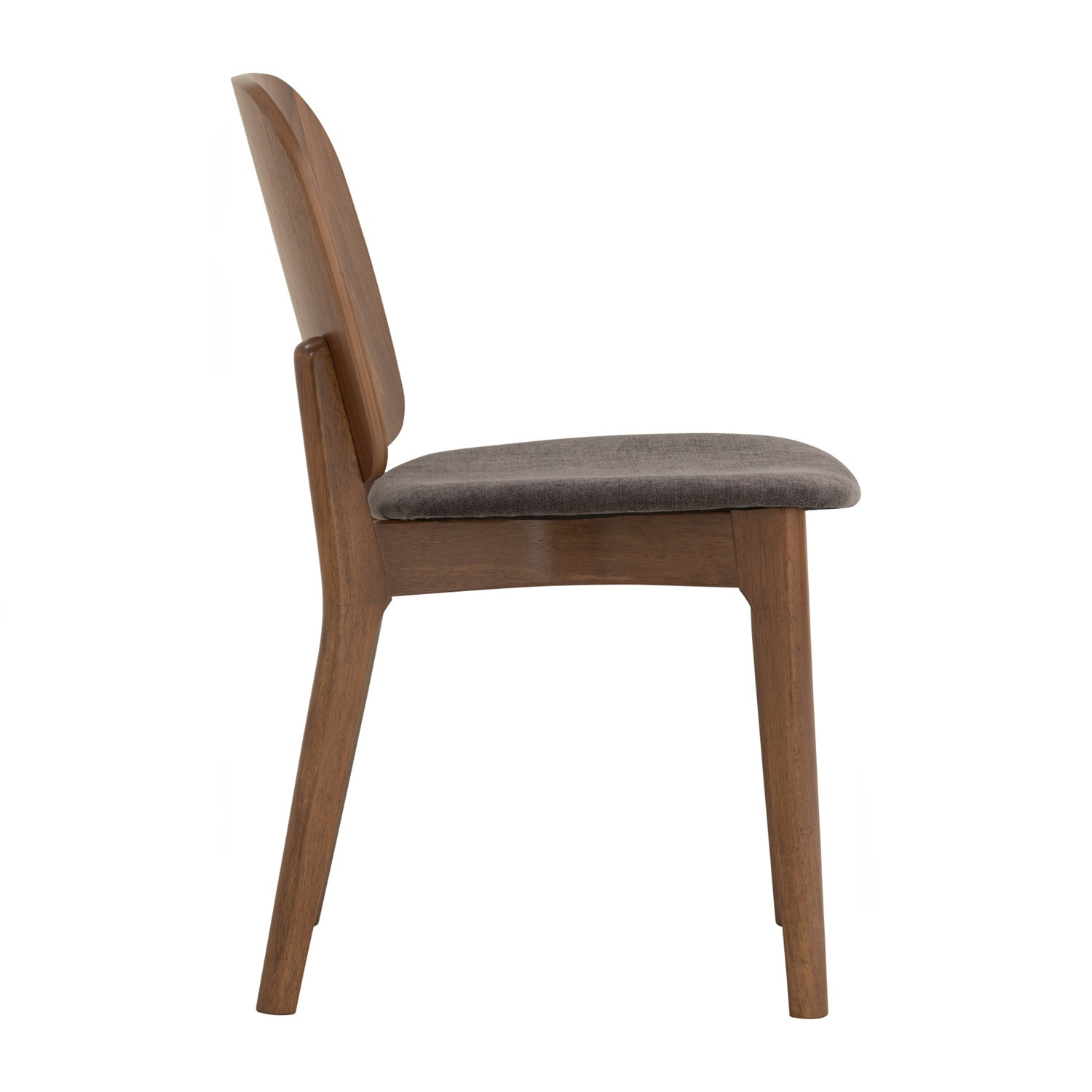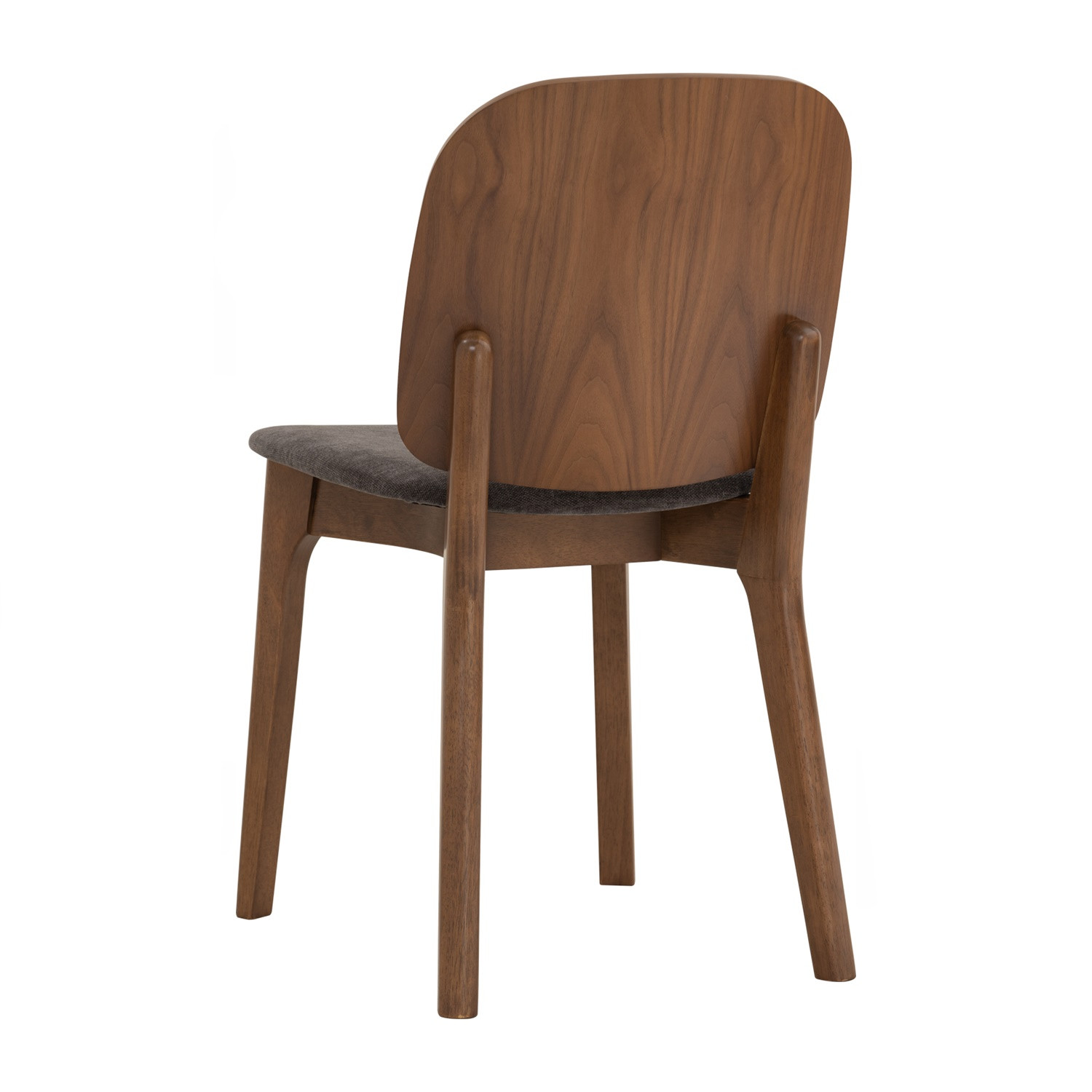 Cora dining chair in Cocoa colour frame, Walnut veneer back and Deep Grey colour Danny A fabric seat. The Cora Dining Chair exudes elegance with its refined mid-century modern style. Built with cocoa-toned oak legs and a walnut-veneered bentwood back, it combines strength with warm natural tones. The upholstered seat in deep grey fabric adds comfort and contrast, making it suitable for both casual and formal dining spaces. Its tall backrest ensures ergonomic support, while the slim frame keeps the design light and versatile. Perfect for modern homes, it pairs beautifully with wooden or mixed-material dining tables.