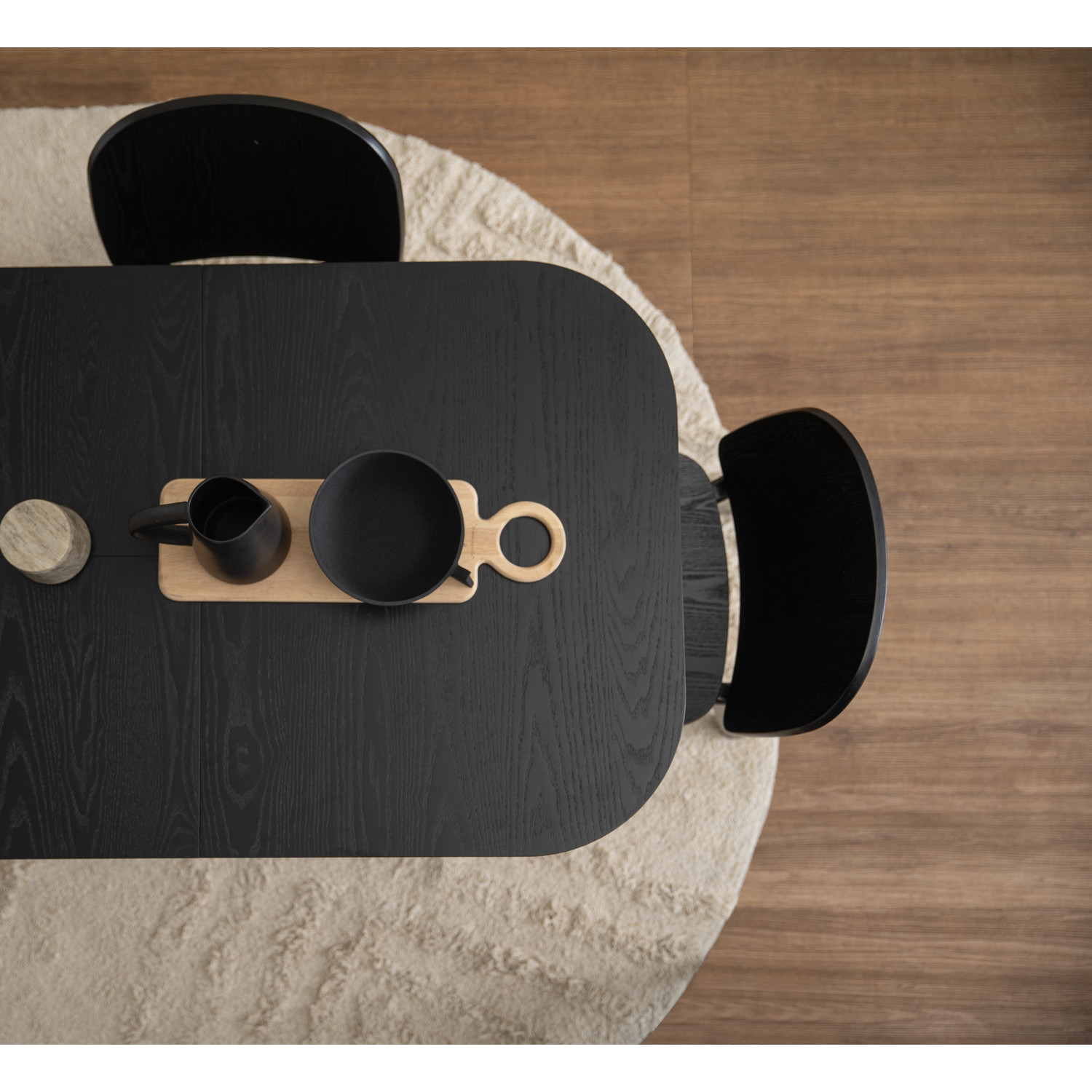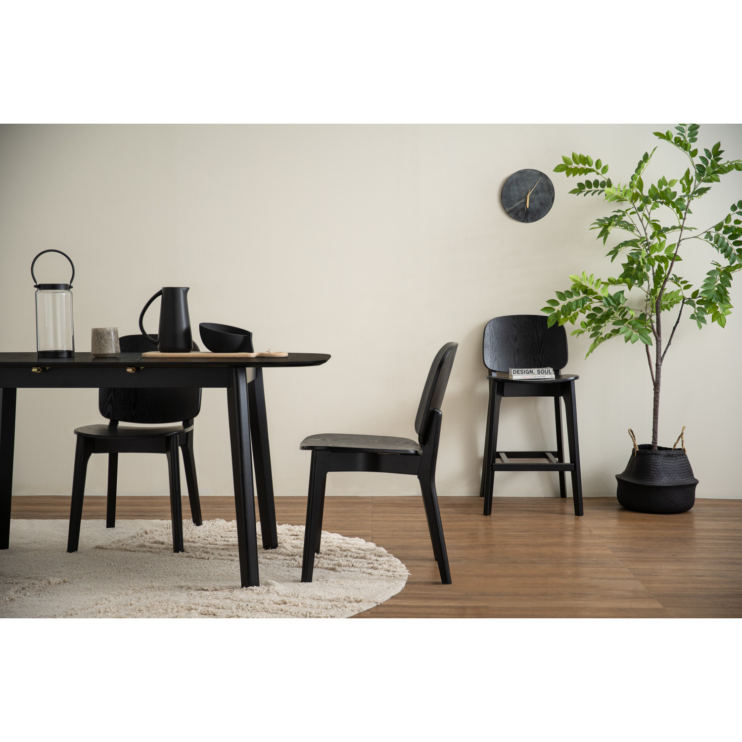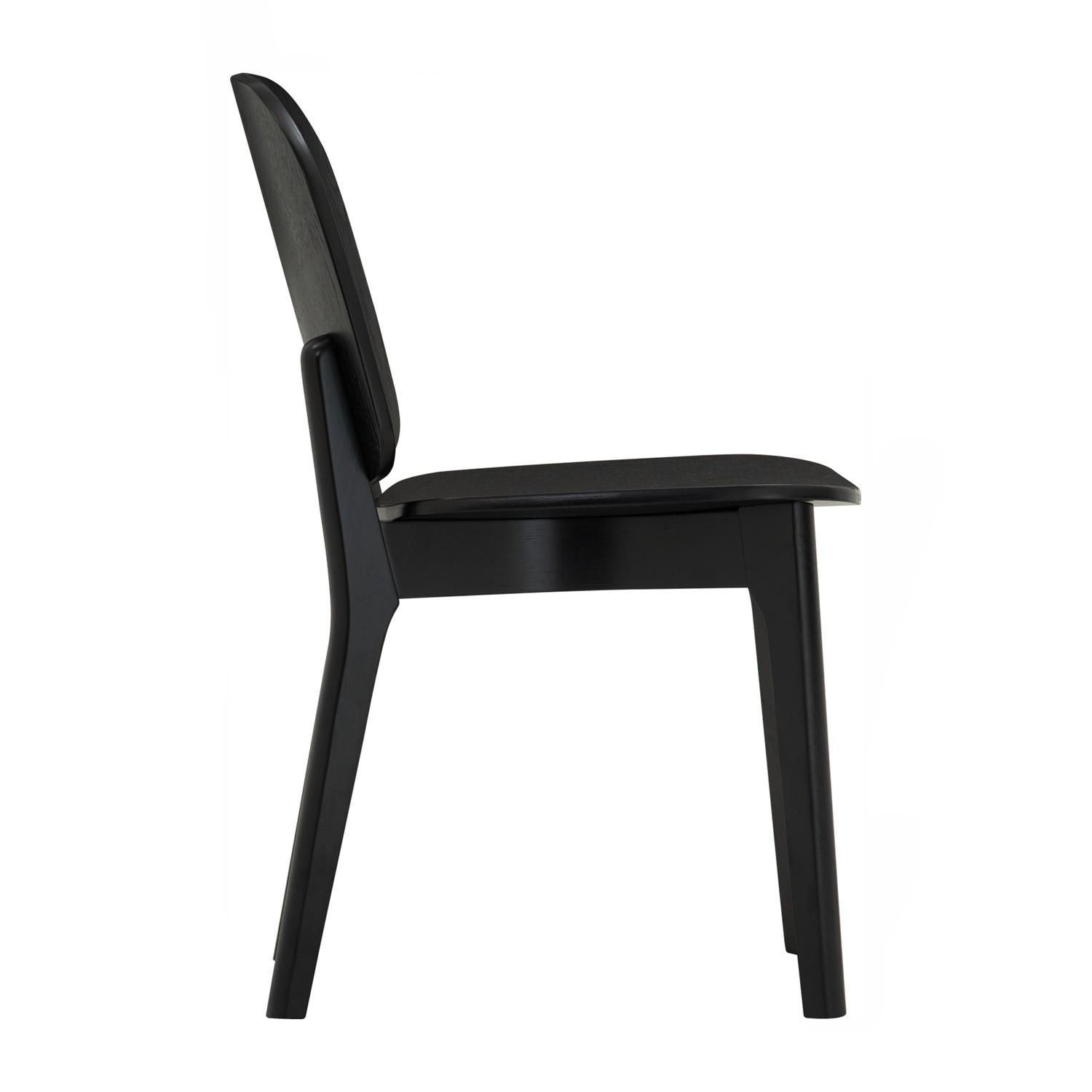 Cora dining chair in Black colour frame and seat.. The Cora Dining Chair in black Malaysian oak with bentwood and ash veneer embodies Scandinavian simplicity. Its curved backrest ensures ergonomic support, while clean lines emphasize timeless design. Lightweight yet durable, Cora is perfect for dining rooms, offices, or cafés, adding elegance to everyday living.
