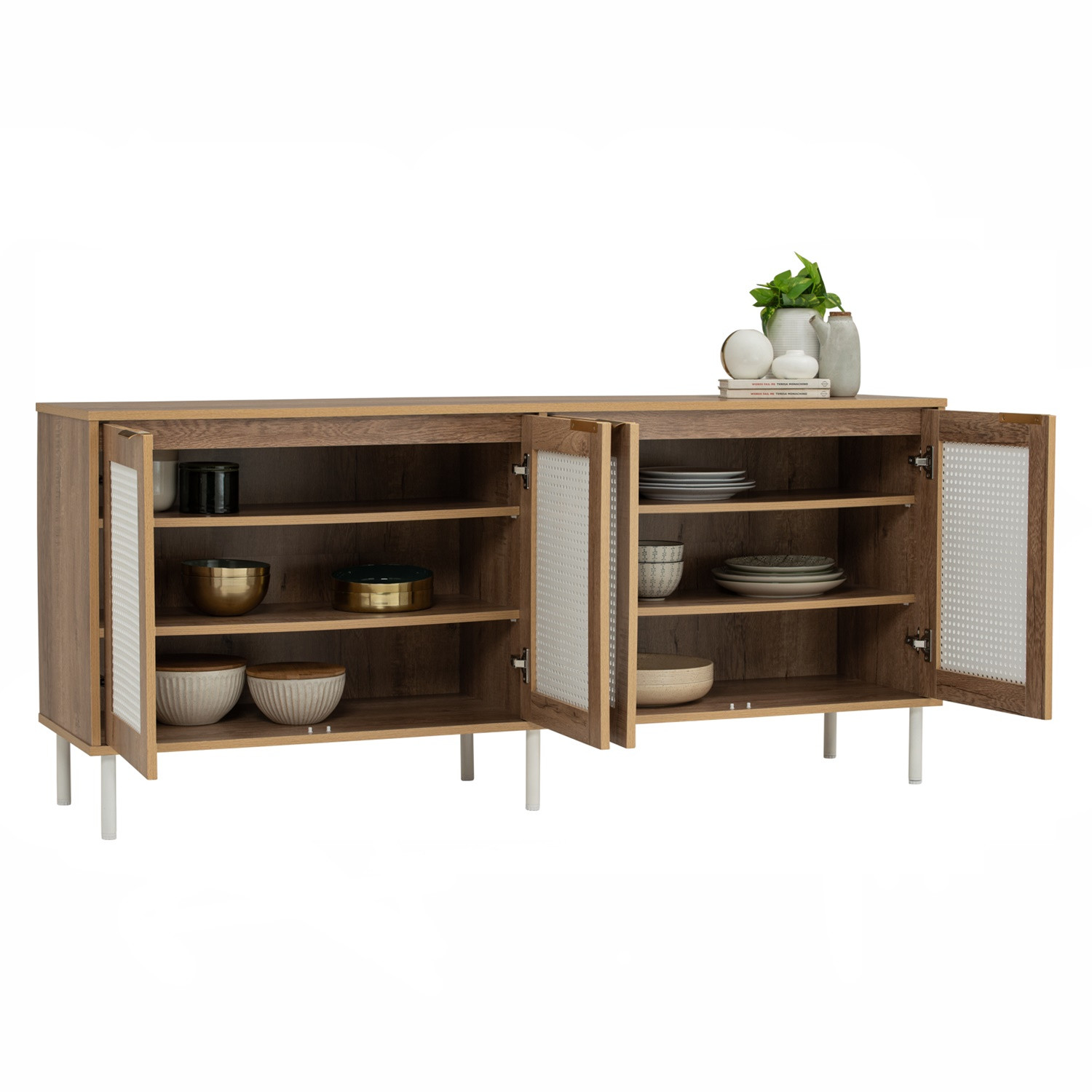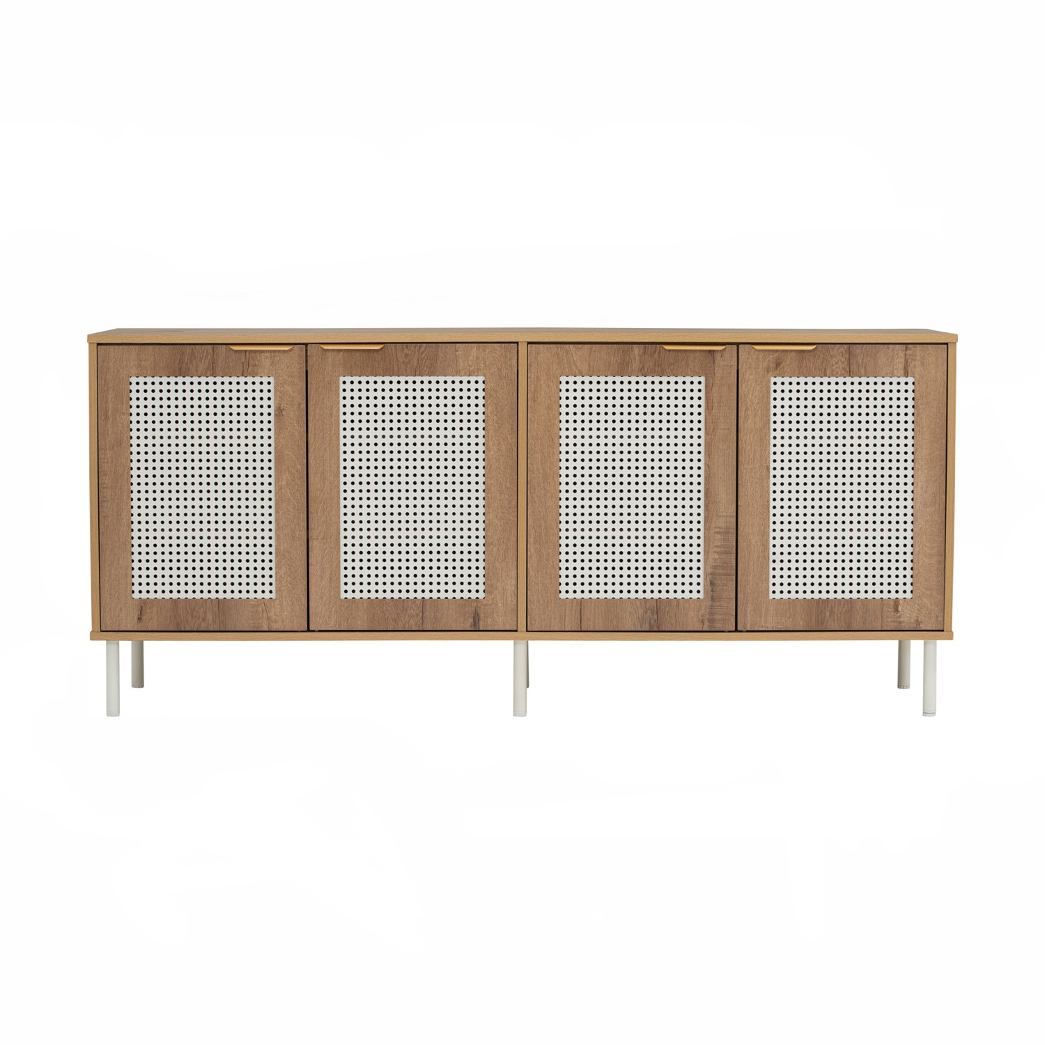 Dallas 1.6m sideboard in Matt Black Epoxy leg, Wotan Oak colour body. The Dallas Sideboard introduces a fresh Scandinavian-modern style, blending a laminated oak body with slim matte white metal legs. Its light-toned finish and clean structure create an airy, contemporary presence that brightens interiors. The Wotan oak finish provides warmth and texture, while the white base gives it a crisp, minimalist edge. Perfect for dining or living rooms, it offers practical storage while maintaining a sleek, uncluttered look. With its durable materials and balanced design, the Dallas Sideboard is an excellent choice for modern spaces seeking functionality with a touch of Scandinavian charm.