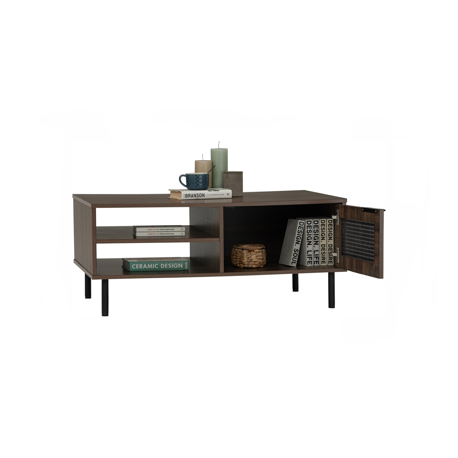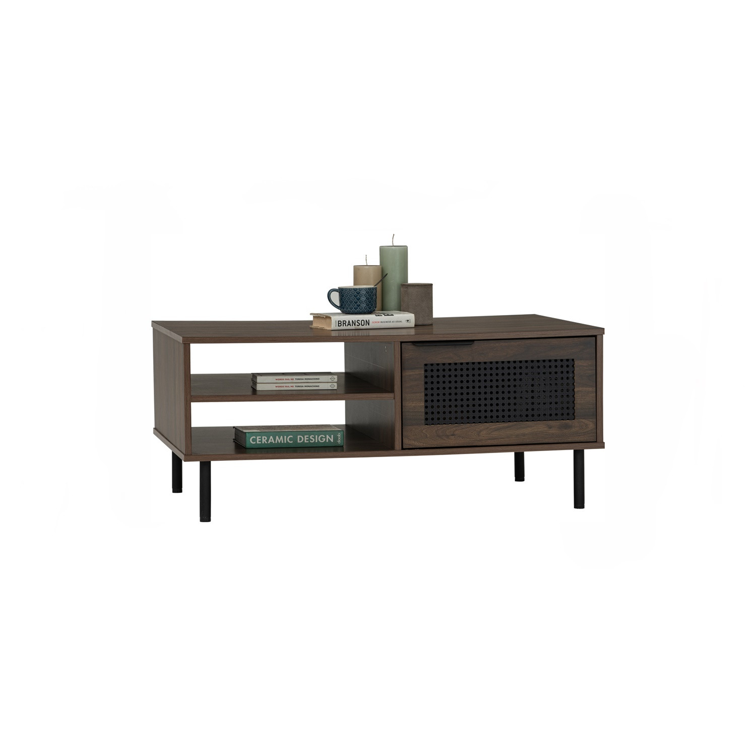 Dallas coffee table in Matt Black Epoxy leg, Walnut colour body. The Dallas Coffee Table reflects Mid-Century Modern style with minimalist detailing. Built with black epoxy-coated metal legs and a laminated walnut-toned body, it combines strength with natural warmth. Its clean-lined rectangular form fits seamlessly into contemporary living rooms, offering ample surface space for gatherings or decorative accents. Compact yet functional, it suits apartments as well as larger homes. The Dallas Coffee Table is an elegant and practical centerpiece designed for modern everyday living.