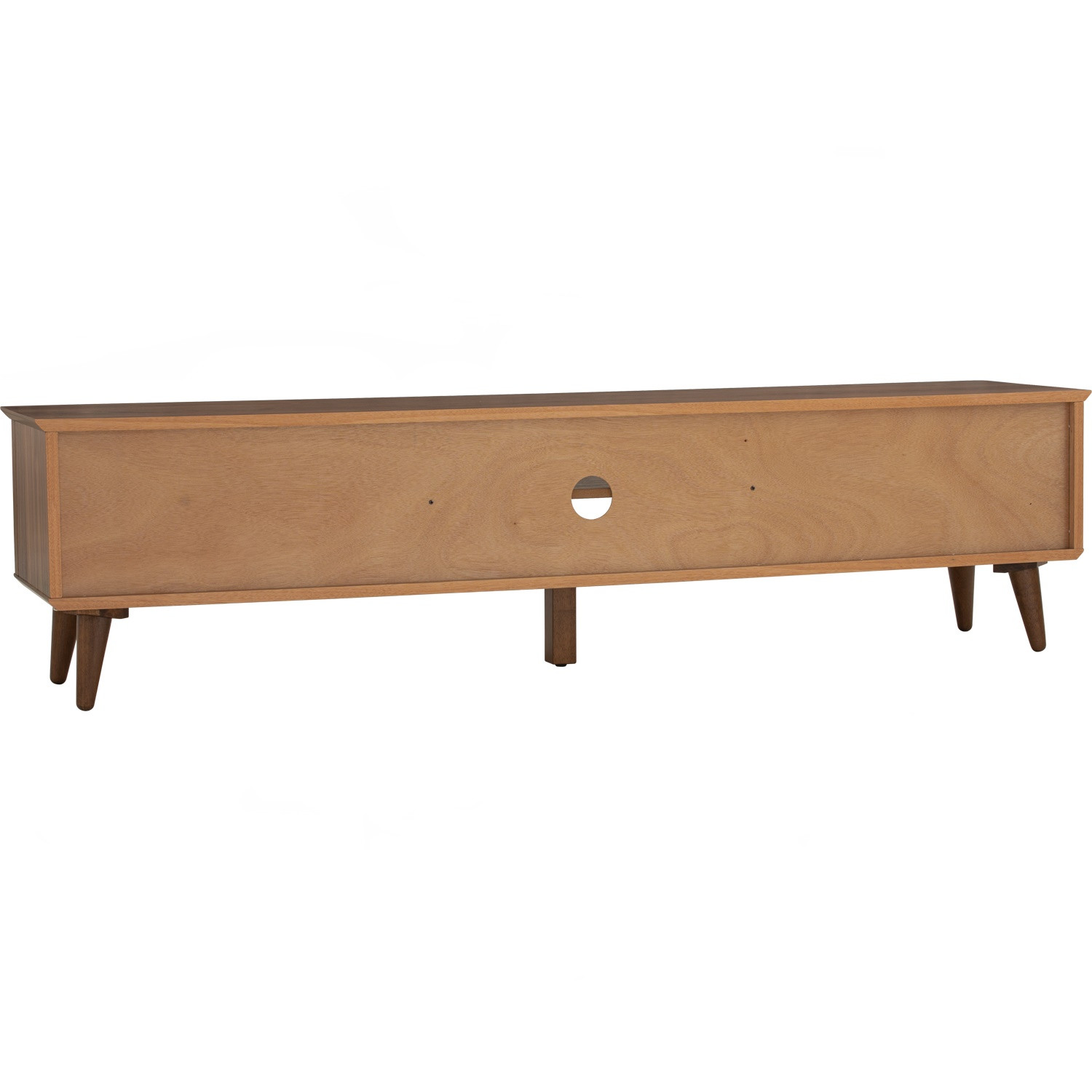 Dover 1.8M TV Cabinet in Cocoa colour leg, Walnut veneer body. The Dover 1.8M TV Cabinet pairs Malaysian Oak legs in cocoa with a walnut veneer body, creating a refined and timeless look. Its clean lines and warm wood tones bring sophistication to any living space. Durable and practical, it provides ample storage for entertainment needs. An elegant addition to modern and transitional interiors.