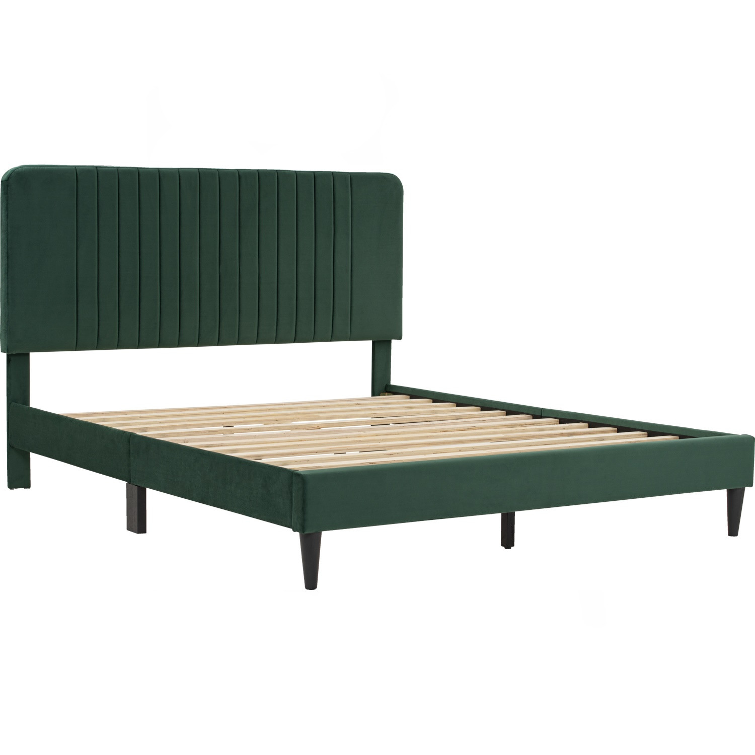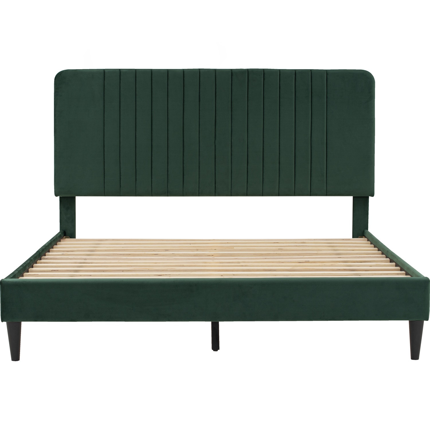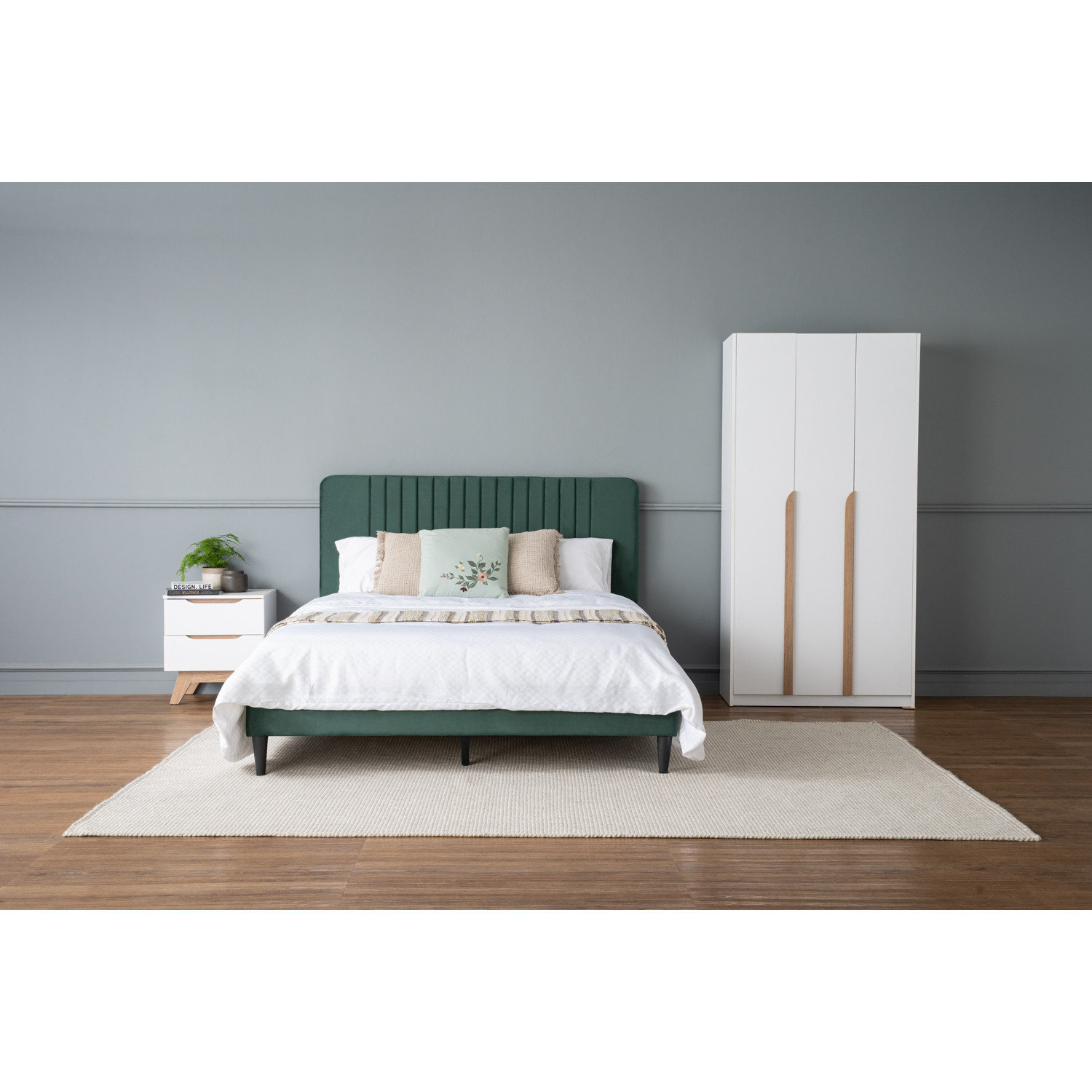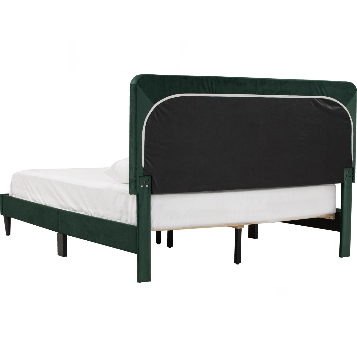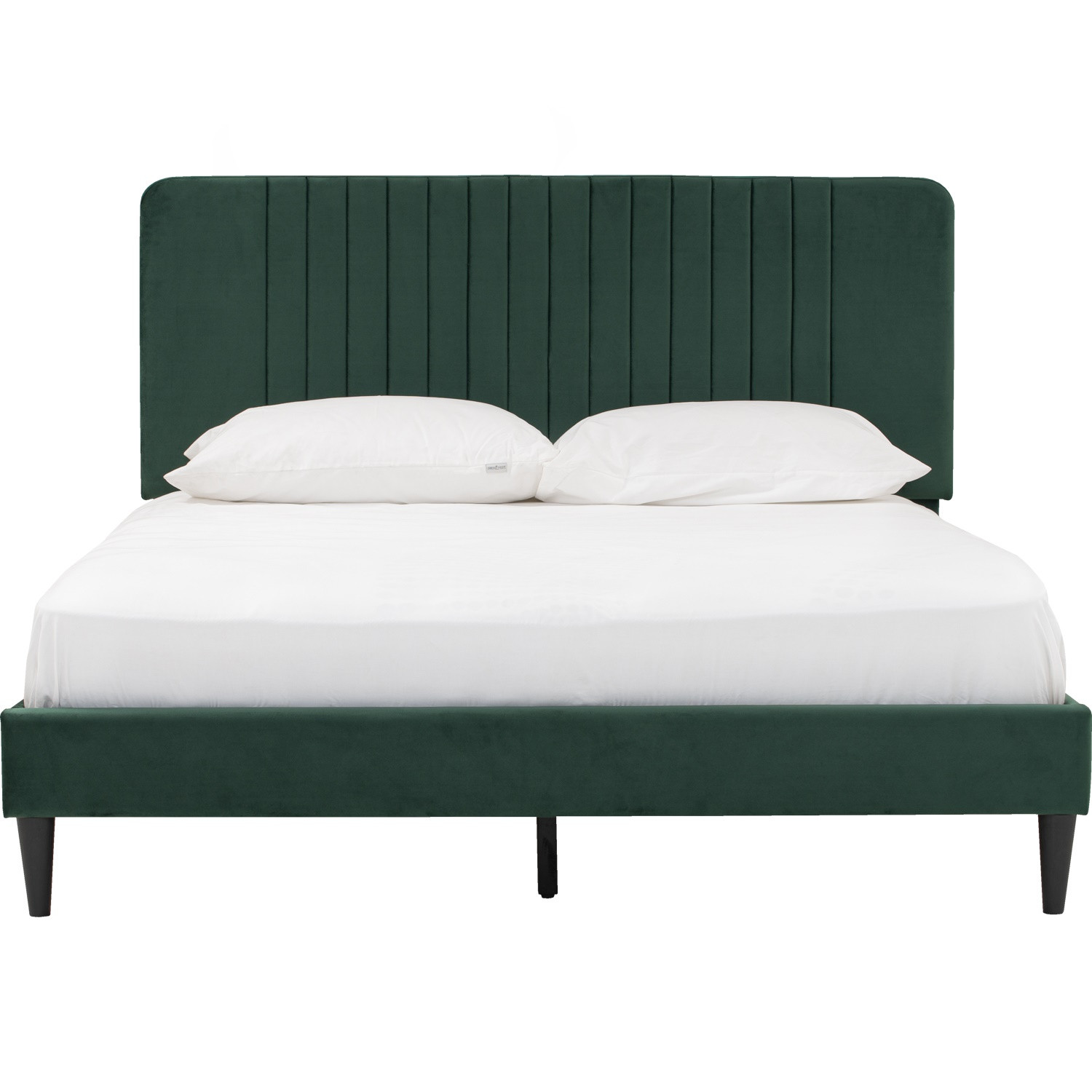 Fluffy Queen bed on Matt Black Epoxy leg, Kale colour Veloutine fabric (Fit mattress: 1540mm x 1930mm). The Fluffy Queen Bed with 1900mm side rail delivers Mid-Century Modern charm with minimalist sensibility. Supported by sleek black epoxy-coated metal legs, it ensures strength while maintaining a contemporary profile. The frame is upholstered in Kale Veloutine fabric, bringing a rich, earthy tone that elevates the bedroom atmosphere. Designed to fit a 1540 x 1930mm mattress, it provides excellent comfort and reliable support. The clean silhouette pairs well with both modern and eclectic interiors. Practical and stylish, the Fluffy bed is ideal for those who want an inviting centerpiece that combines soft texture with timeless design.