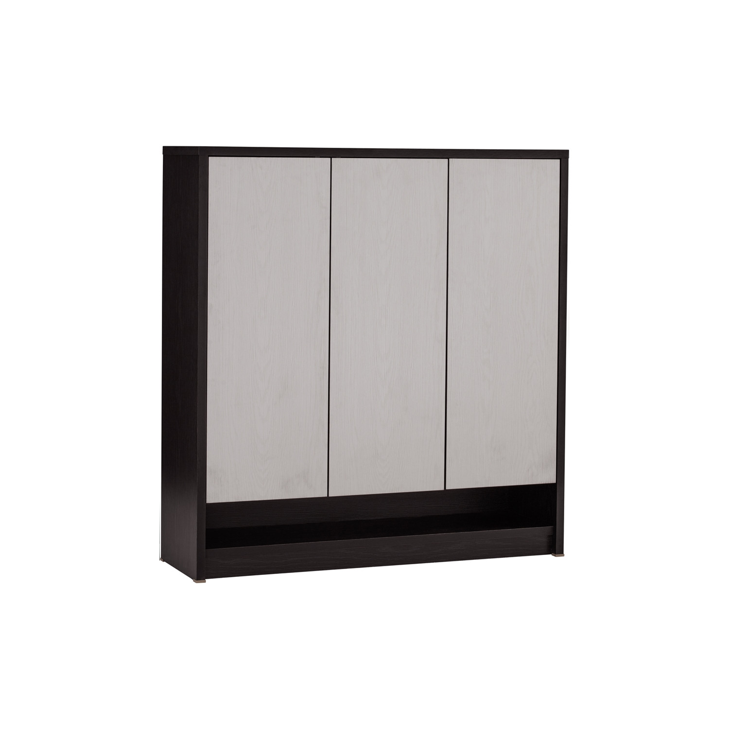 Habib 3 door shoe cabinet in Black laminate body and Light Grey laminate door. The Habib 3 Door Shoe Cabinet combines minimalist design with modern practicality. Built from laminated board, it features a bold black frame paired with light grey doors for a striking contrast. Its three-door structure provides generous storage for multiple pairs of shoes, helping maintain a clutter-free entryway. Compact yet functional, it blends seamlessly into modern interiors, adding both utility and visual appeal. With its monochrome tones, this cabinet is versatile enough to complement different décor styles while maintaining a clean and organized look.