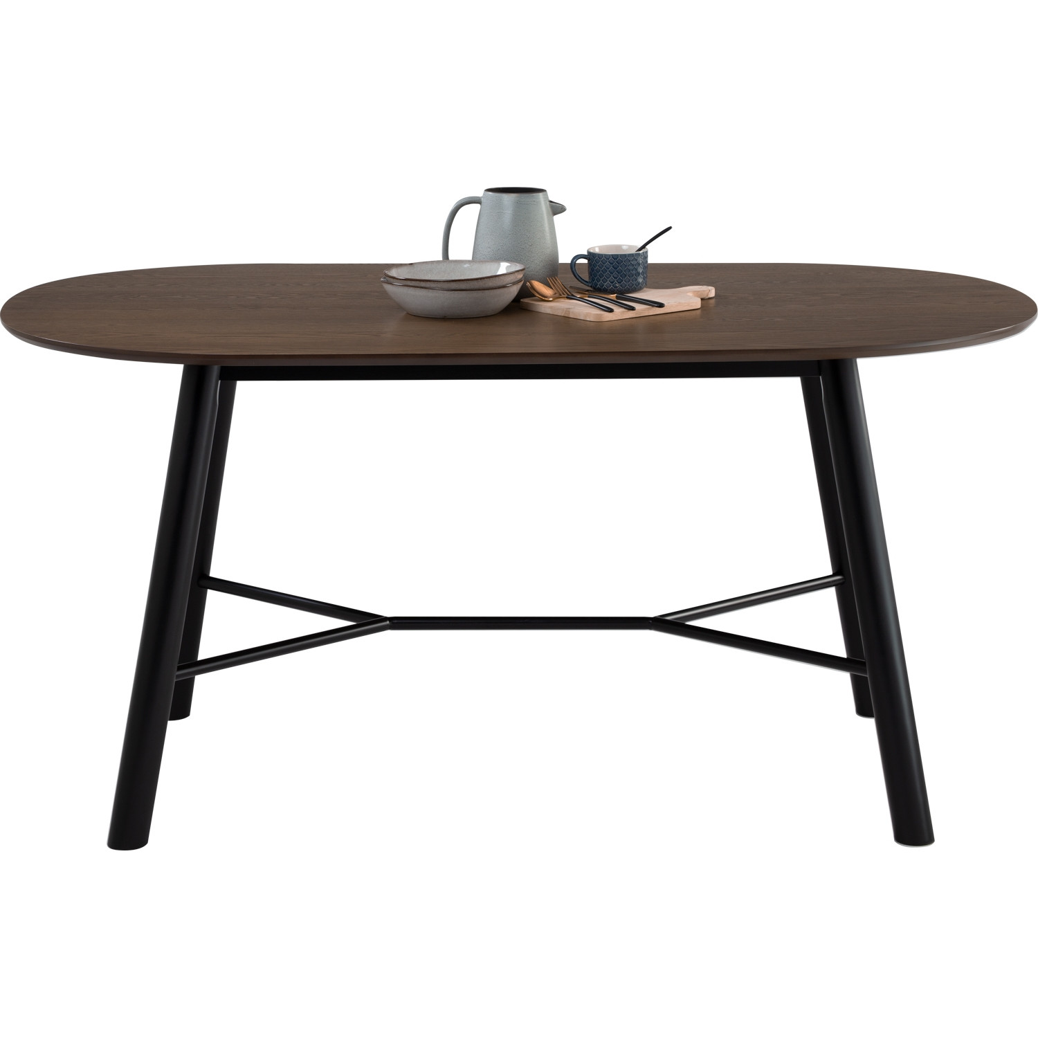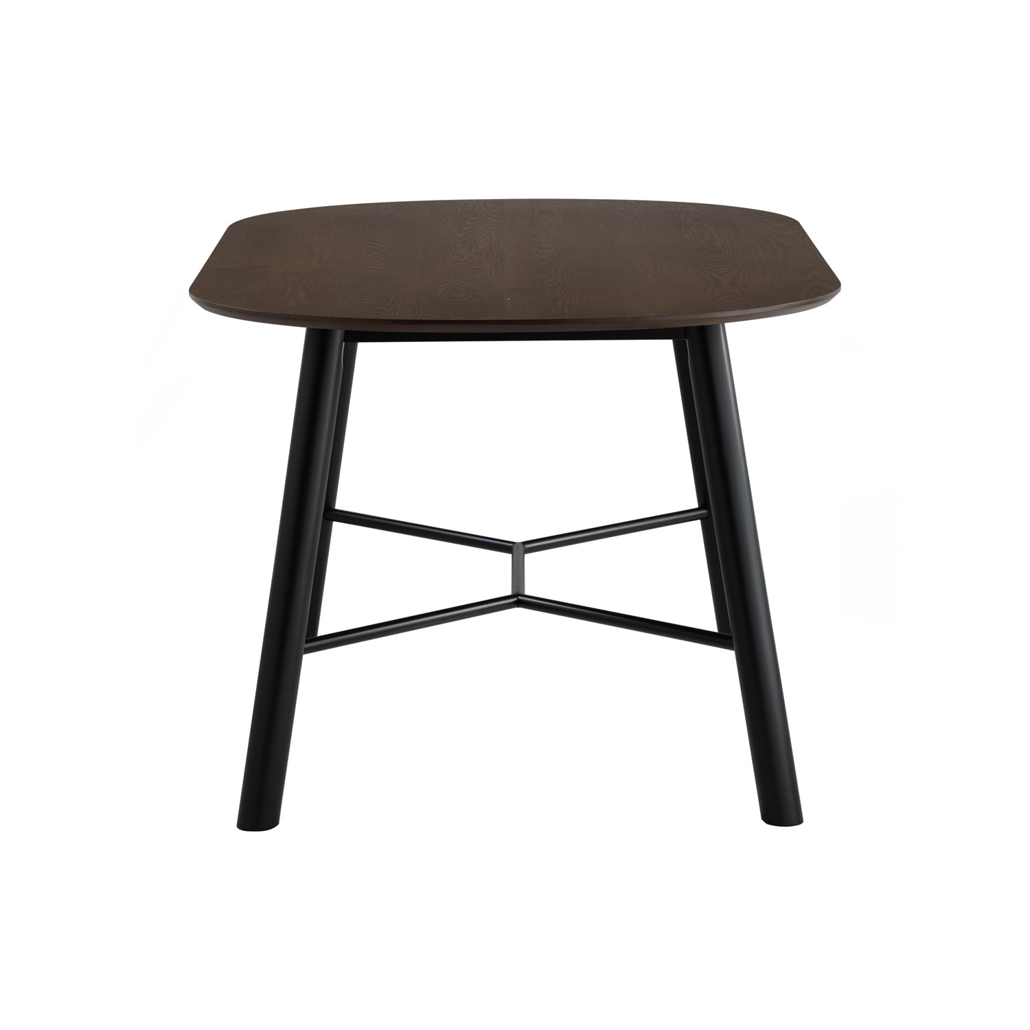 Harold 950×1600 dining table in Black colour leg and Matt Black Epoxy metal cross bar, Cocoa colour table top. The Harold Dining Table brings a refined Mid-Century Modern touch with minimalist appeal. Built with sturdy Malaysian oak legs, a sleek metal support bar, and a smooth ash veneer top, it balances durability with style. The combination of black, cocoa, and matte black epoxy accents creates a striking centerpiece for any dining space.