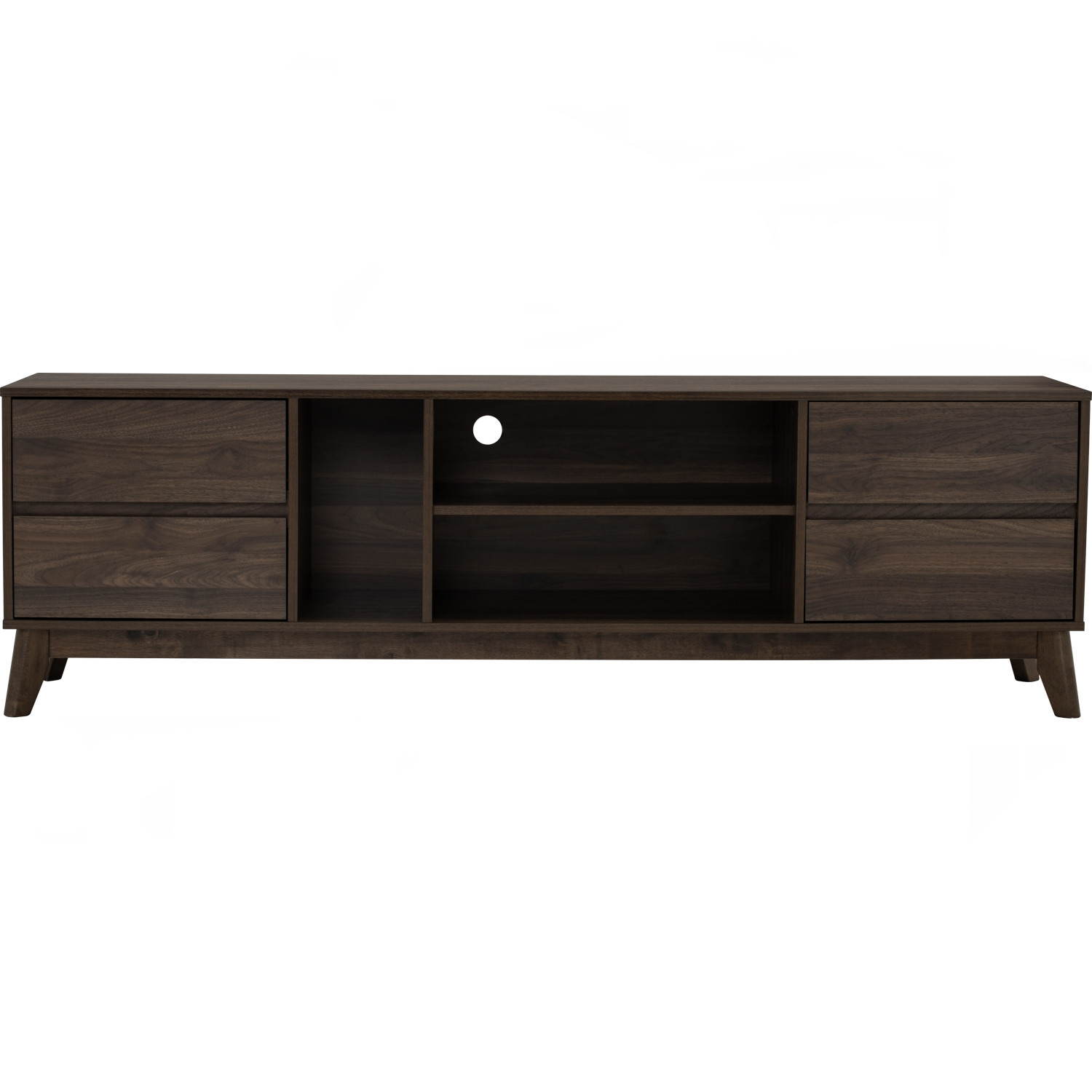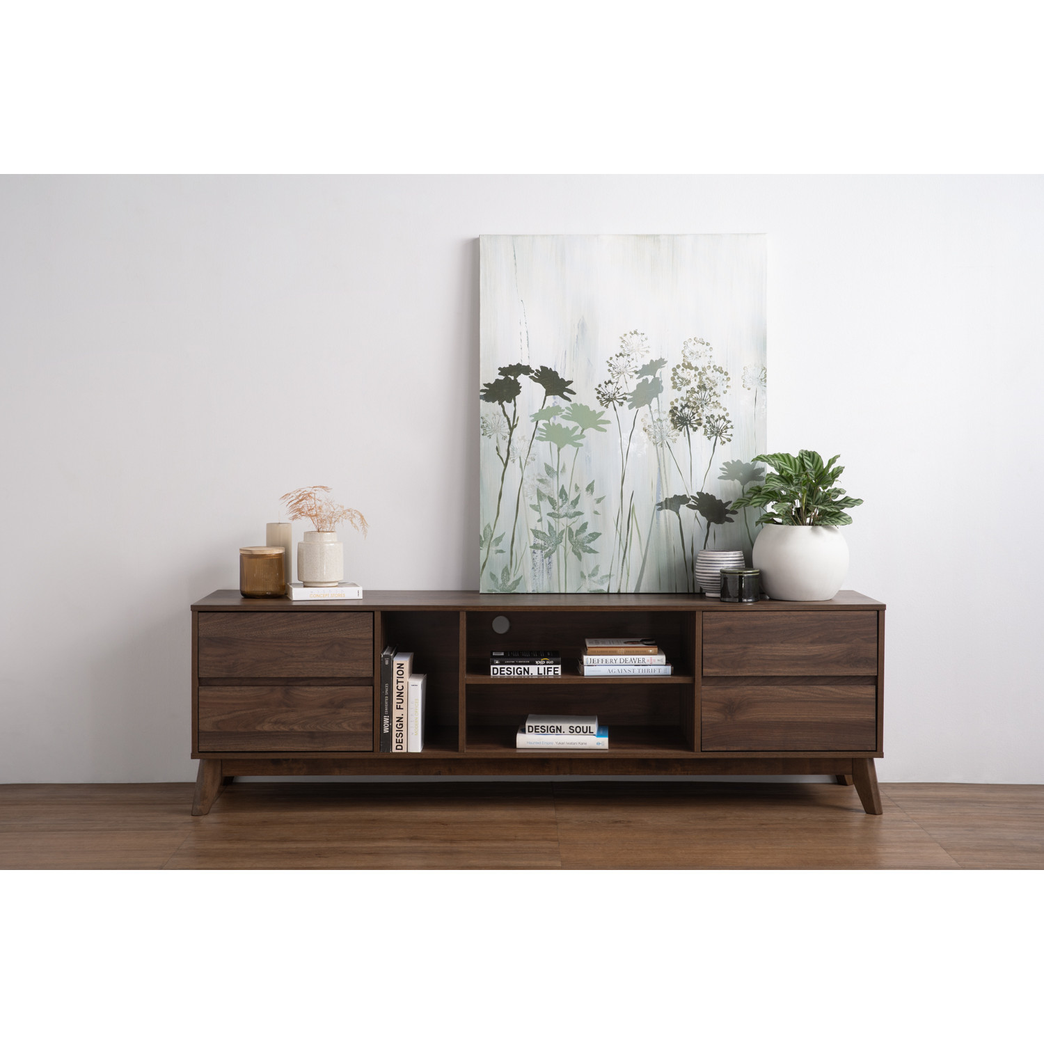 Hirado 1.8m tv cabinet in Cocoa colour leg, Walnut colour top. The Hirado 1.8M TV Cabinet pairs Malaysian Oak legs in cocoa with a laminated board body in walnut. Strong and versatile, it delivers practical storage with a timeless look. Designed with clean lines, it complements both modern and transitional interiors. A reliable, best-value option for stylish living rooms.