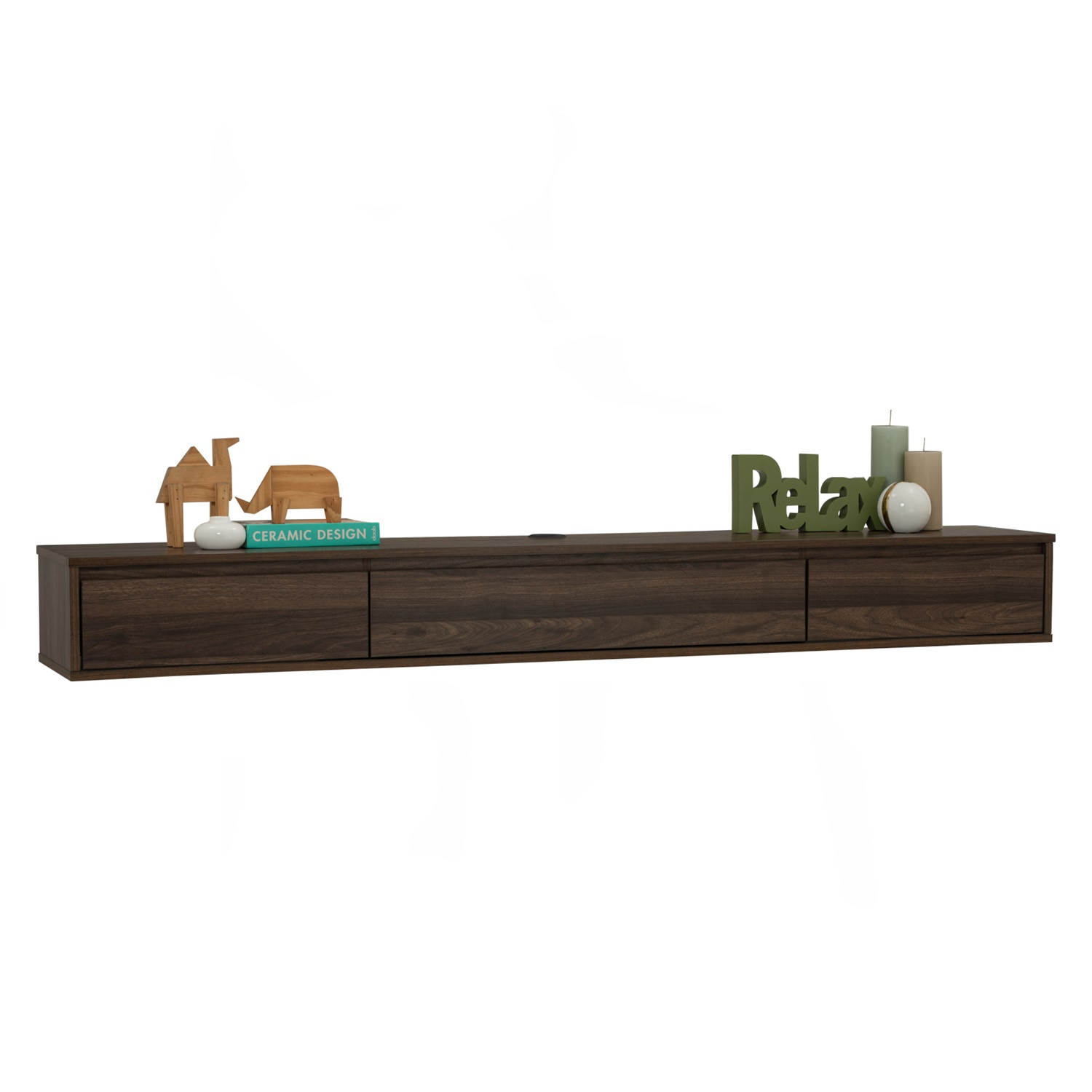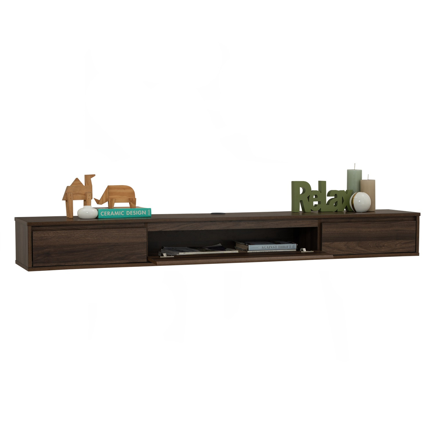 Hirado 1.8m wall tv cabinet in Walnut colour. The Hirado 1.8M Wall TV Cabinet embraces Contemporary style, featuring a sleek walnut laminated finish that enhances modern interiors. Designed for wall mounting, it saves valuable floor space while maintaining a clean, organized layout. Its compact structure makes it especially suitable for apartments, condos, or smaller living areas. The walnut tones add warmth and depth, ensuring it blends well with a variety of décor styles. Offering durability and practicality at a best-value price, the Hirado Wall Cabinet is a smart solution for everyday living.