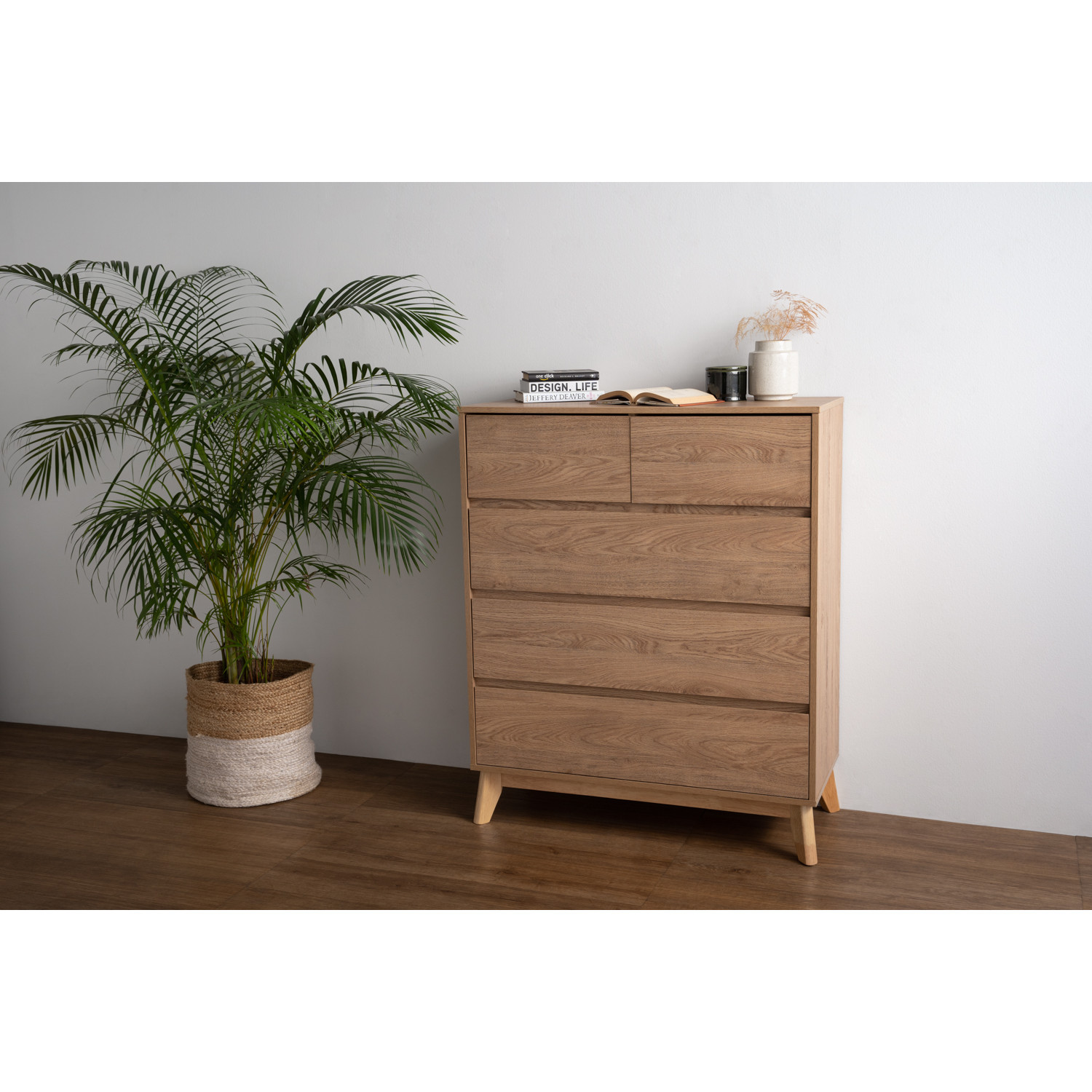 Hirado tall sideboard in Natural colour leg, Oak colour top. The Hirado Tall Sideboard showcases Minimalist Scandinavian design, offering a clean and functional storage solution. Crafted with Malaysian Oak legs in a natural finish and a laminated body in oak tones, it balances simplicity with durability. Its compact structure makes it ideal for apartments, dining spaces, or entryways. With ample interior storage, it keeps essentials neatly arranged while enhancing interiors with a light, natural look. A best-value cabinet that combines everyday practicality with modern Scandinavian charm.