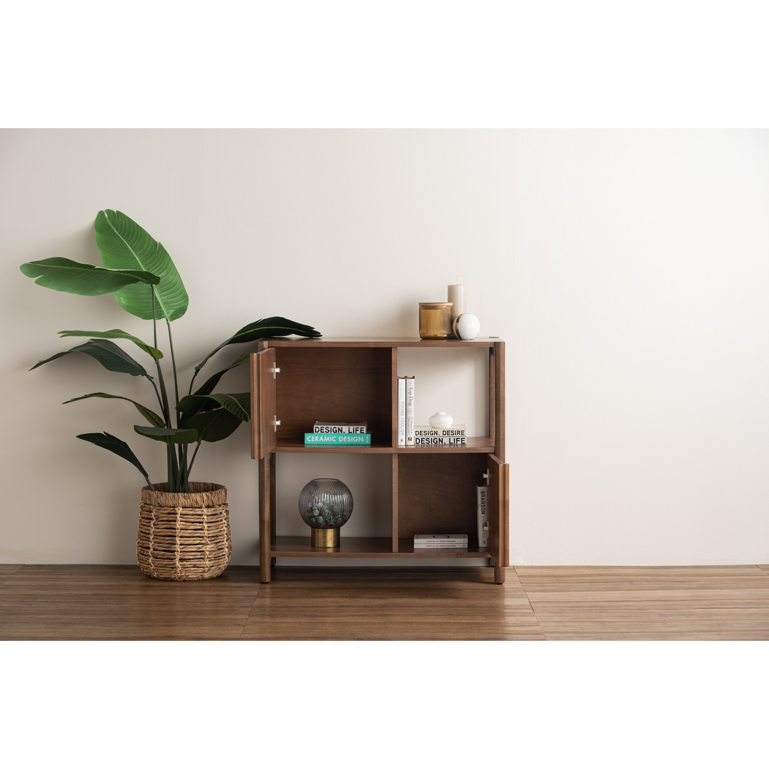 Holsten 0.85m bookcase in Walnut veneer (P2 Board). The Holsten Bookcase with walnut finish offers a classic modern elegance suited for timeless interiors. Built with Malaysian oak frame and MDF with walnut veneer, it combines durability with refined aesthetics. Its compact design includes open shelving for books or décor and two lower doors for concealed storage, keeping spaces organized. The rich walnut tones enhance warmth and sophistication, making it ideal for studies, bedrooms, or living rooms. Perfect for modern, classic, or transitional interiors seeking understated luxury.