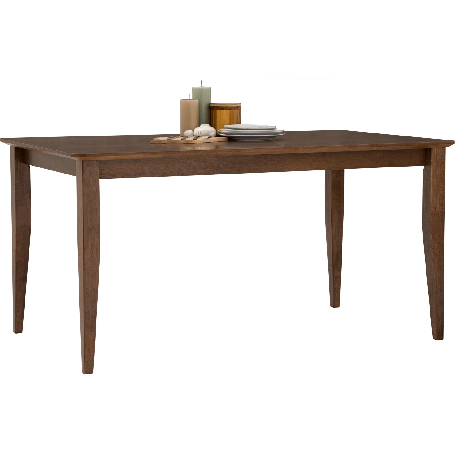 Kacey 900×1500 dining table in Cocoa colour. The Kacey Dining Table blends Mid-Century Modern and rustic character with its cocoa-toned Malaysian oak construction. Both the legs and tabletop share a warm finish, creating a cohesive and inviting look. Its sturdy build and clean lines make it a versatile piece for family dining.