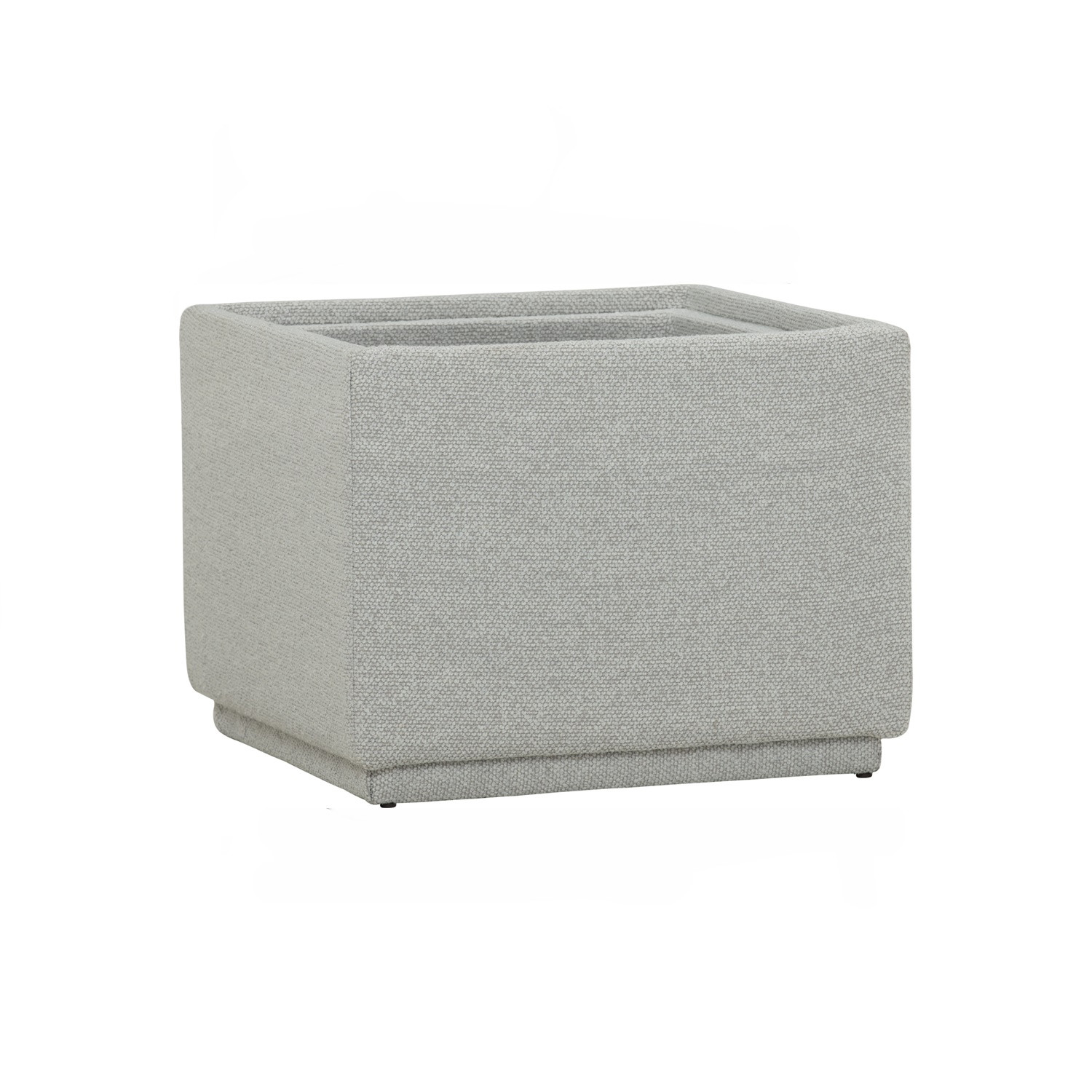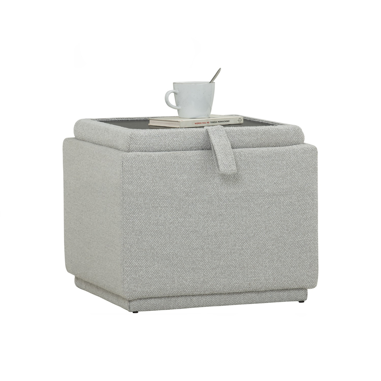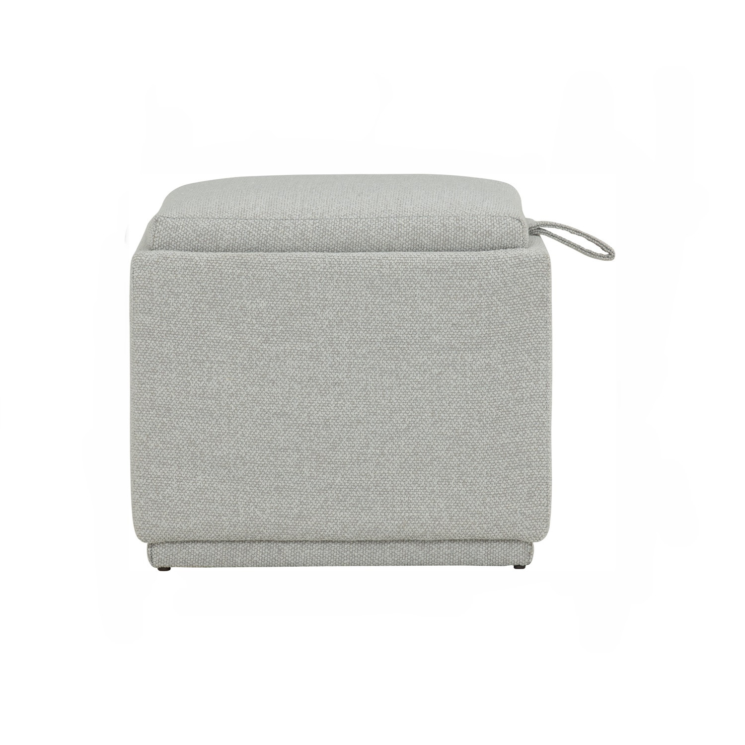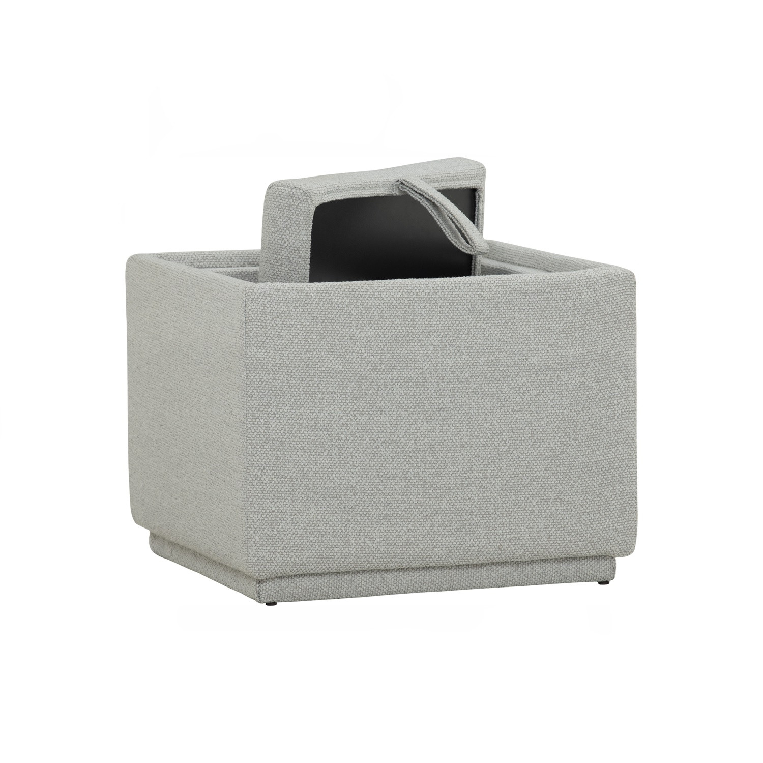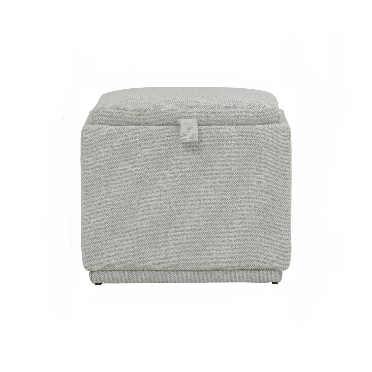 Kato ottoman with storage with Black colour leg, Light Grey colour Ruby fabric. The Kato Pouf with Storage combines Mid-Century Modern styling with Contemporary versatility, offering a compact and practical solution for modern living. Supported by Malaysian Oak legs in a clean black finish, it pairs durability with refined aesthetics. Upholstered in Ruby fabric in a light grey tone, it introduces a neutral yet sophisticated accent that complements any interior. The MDF and melamine top conceals useful storage space, making this pouf a smart choice for apartments, lounges, and multifunctional spaces.