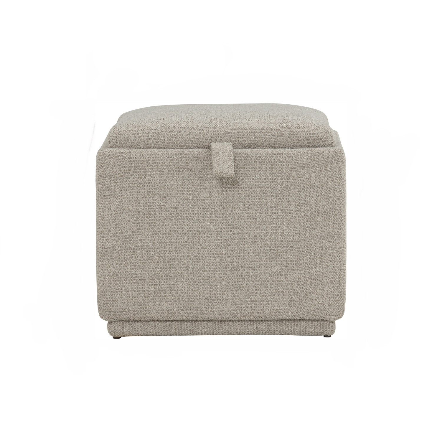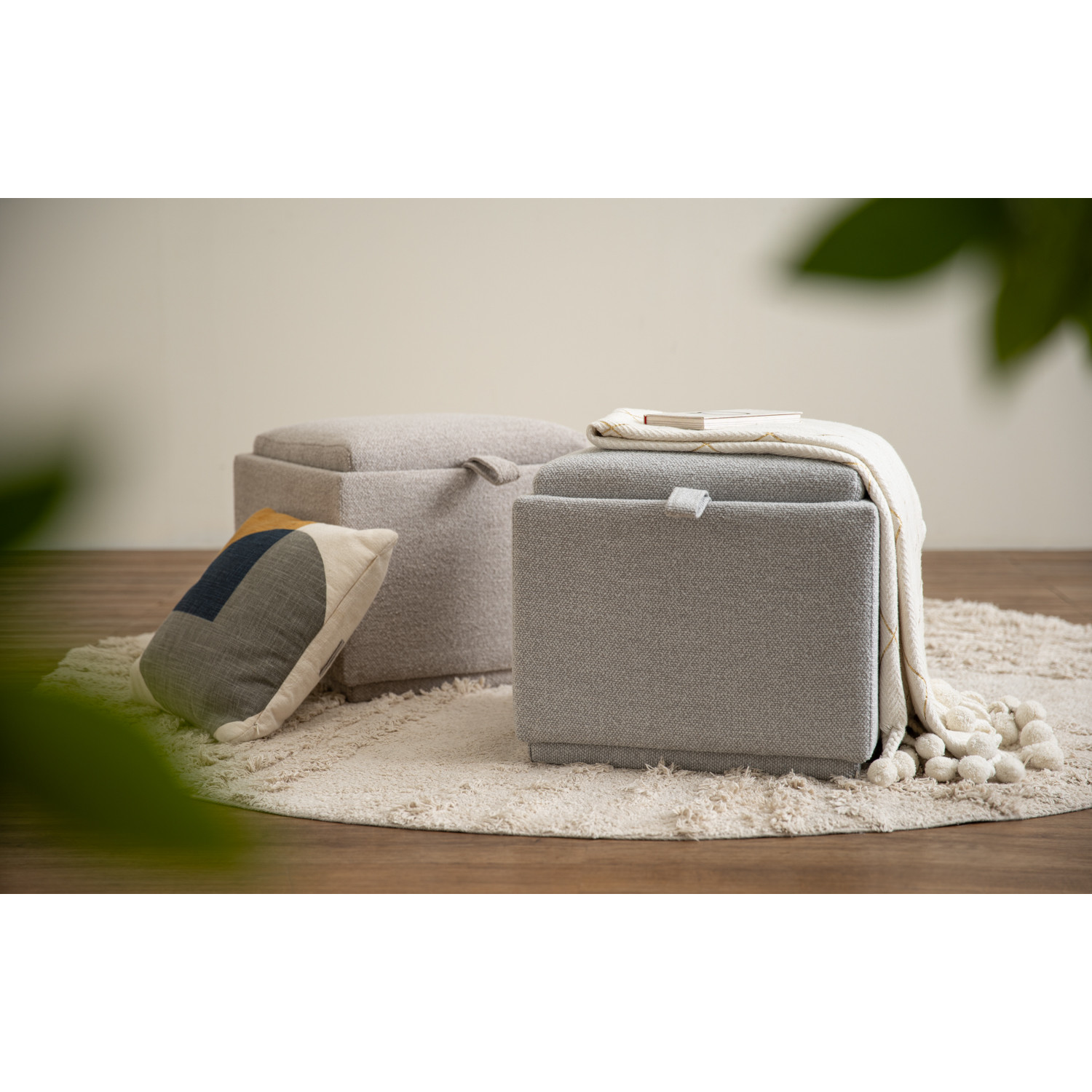 Kato ottoman with storage with Black colour leg, Beige colour Ruby fabric. The Kato Pouf with Storage merges Mid-Century Modern design with Contemporary practicality, making it both stylish and functional. Built on sturdy Malaysian Oak legs in a sleek black finish, it provides stability and visual contrast. Upholstered in Ruby fabric in a warm beige tone, it offers comfort with understated elegance. The top, finished with MDF and melamine, opens to reveal convenient storage space, making it ideal for compact interiors. This pouf balances elegance and utility, serving as seating, a footrest, or discreet storage.