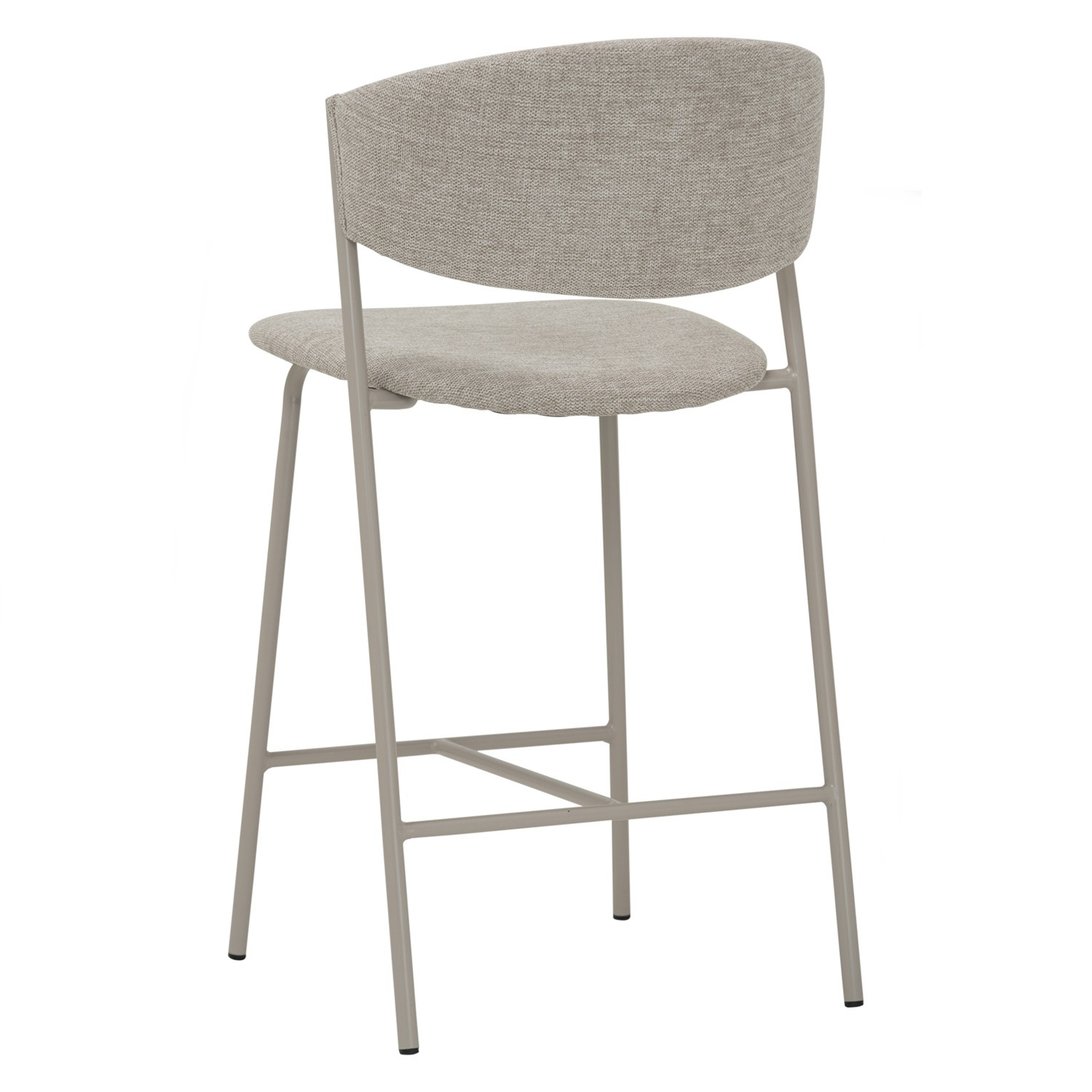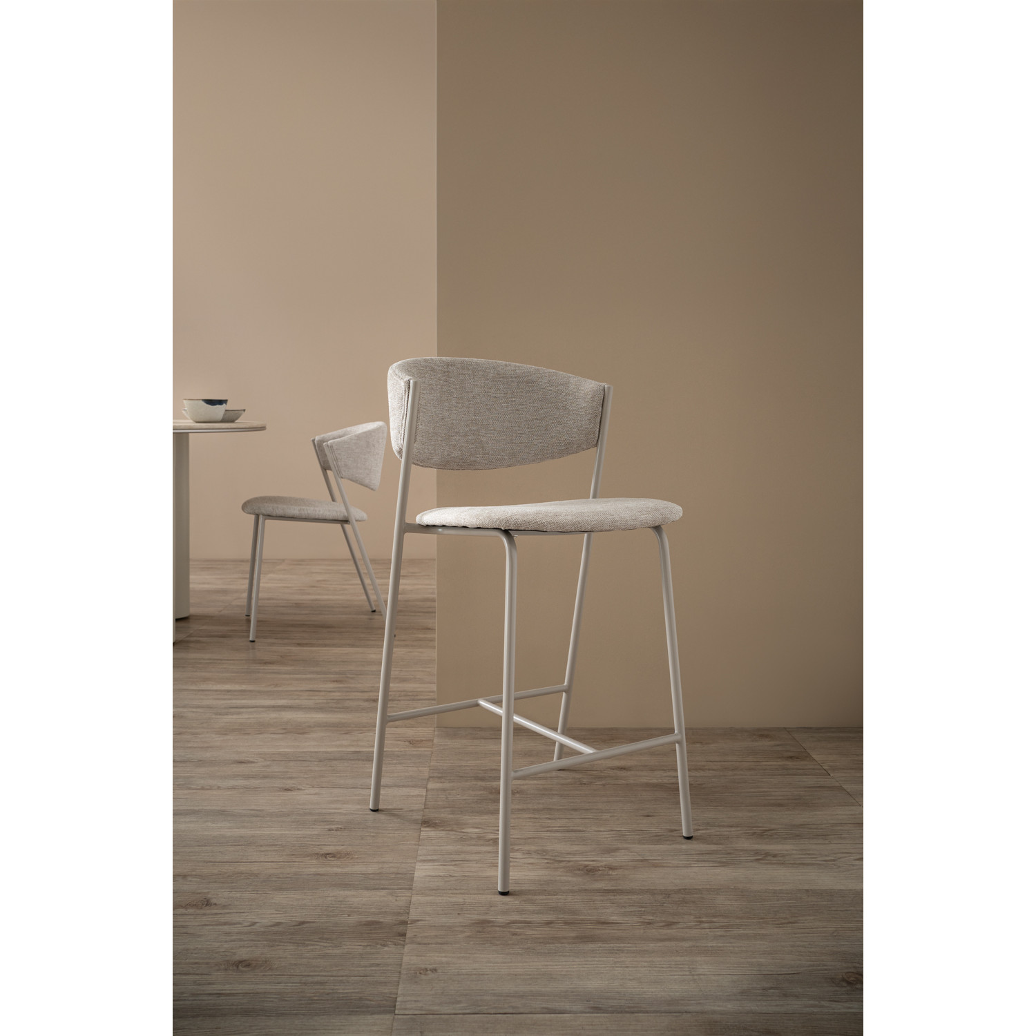 Kory counter chair in Matt Beige Epoxy colour leg, Beige colour Brego fabric. The Kory Counter Chair in Matt Beige blends Mid-Century Modern style with Modern refinement, creating a versatile and elegant seating choice. Supported by metal legs in a matte beige finish, the chair ensures stability and sleek appeal. Upholstered in Brego fabric in Beige, it provides comfort and durability with a neutral, timeless tone. With its ergonomic design and compact proportions, the Kory Counter Chair is ideal for kitchens, dining counters, or hospitality spaces.