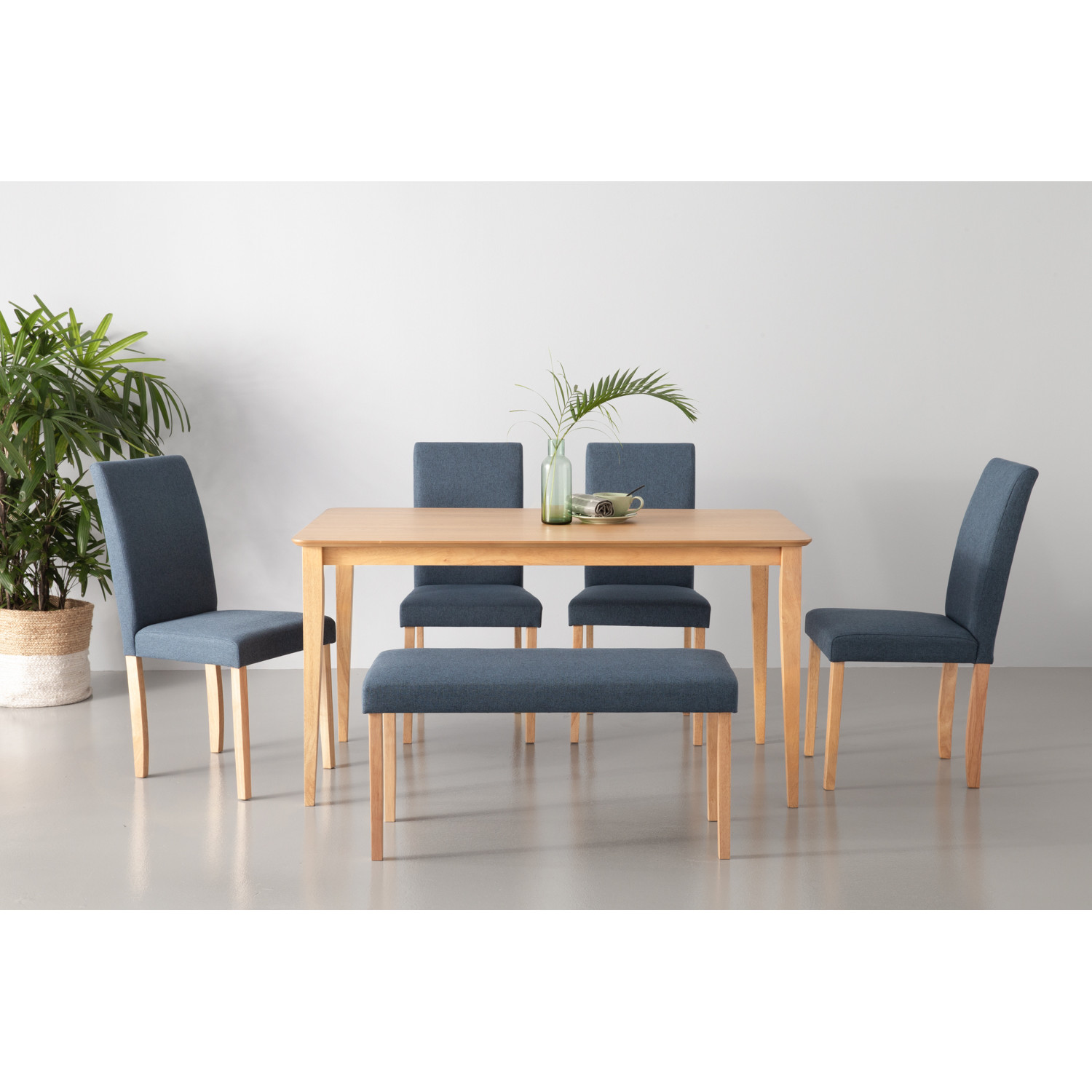 Lenore bench in Natural colour leg, Yale colour Challis fabric. The Lenore Bench Chair combines Mid-Century Modern aesthetics with Minimalist functionality, creating a versatile seating solution. Crafted with Malaysian oak legs in a Natural finish, the bench offers durability and organic warmth. Upholstered in Challis fabric in Yale, the seat delivers comfort with a soft yet resilient surface. Compact in size yet sturdy in build, it is ideal for dining areas, entryways, or hospitality spaces. The Lenore Bench Chair is a practical and stylish choice for interiors that value clean design and reliable comfort.
