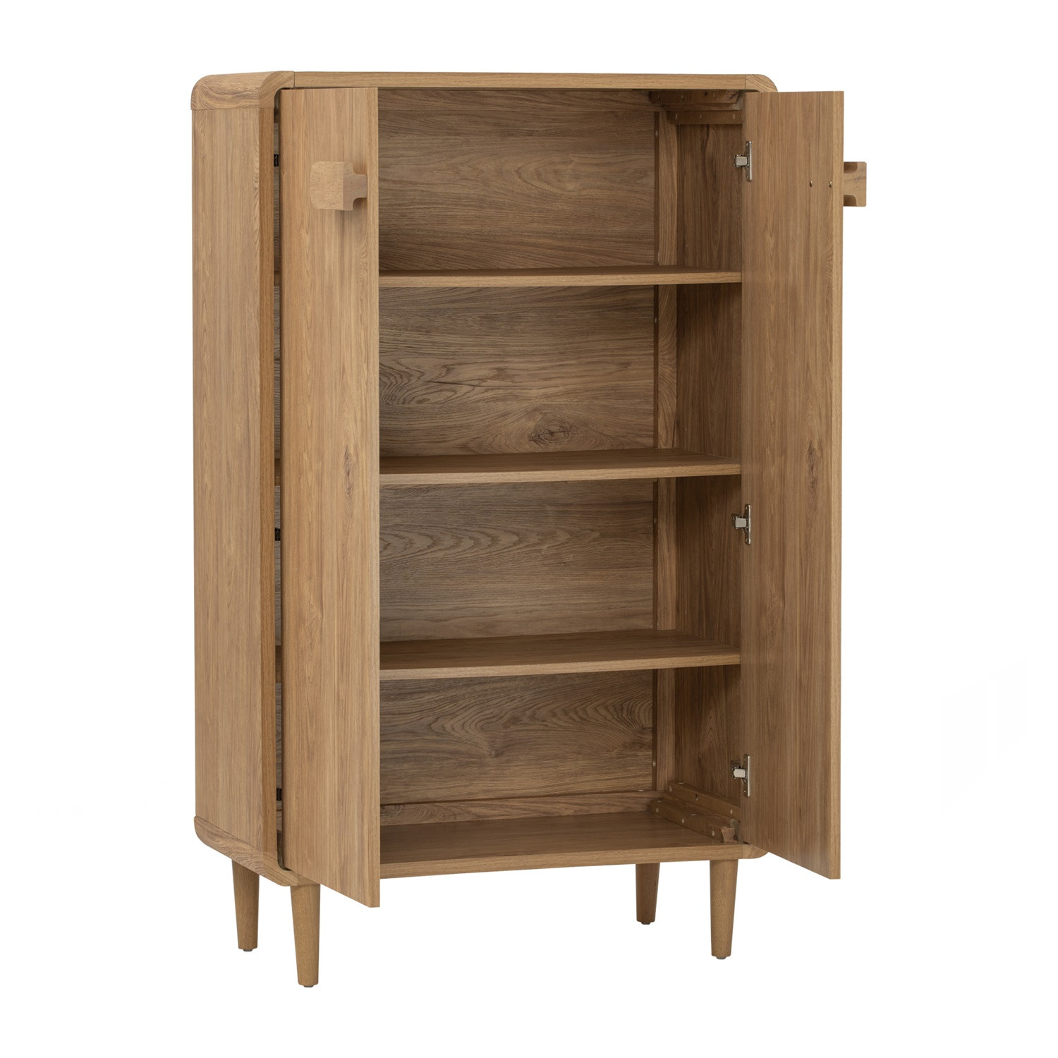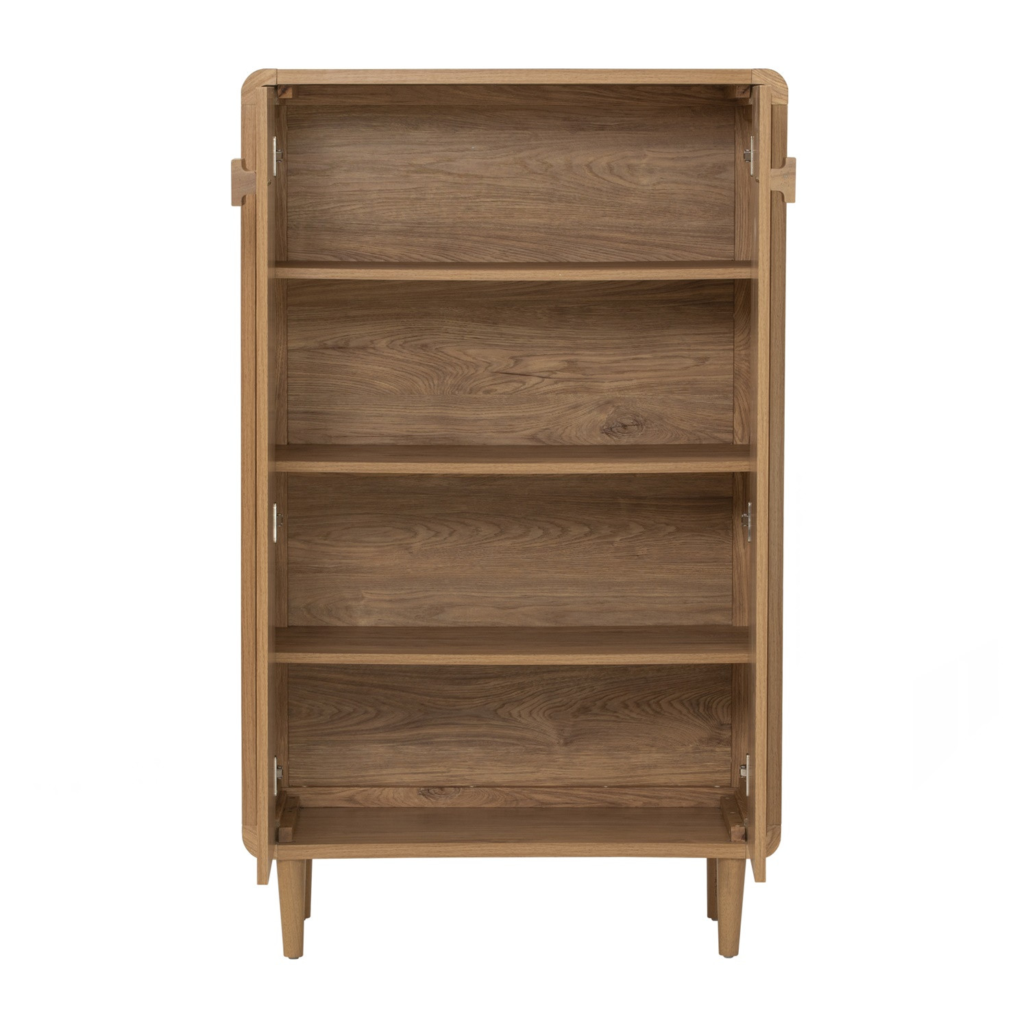 Lome multi function cabinet in Natural colour leg, Oak colour top. The Lome Multi Function Cabinet reflects Scandinavian minimalism, combining light natural finishes with functional design. Built with Malaysian Oak legs and a laminated board body in oak tones, it offers durability with understated charm. Its slim profile makes it suitable for compact interiors, providing storage without overwhelming the room. Ideal for modern apartments or dining areas, it blends utility with elegance. A versatile piece that brings warmth and practicality to everyday living.