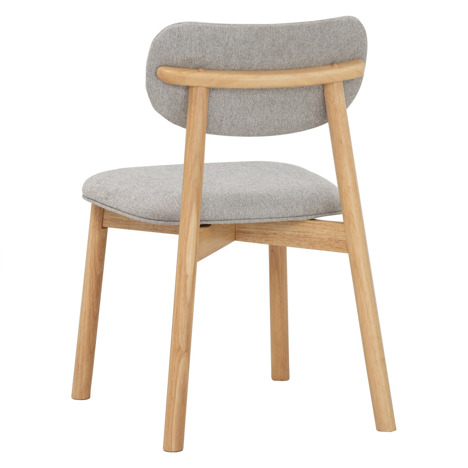 Luca dining chair in Natural colour frame, Greymist colour Belfast fabric cushion back and seat. The Luca Dining Chair reflects Mid-Century Modern design with a Modern flair, offering style and comfort in equal measure. Built with Malaysian oak legs in a Natural finish, the chair showcases strength and a warm organic look. Upholstered in Belfast fabric in Greymist, the seat delivers a soft, inviting touch while maintaining durability. With its clean silhouette and compact form, the Luca Dining Chair is an excellent fit for both residential dining rooms and commercial spaces, delivering timeless appeal and everyday practicality.