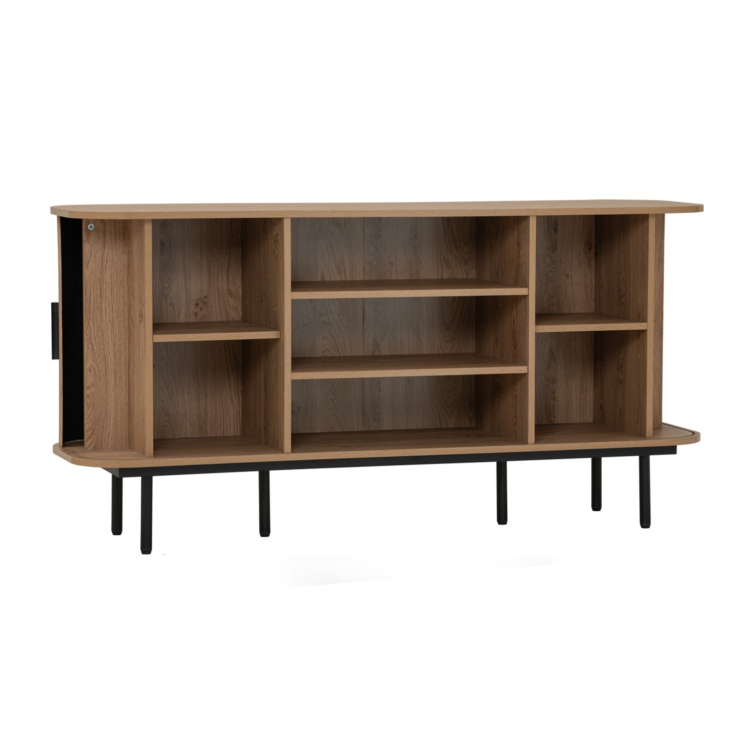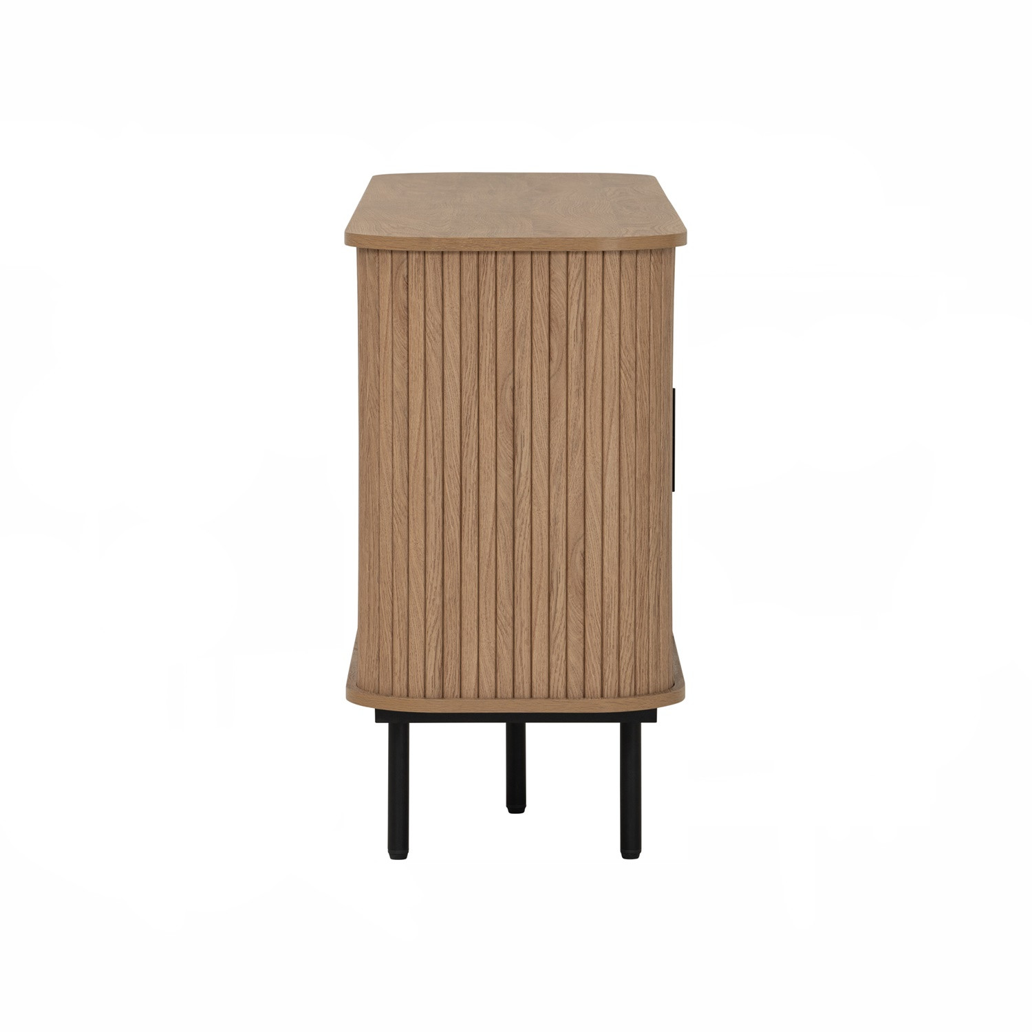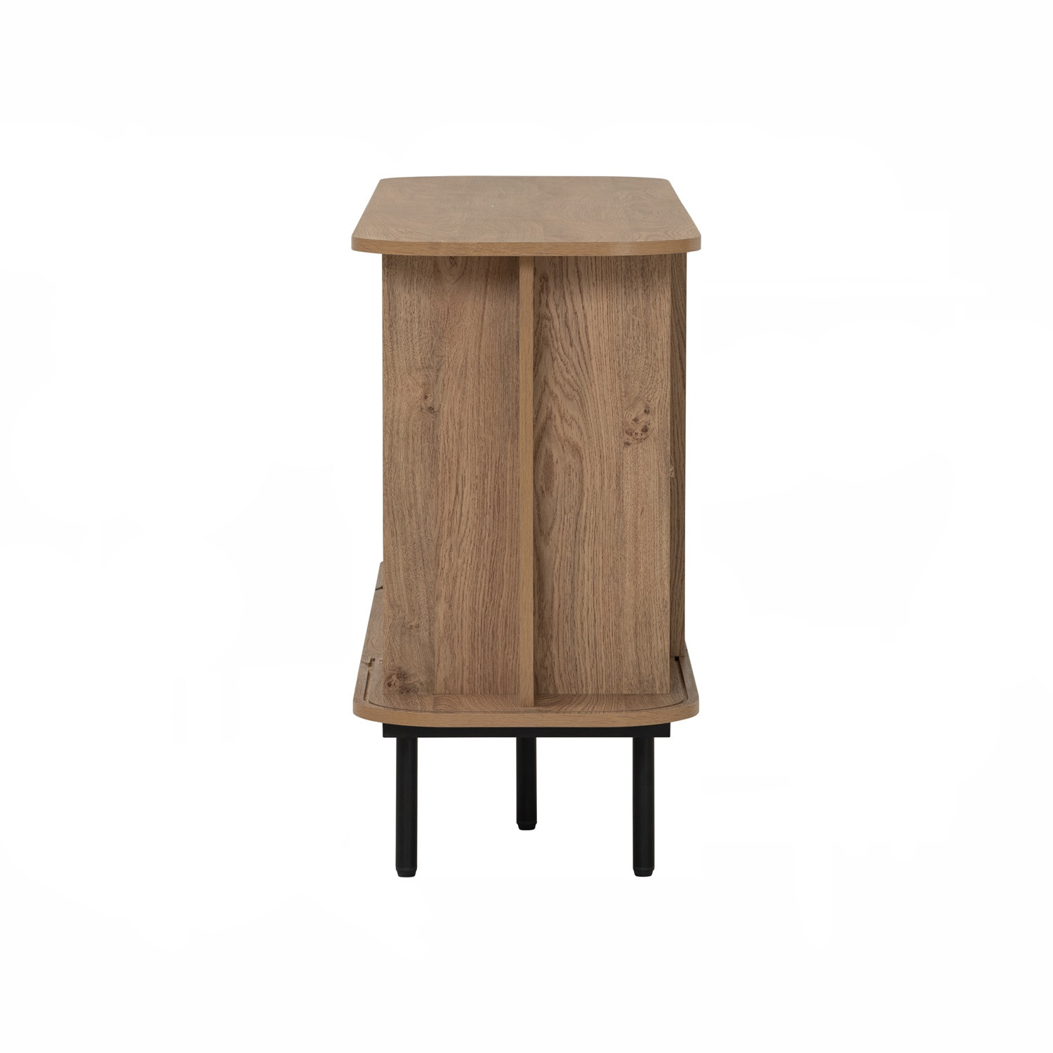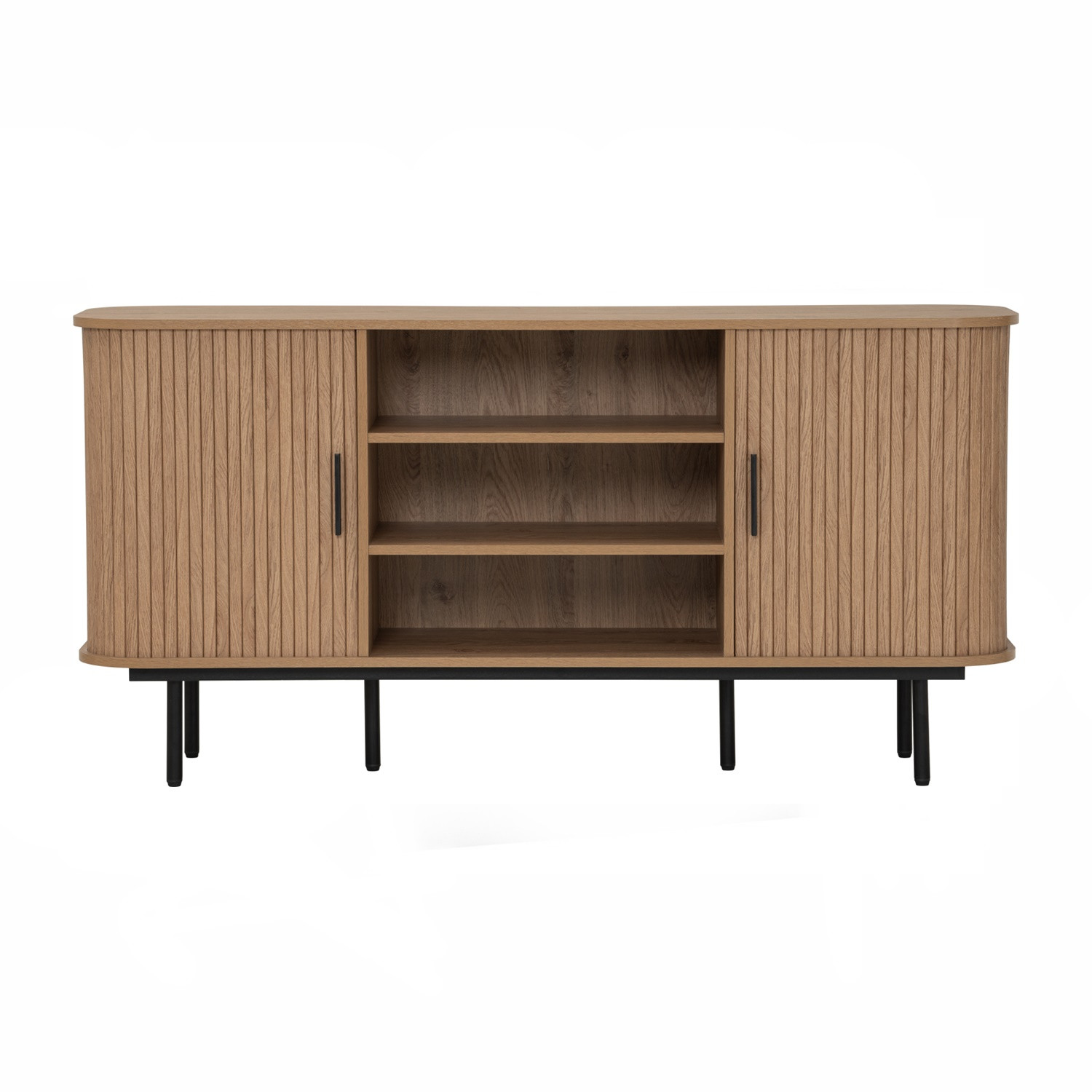 Malmo 1.5m sideboard in Matt Black Epoxy leg, Oak colour body. The Malmo Sideboard offers a sleek Scandinavian-modern style, featuring a laminated oak body supported by slim black metal legs. Its minimalist design creates a refined silhouette that complements both modern and urban-inspired interiors. The oak finish adds warmth and texture, balancing the clean lines with natural charm. Offering practical storage within a compact frame, the Malmo is perfect for smaller dining rooms or living spaces while maintaining style and function. A versatile piece, it blends durability with contemporary elegance, making it an ideal choice for homes seeking simplicity and sophistication.