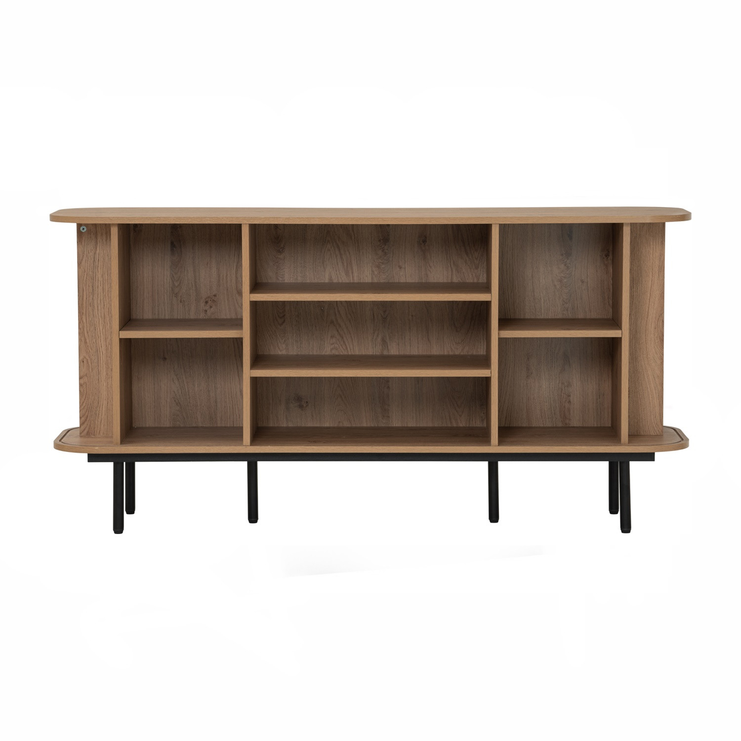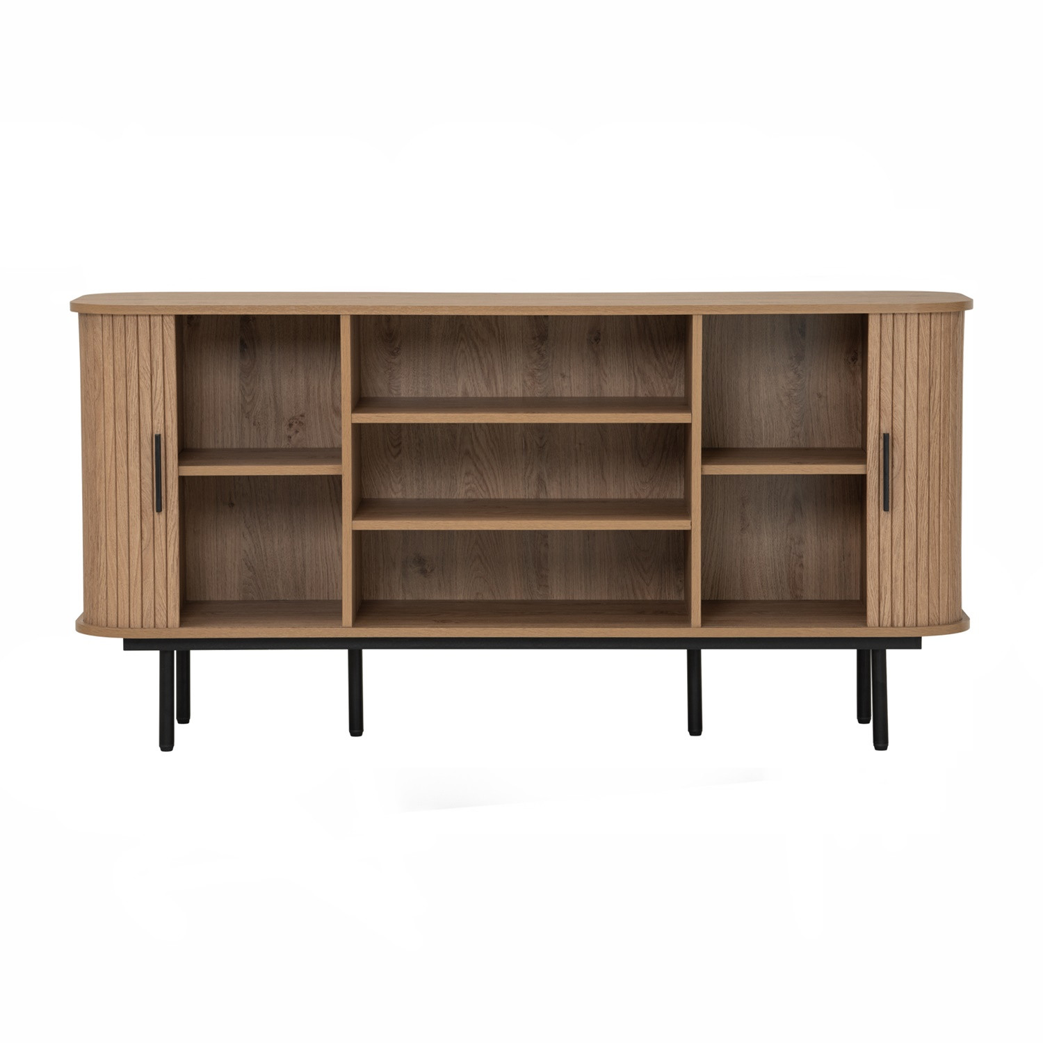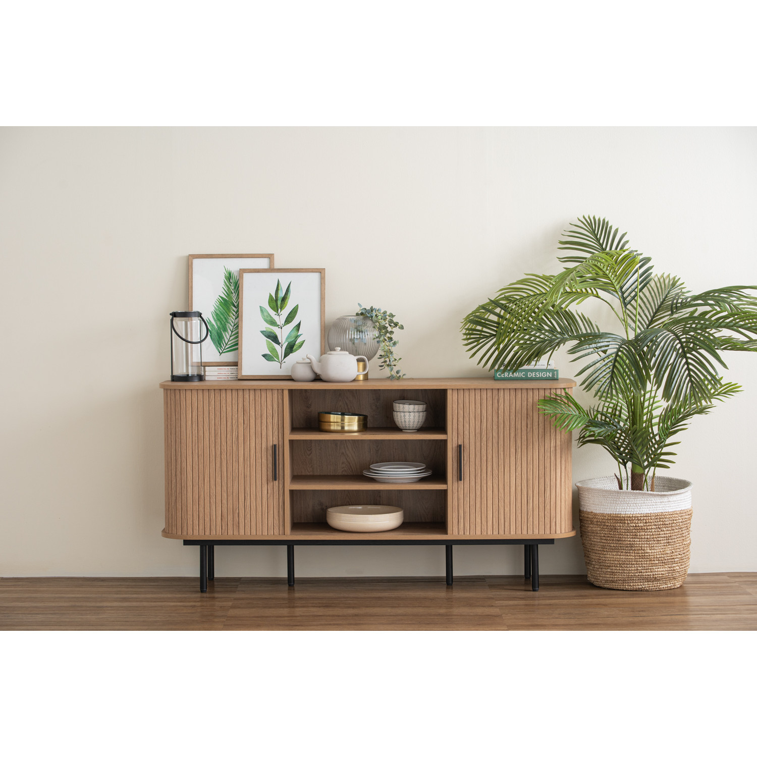 Malmo 1.5m sideboard in Matt Black Epoxy leg, Oak colour body. The Malmo Sideboard offers a sleek Scandinavian-modern style, featuring a laminated oak body supported by slim black metal legs. Its minimalist design creates a refined silhouette that complements both modern and urban-inspired interiors. The oak finish adds warmth and texture, balancing the clean lines with natural charm. Offering practical storage within a compact frame, the Malmo is perfect for smaller dining rooms or living spaces while maintaining style and function. A versatile piece, it blends durability with contemporary elegance, making it an ideal choice for homes seeking simplicity and sophistication.