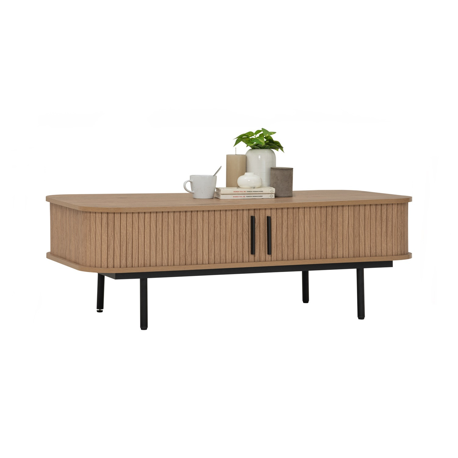 Malmo coffee table in Matt Black Epoxy leg, Oak colour body. The Malmo Coffee Table blends Mid-Century Modern style with Art Deco influence. Featuring sturdy metal legs in matte black epoxy and a laminated oak board body, it balances durability with elegance. Its rectangular shape provides generous surface space for décor, drinks, or daily essentials. The natural oak finish adds warmth, making it versatile for both minimalist and richly styled interiors. Functional yet refined, the Malmo Coffee Table is a stylish addition to contemporary living rooms.