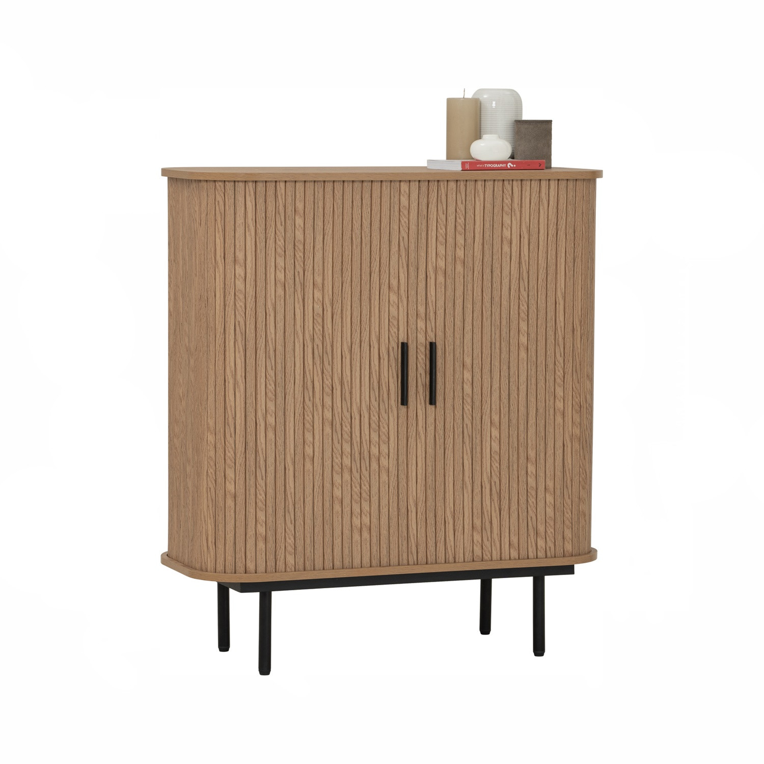 Malmo multi function cabinet in Matt Black Epoxy leg, Oak colour body. The Malmo Multi Function Cabinet delivers a modern industrial aesthetic, blending matte black epoxy metal legs with an oak-finished laminated board body. Its compact yet functional design provides versatile storage, suitable for books, decorative items, or household essentials. With its warm oak tones contrasted against the sleek black frame, it creates a balanced look that fits seamlessly into industrial, contemporary, or minimalist interiors. Ideal for smaller living spaces, it offers both style and practicality in a space-saving form.