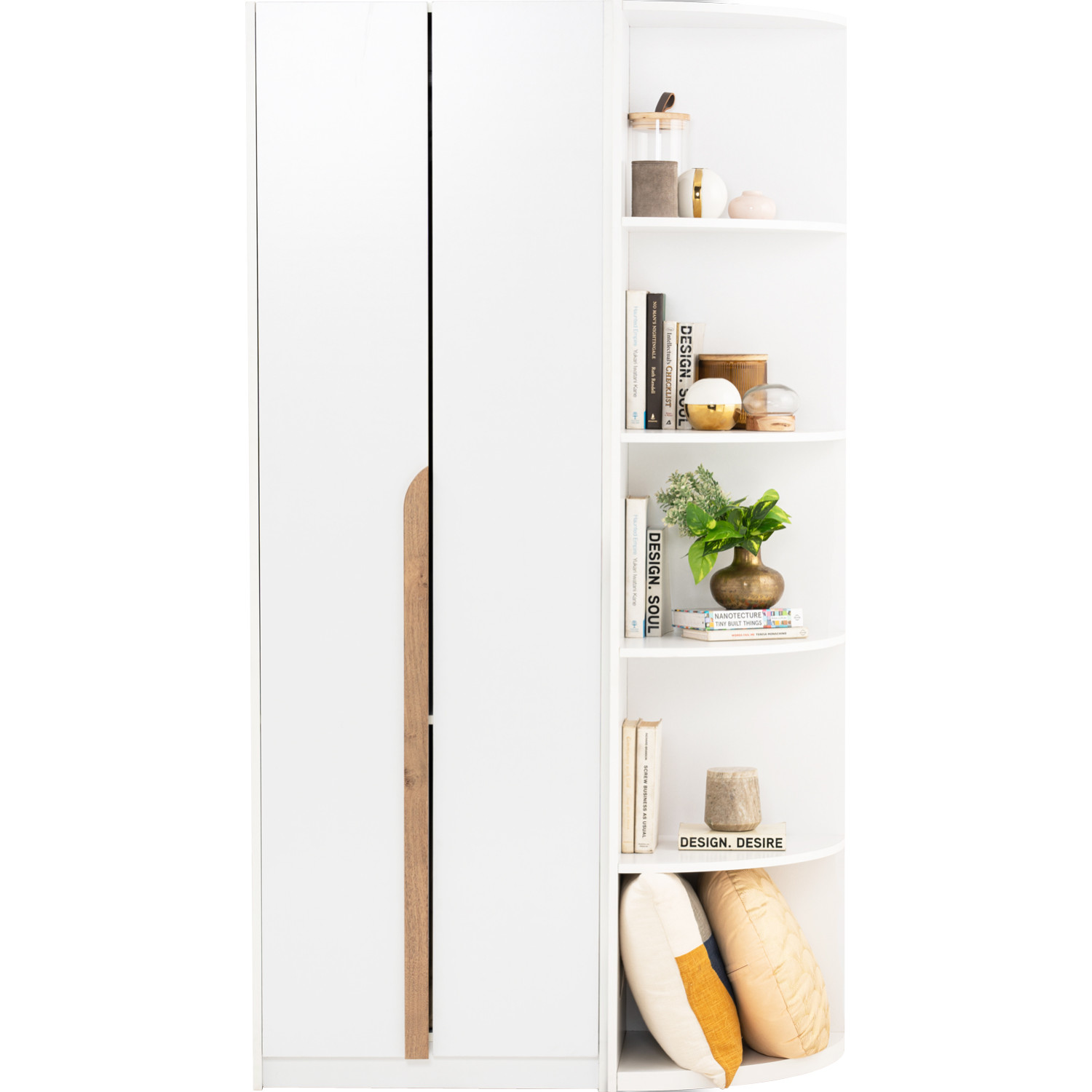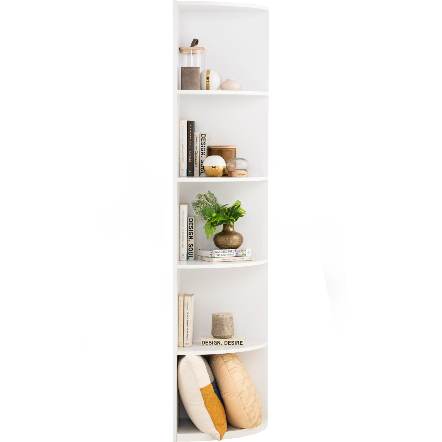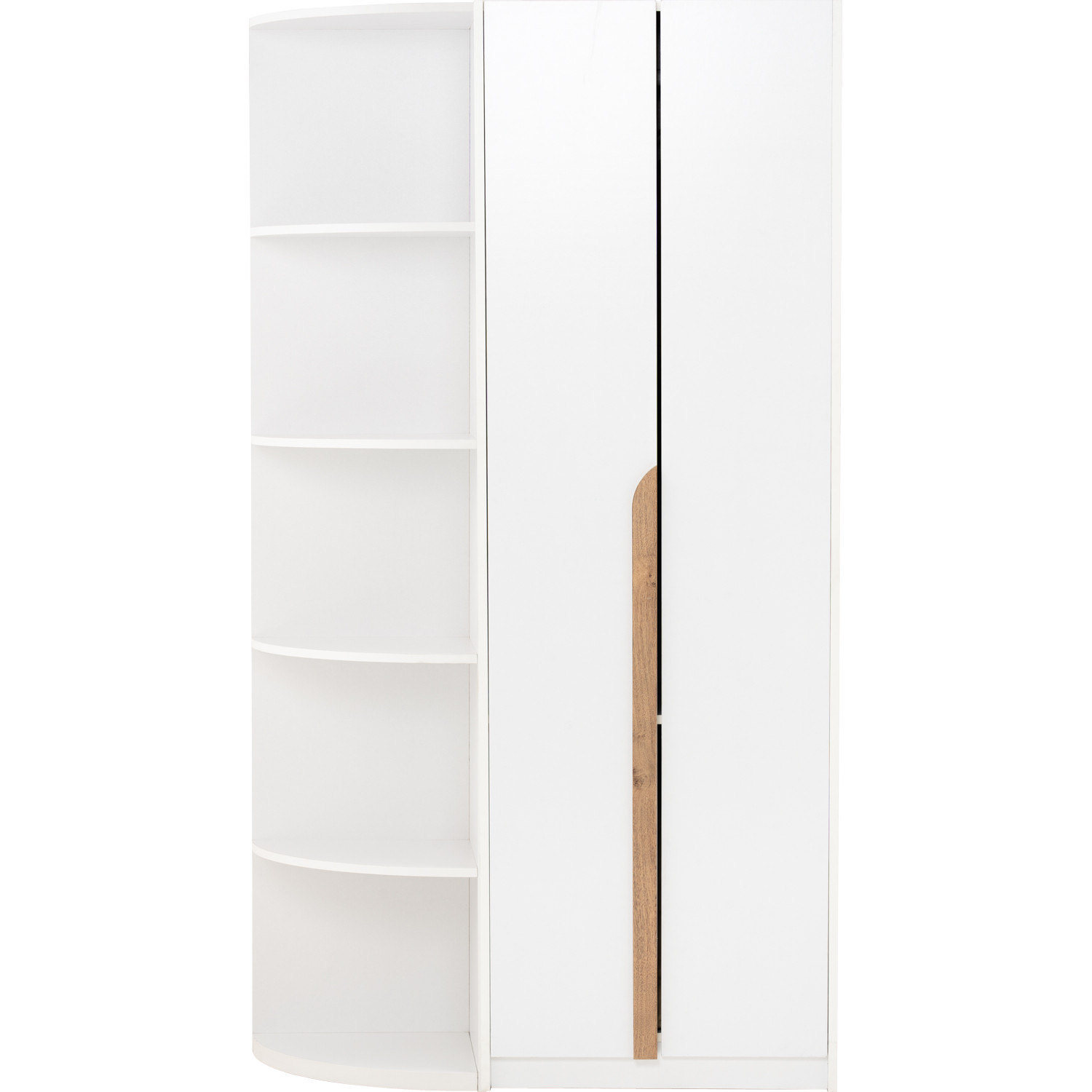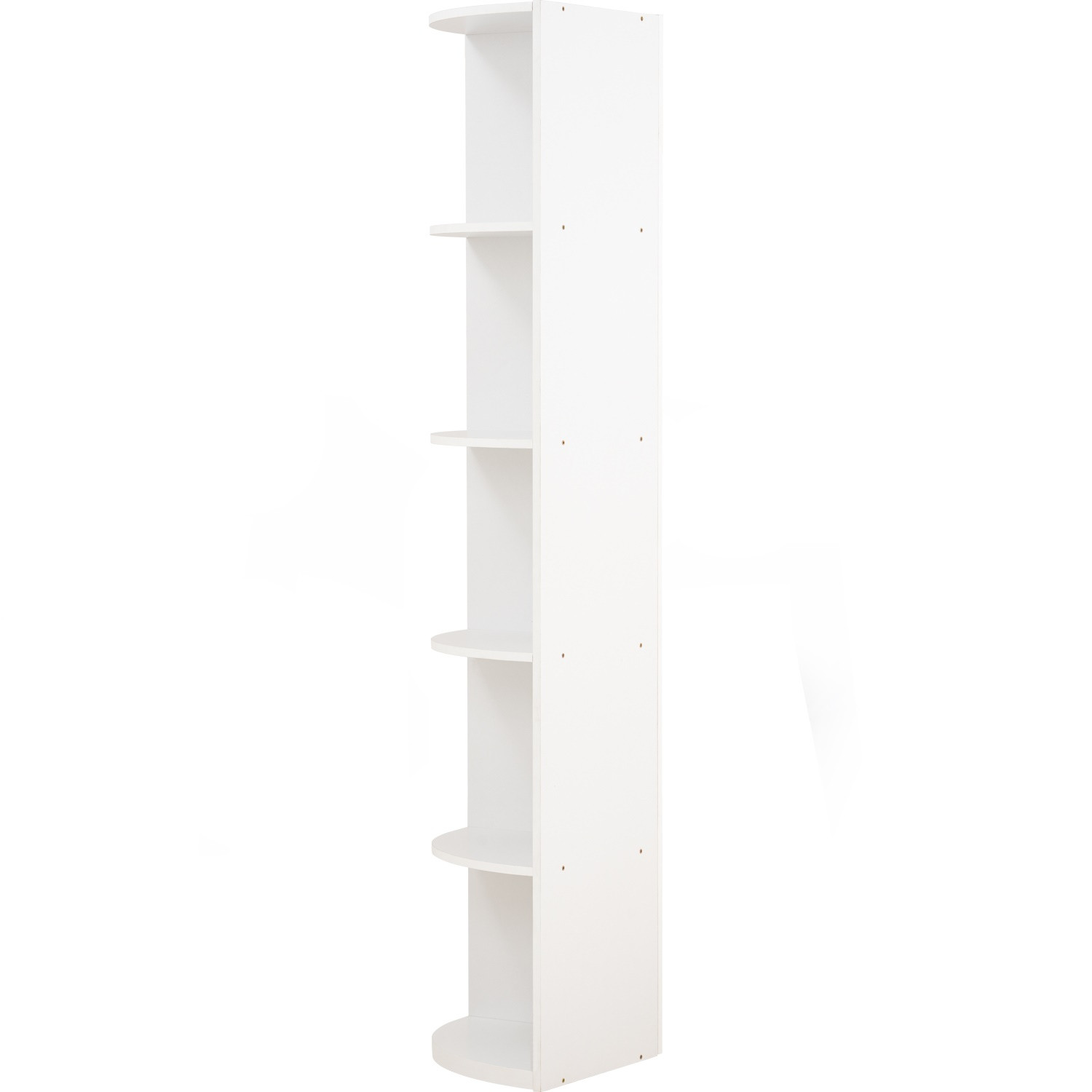 Mando corner shelf in White colour. The Mando Corner Shelf in white presents a modern minimalist style tailored for compact living. Crafted from laminated board, it features a sleek, clean-lined design that fits neatly into unused corners, maximizing vertical storage. Its pure white finish adds brightness, blending seamlessly with contemporary, Scandinavian, or minimalist interiors. Tall and slender, it provides ample space for displaying décor, books, or everyday items without overwhelming the room. Practical and stylish, this corner shelf is an efficient solution for small spaces, offering organization and display while enhancing the overall aesthetic of the home.