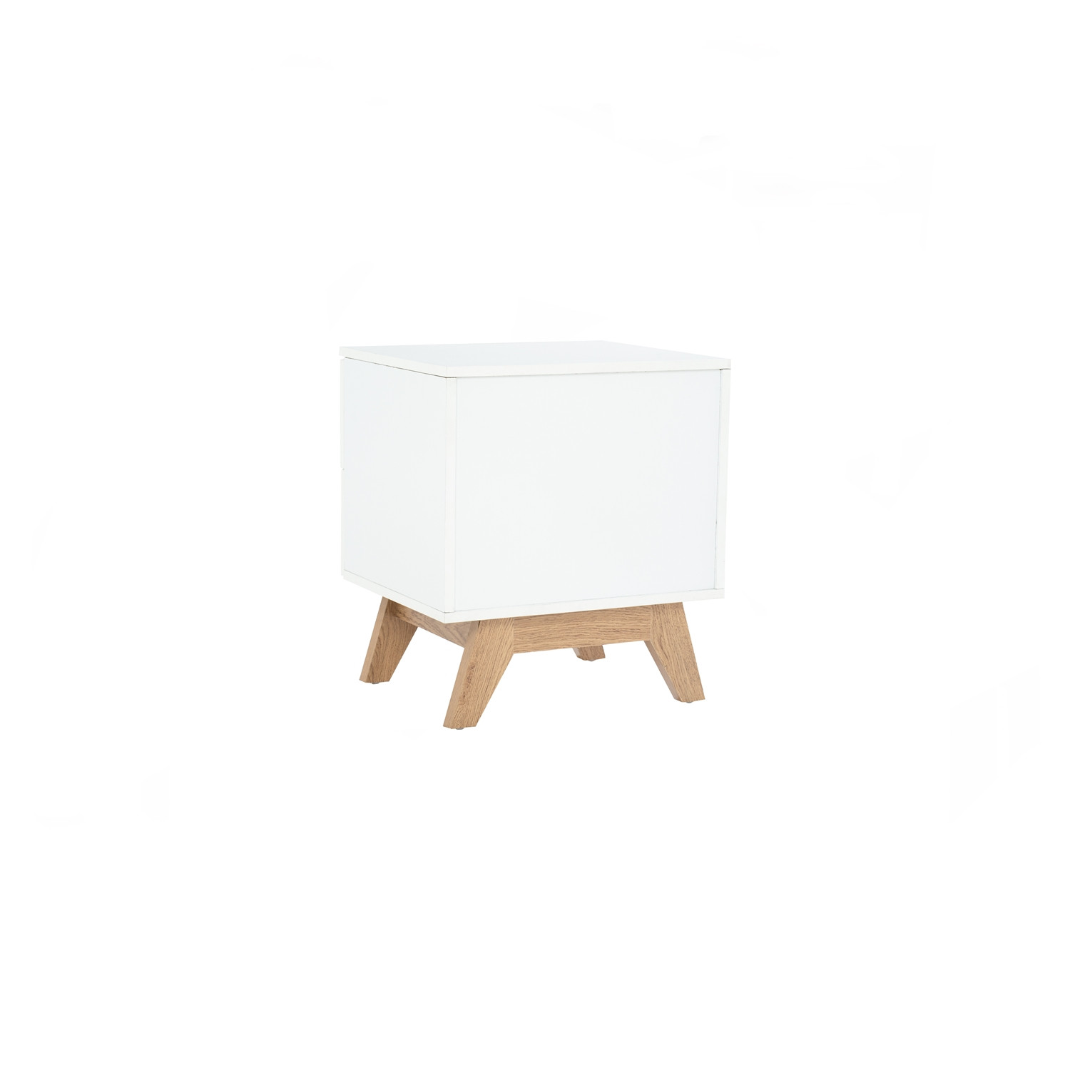 Mando side table in Oak colour leg, White colour top (MB paper). The Mando Side Table reflects Minimalist styling with Rustic undertones, delivering a functional and stylish accent piece. Built entirely from laminated board, it offers durability while showcasing clean proportions and subtle contrast in finishes. Its compact form makes it suitable for use in bedrooms, living rooms, or lounge spaces as a practical side companion. Designed with simplicity in mind, the Mando Side Table is a versatile choice that blends seamlessly into modern interiors.