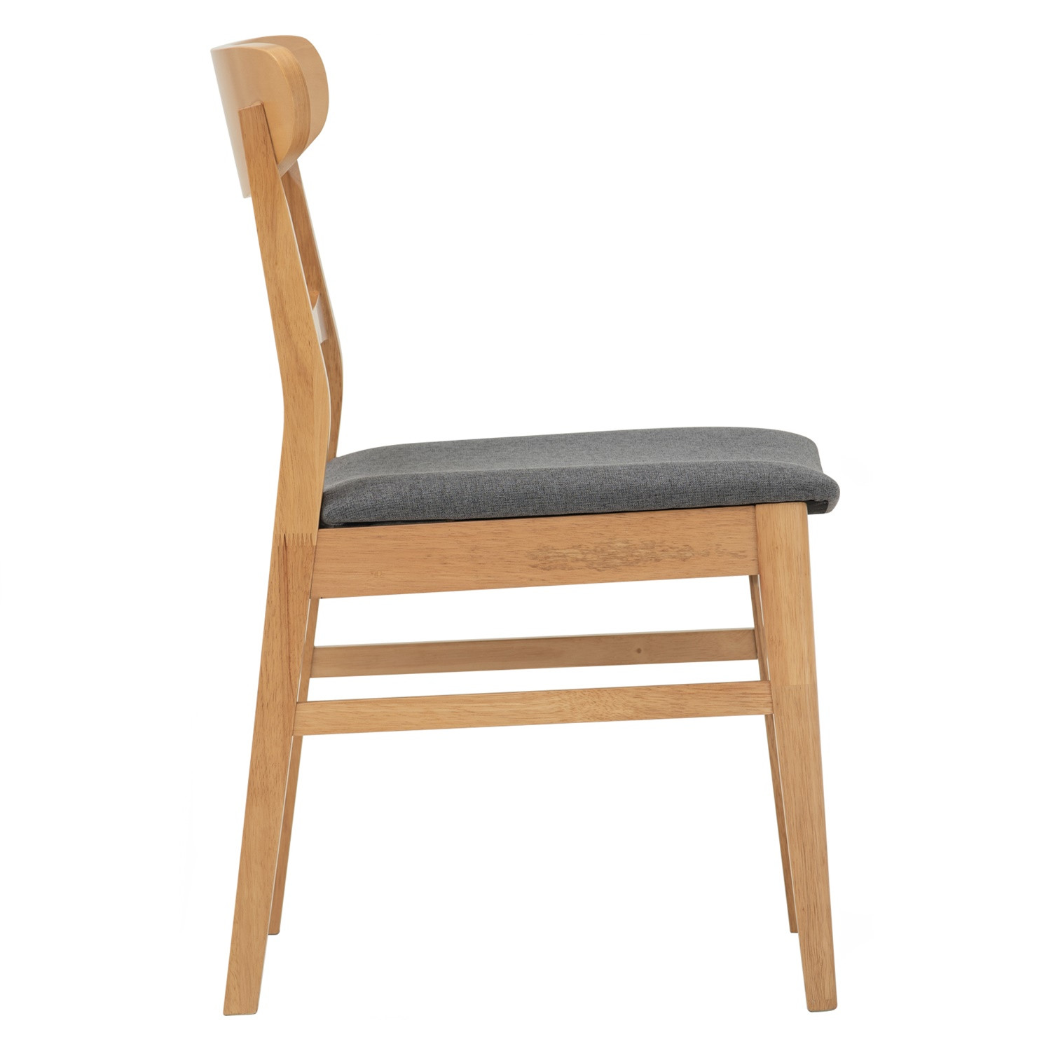 Marlo dining chair in Natural colour frame, Battleship Grey colour Challis fabric cushion seat. The Marlo Dining Chair reflects Mid-Century Modern styling with a Modern practicality that makes it perfect for everyday use. Constructed with Malaysian oak in a Natural finish, the frame provides durability and a warm organic look. The seat is upholstered in Challis fabric in Battleship Grey, offering comfort and a neutral tone that blends well with many dining environments. Its compact design ensures versatility, making it ideal for homes, cafés, and restaurants seeking stylish yet functional seating. The Marlo Dining Chair combines reliability with timeless design.