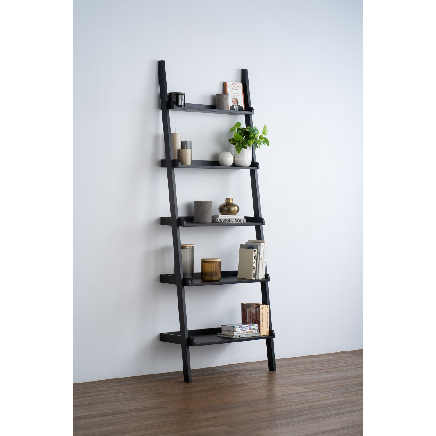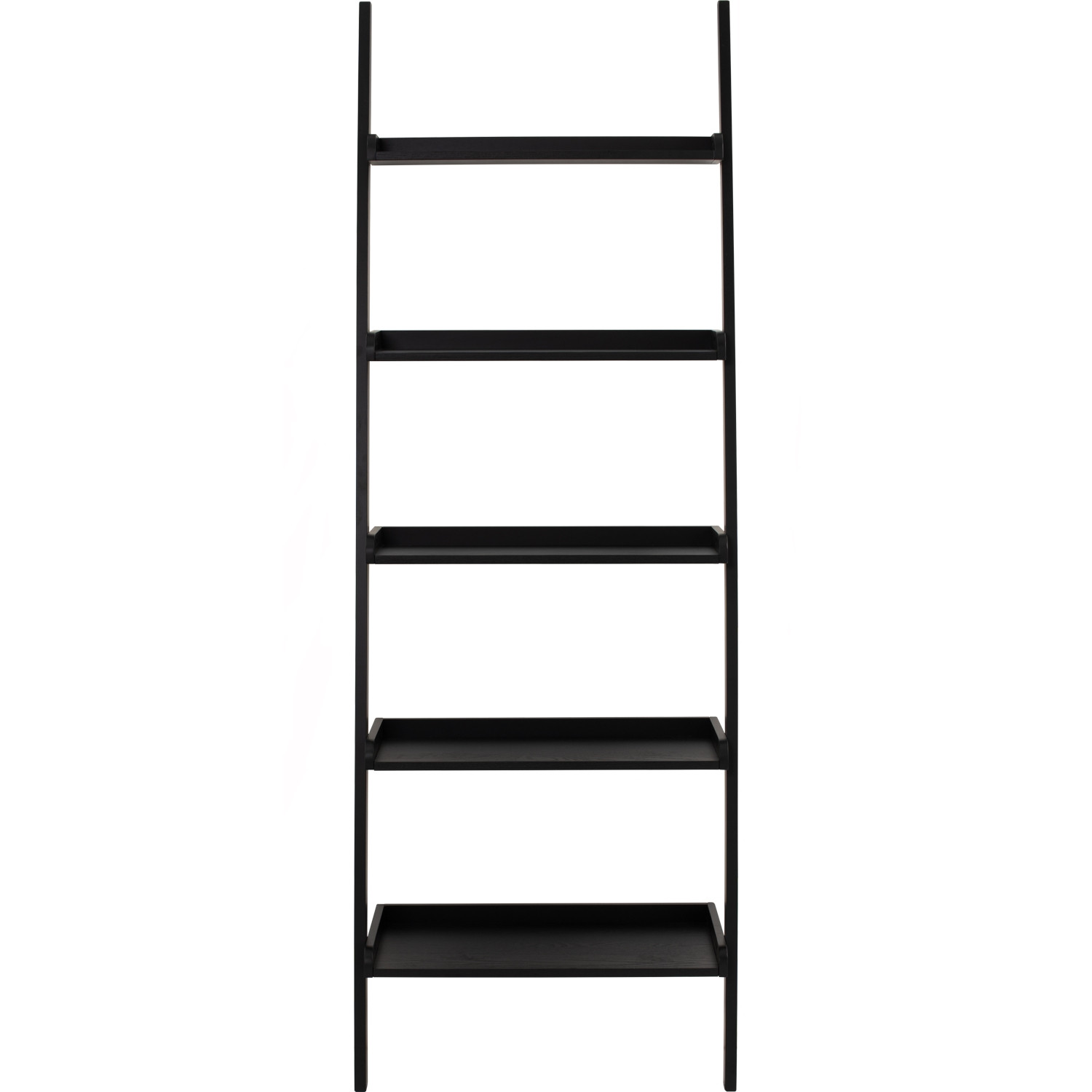 Milt leaning bookcase in Black colour. The Milt Leaning Bookcase in black finish offers a sleek contemporary design with minimalist appeal. Built from Malaysian oak, MDF, and ash veneer, it stands against the wall to create vertical storage with a modern edge. Its deep black finish brings sophistication, contrasting beautifully with decorative displays or books. Perfect for apartments, bedrooms, or offices, it works well in modern, industrial, or minimalist interiors. With its slim profile and open shelves, it combines style and practicality while saving floor space.