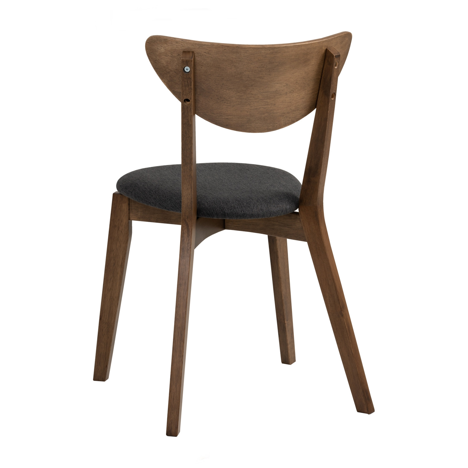 Naida dining chair in Cocoa colour frame, Cocoa colour backrest, Seal colour Dimity fabric. The Naida Dining Chair combines mid-century influence with contemporary touches. Its cocoa oak frame and backrest give a cohesive look. The fabric seat in seal tone adds comfort and elegance. Designed with a gentle curve, it provides ergonomic support. A versatile dining chair that blends timeless design with modern flair.