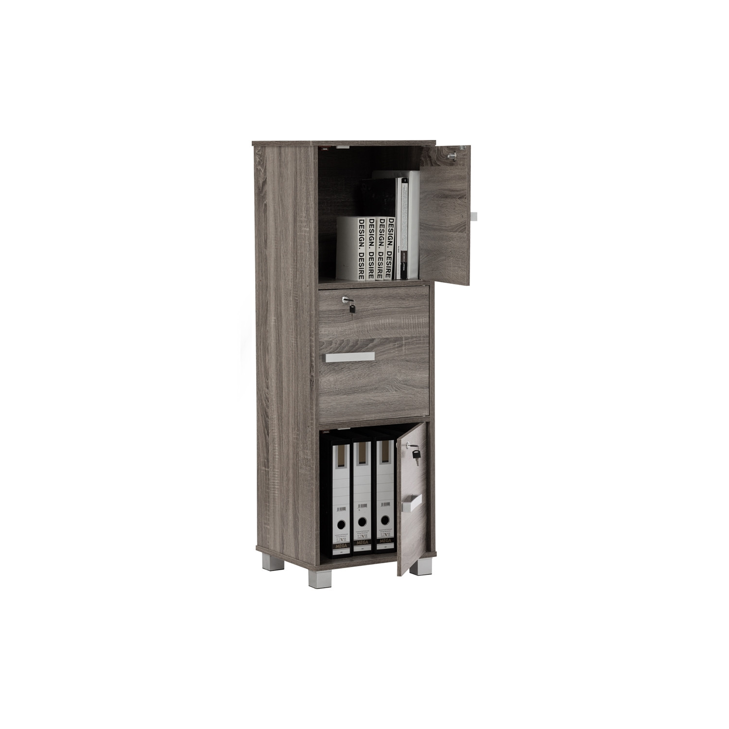 Naomi 3 door storage box with lock in Sonoma Dark colour
