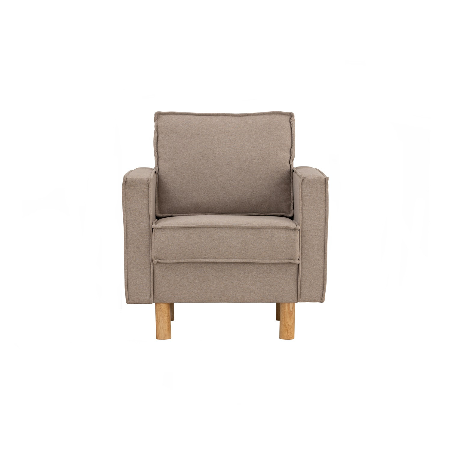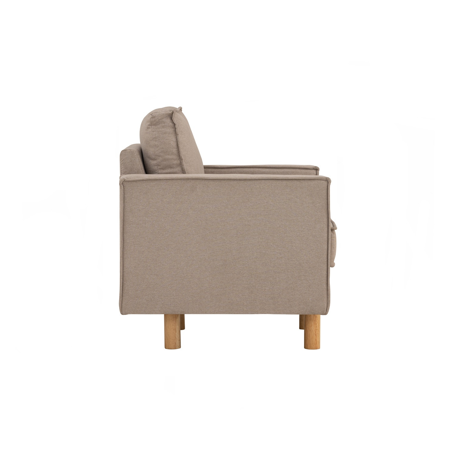 Nexon 1 seater sofa with Natural colour leg, Beige colour Meadow fabric. The Nexon 1 Seater Sofa blends functionality with mid-century modern charm. Featuring Malaysian oak legs and a soft upholstered finish, it provides both sturdiness and comfort. Its minimal form ensures easy styling across different room settings. Designed for smaller spaces, it offers a practical yet stylish seating solution. A versatile piece that adds comfort and sophistication to modern homes.