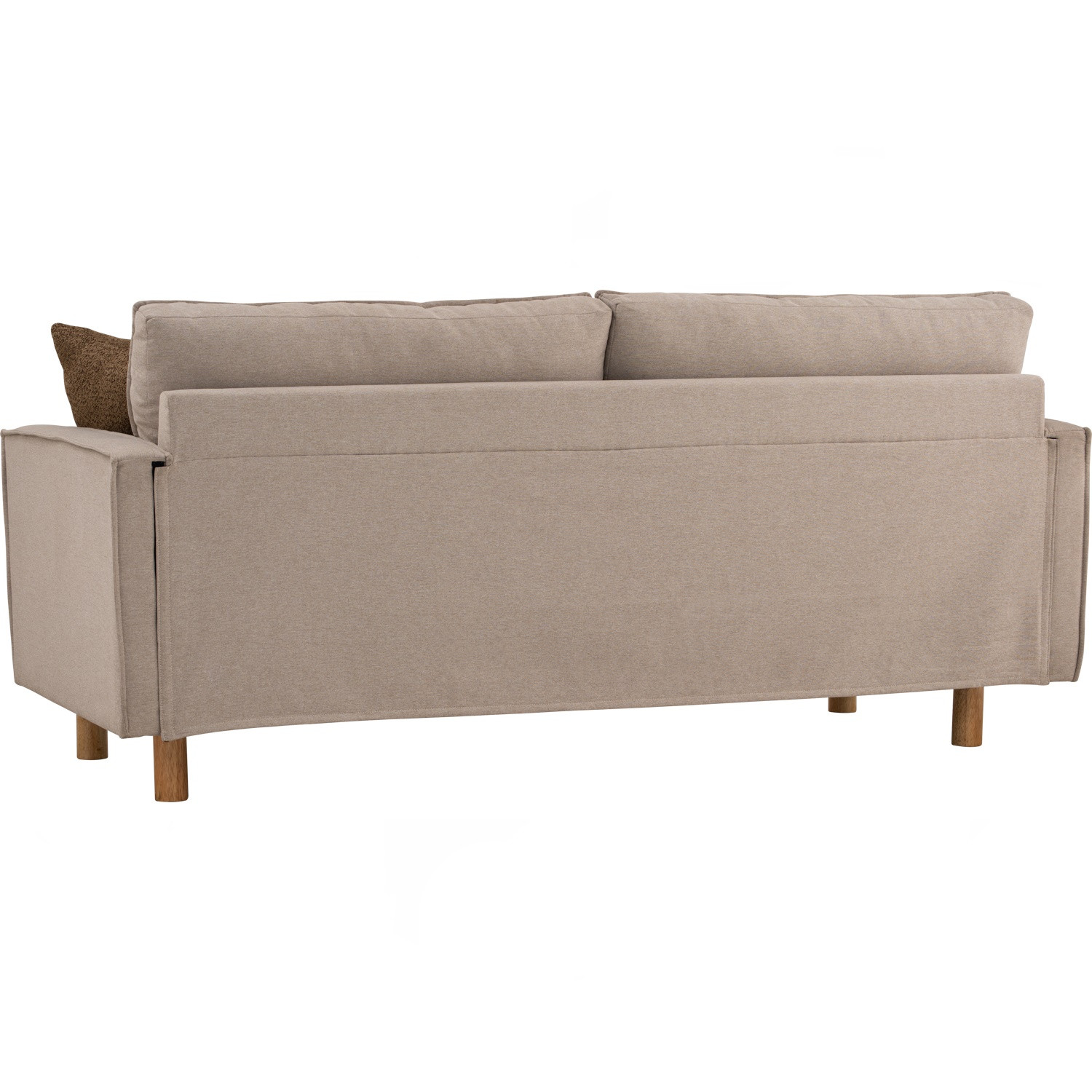 Nexon 3 seater sofa with Natural colour leg, Beige colour Meadow fabric. The Nexon 3 Seater Sofa reflects Mid-Century Modern design principles with Contemporary versatility, making it an excellent addition to modern living spaces. Supported by Malaysian Oak legs in a natural finish, the structure is both sturdy and refined. Upholstered in Meadow fabric in a warm beige tone, it delivers a timeless and versatile look that enhances different interior palettes. Its sleek design allows it to fit seamlessly into compact spaces while still offering generous comfort. Durable and elegant, the Nexon sofa is crafted for those who value both functionality and modern aesthetics.
