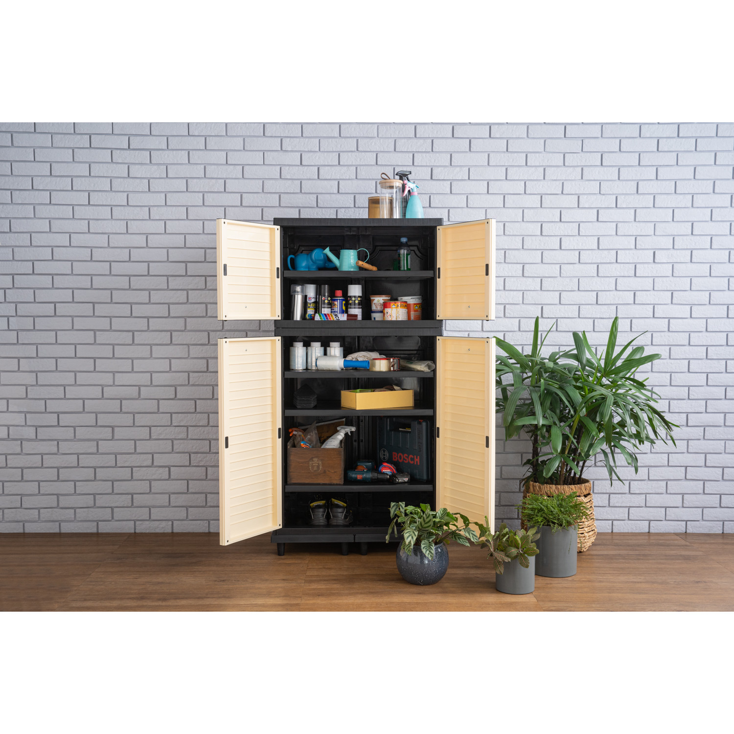 Optimus add on cabinet with Black colour body, Beige colour door