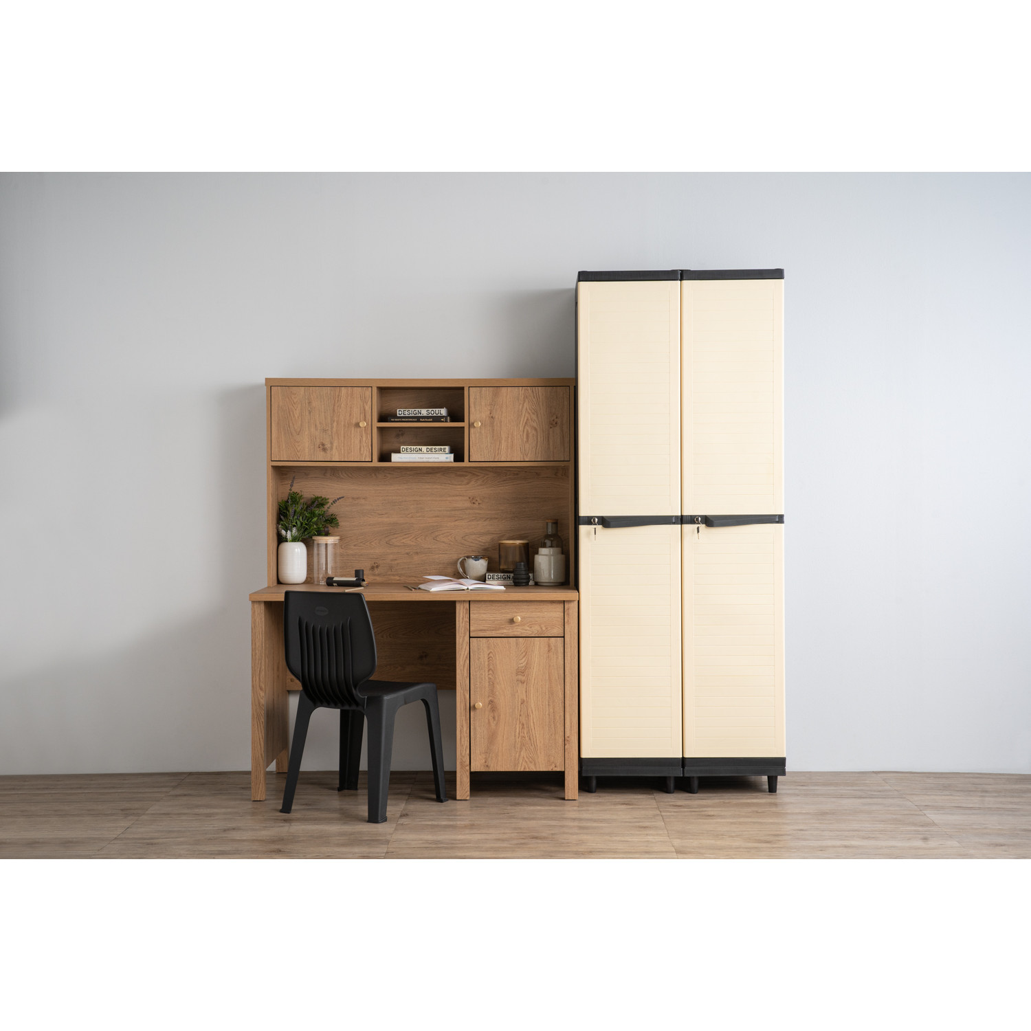 Optimus slim cabinet with Black colour body, Beige colour door