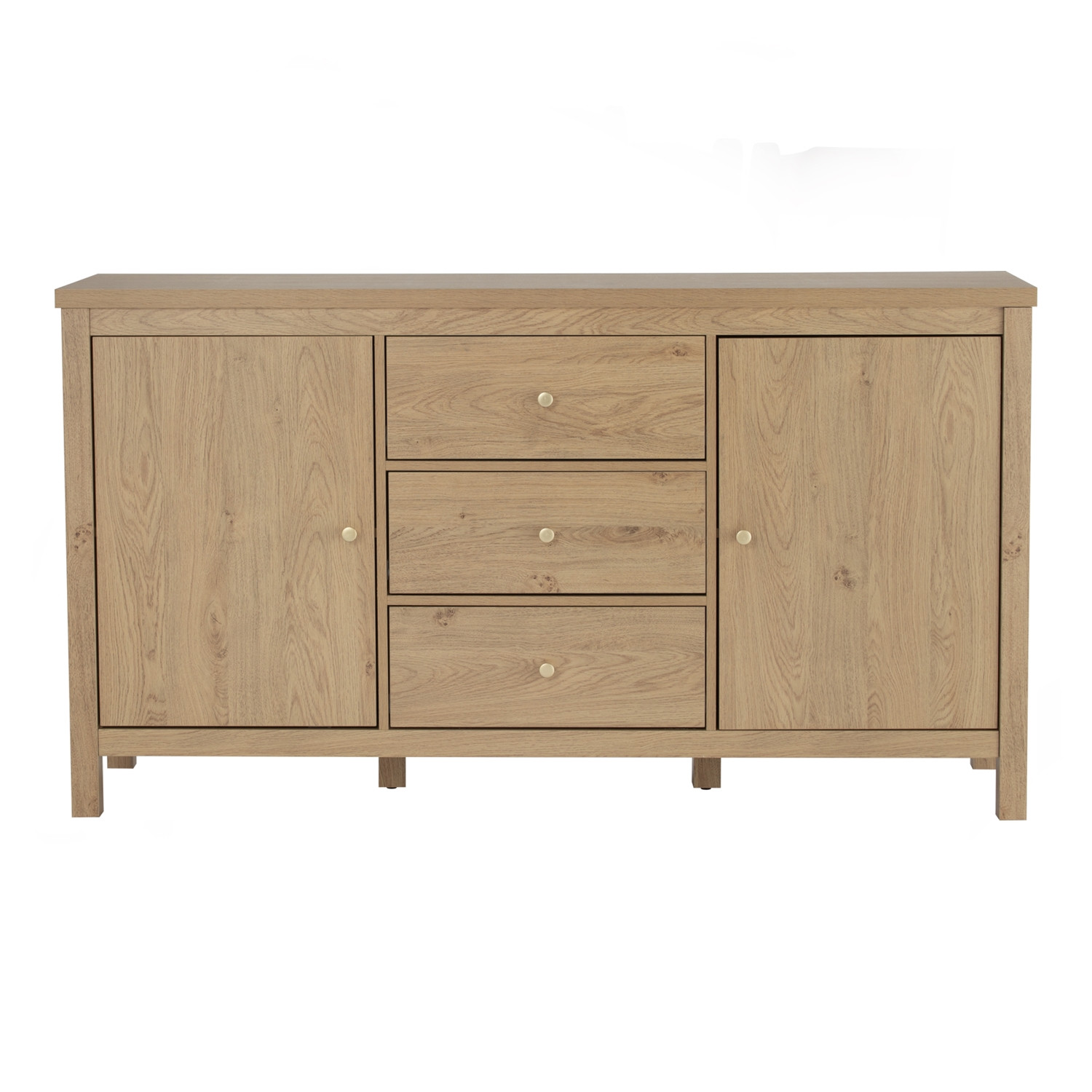 Rhodes 1.6m sideboard in Oak colour. The Rhodes Sideboard presents a modern minimalist design, crafted entirely from laminated board for a clean and cohesive look. Finished in natural oak tones, it offers a warm and timeless aesthetic that easily complements a variety of interiors. Its structured design provides reliable storage while maintaining a streamlined profile. Perfect for dining rooms, living spaces, or hallways, the Rhodes combines affordability with functionality. With its simple yet versatile design, it is an excellent choice for homes seeking practicality without compromising style, making it an ideal solution for everyday organization in contemporary settings.
