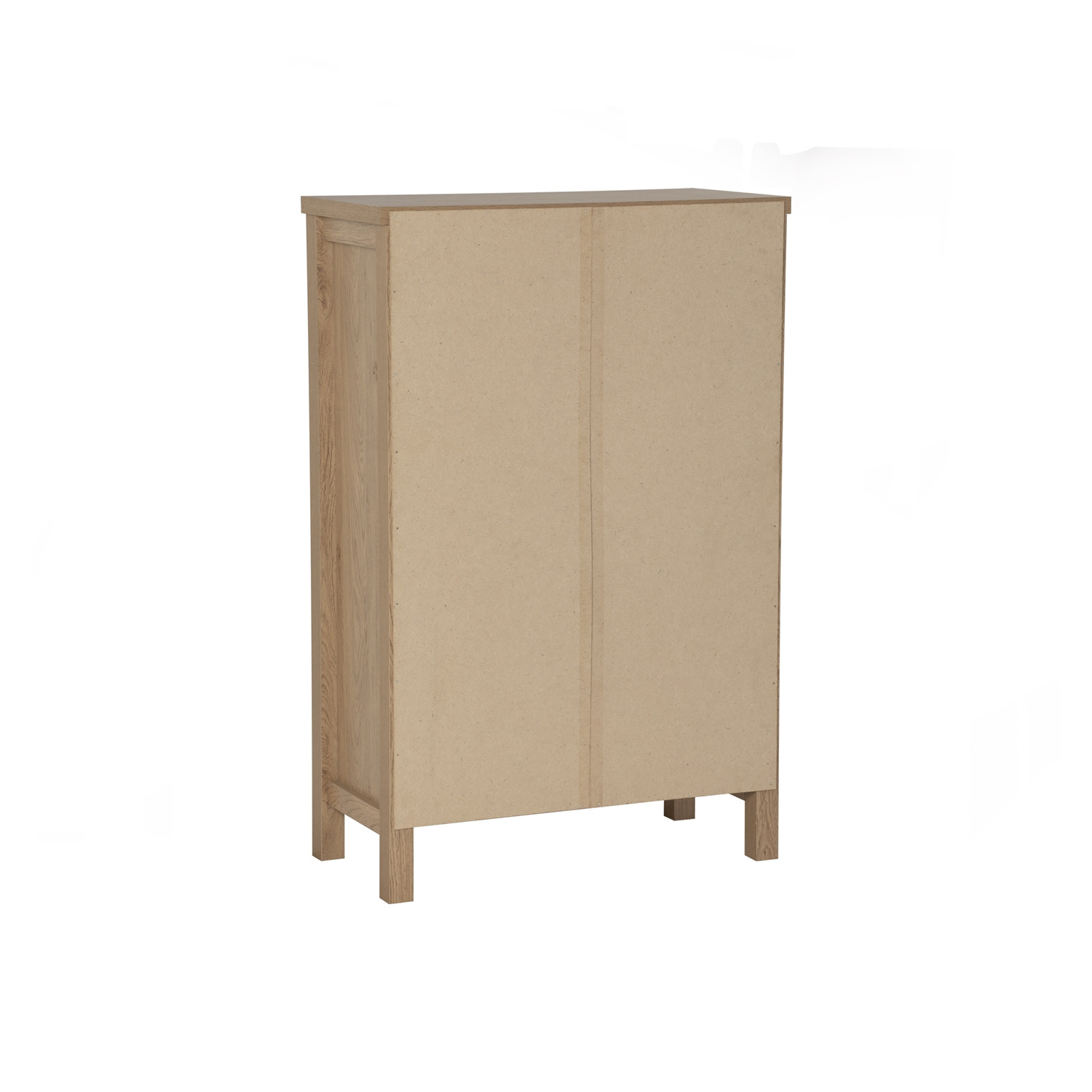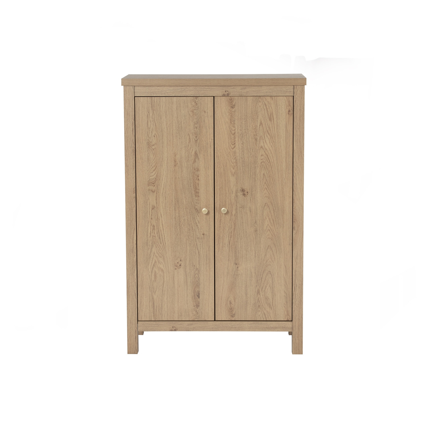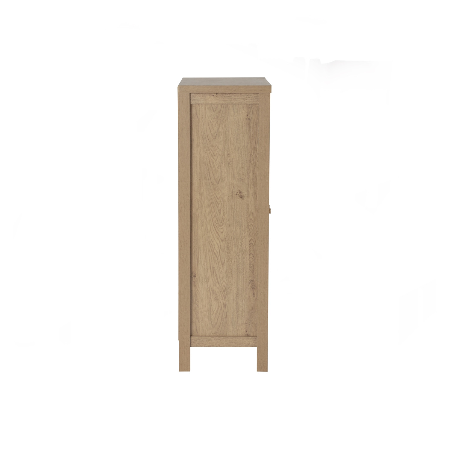 Rhodes multi function cabinet in Oak colour. The Rhodes Multi Function Cabinet balances rustic warmth with Mid-Century Modern appeal. Crafted from laminated board in a natural oak finish, it offers a compact yet practical solution for everyday storage. With its clean lines and durable structure, this piece is versatile enough for living rooms, bedrooms, or workspaces.