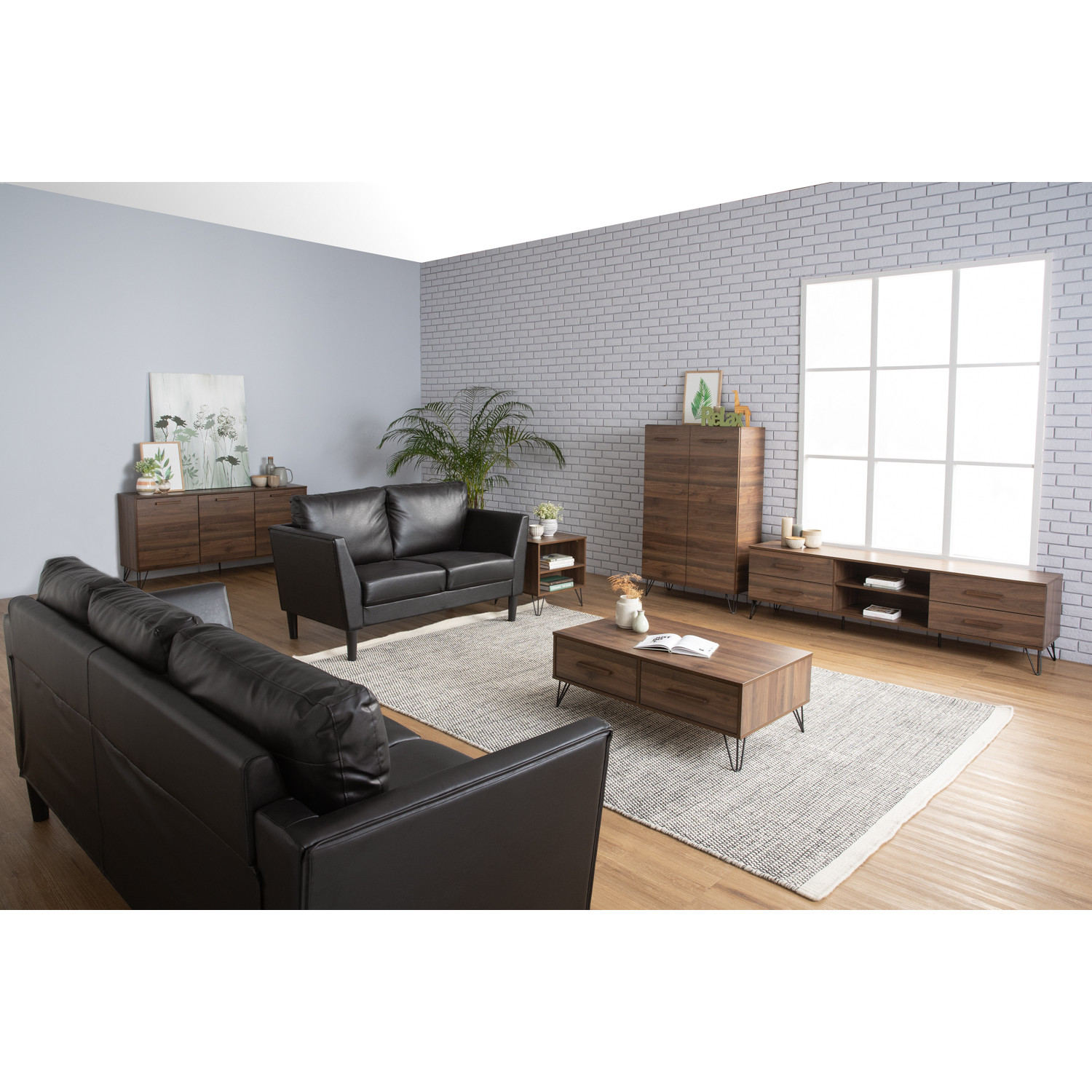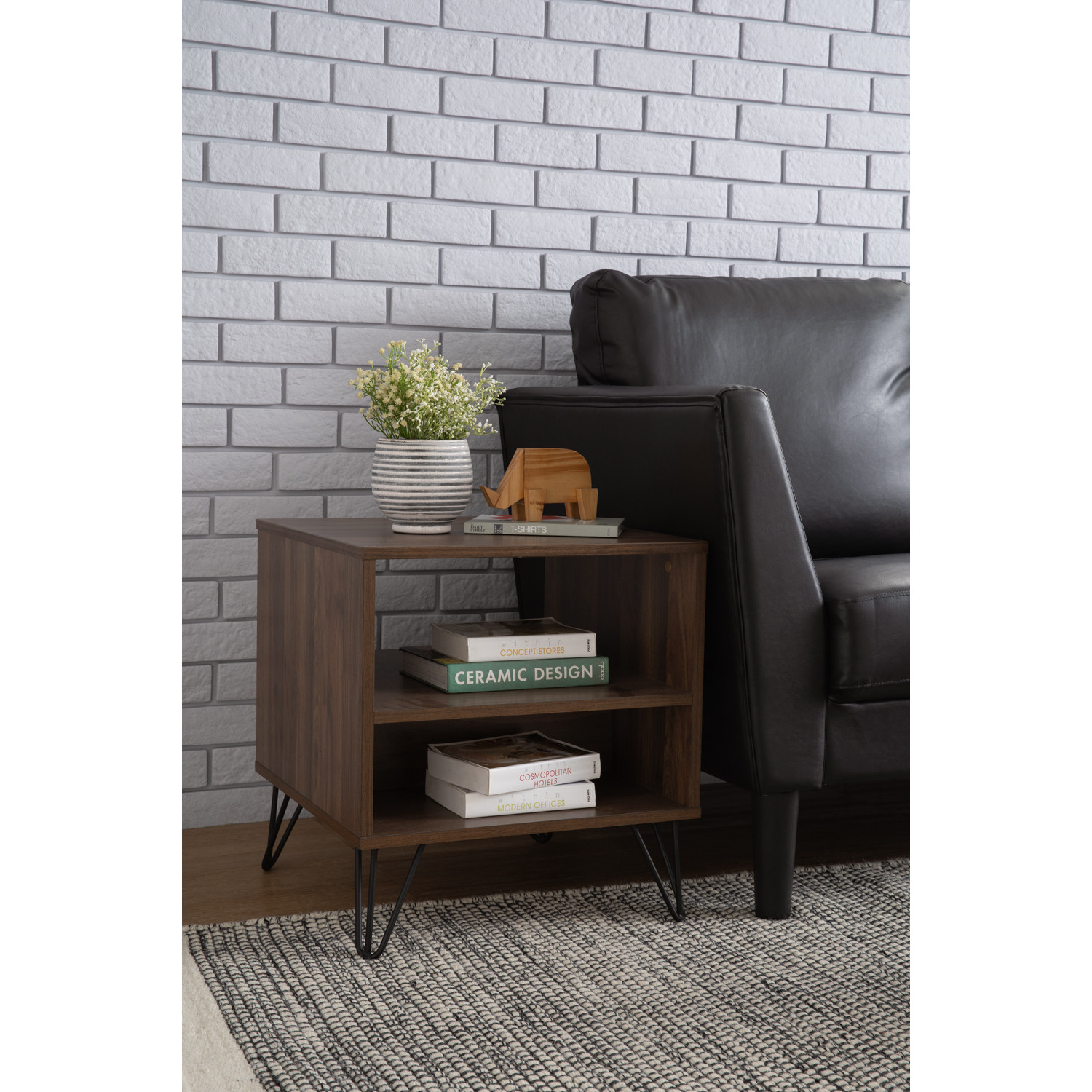 Samos side table in Matt Black Epoxy colour leg, Walnut colour top. The Samos Side Table combines mid-century modern style with minimalist appeal. Designed with a durable metal frame and a laminated top, it offers both resilience and charm. Its versatile look allows it to pair well with a variety of furniture styles. Ideal as a side table in the living room or as a nightstand in the bedroom. A stylish and functional addition to modern spaces.
