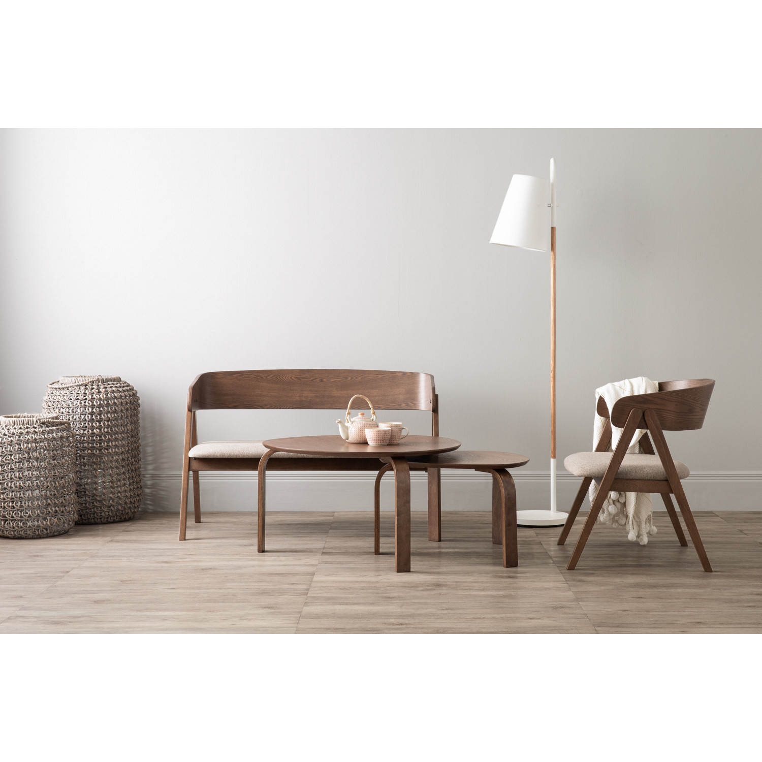 Sandra set of 2 coffee table in Cocoa colour. The Sandra Set of 2 Coffee Tables offers both style and flexibility, making it a smart addition to modern homes. Crafted with bentwood legs and ash veneer tops, the pair showcases natural beauty with durable craftsmanship. Their nesting design allows them to be stacked together for a compact look or separated to provide extra surface space when needed. Warm wood tones complement a wide range of interiors, from minimalist apartments to cozy family rooms. The larger table serves as a centerpiece, while the smaller table adds convenience for gatherings. Timeless and practical, the Sandra set balances elegance with functionality.