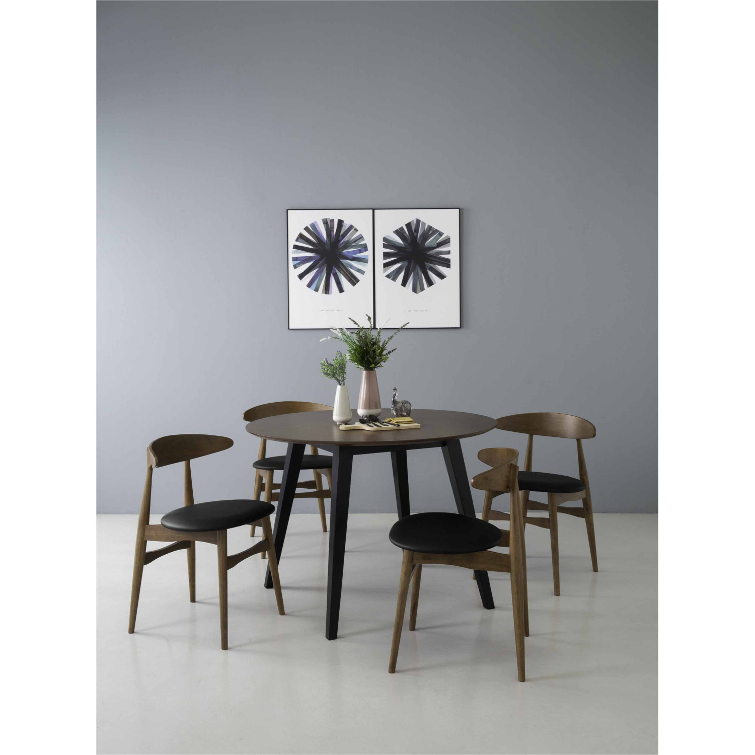 Telyn chair in Cocoa colour frame, Espresso colour Vinyl seat. The Telyn Dining Chair balances Mid-Century Modern sophistication with Rustic practicality. Constructed with Malaysian Oak legs in a cocoa finish, it ensures strength and a natural aesthetic. Upholstered in espresso-toned vinyl, the seat is durable and easy to maintain, making it ideal for high-use spaces. Suitable for dining areas, restaurants, or commercial projects, the Telyn Chair blends timeless design with everyday functionality.