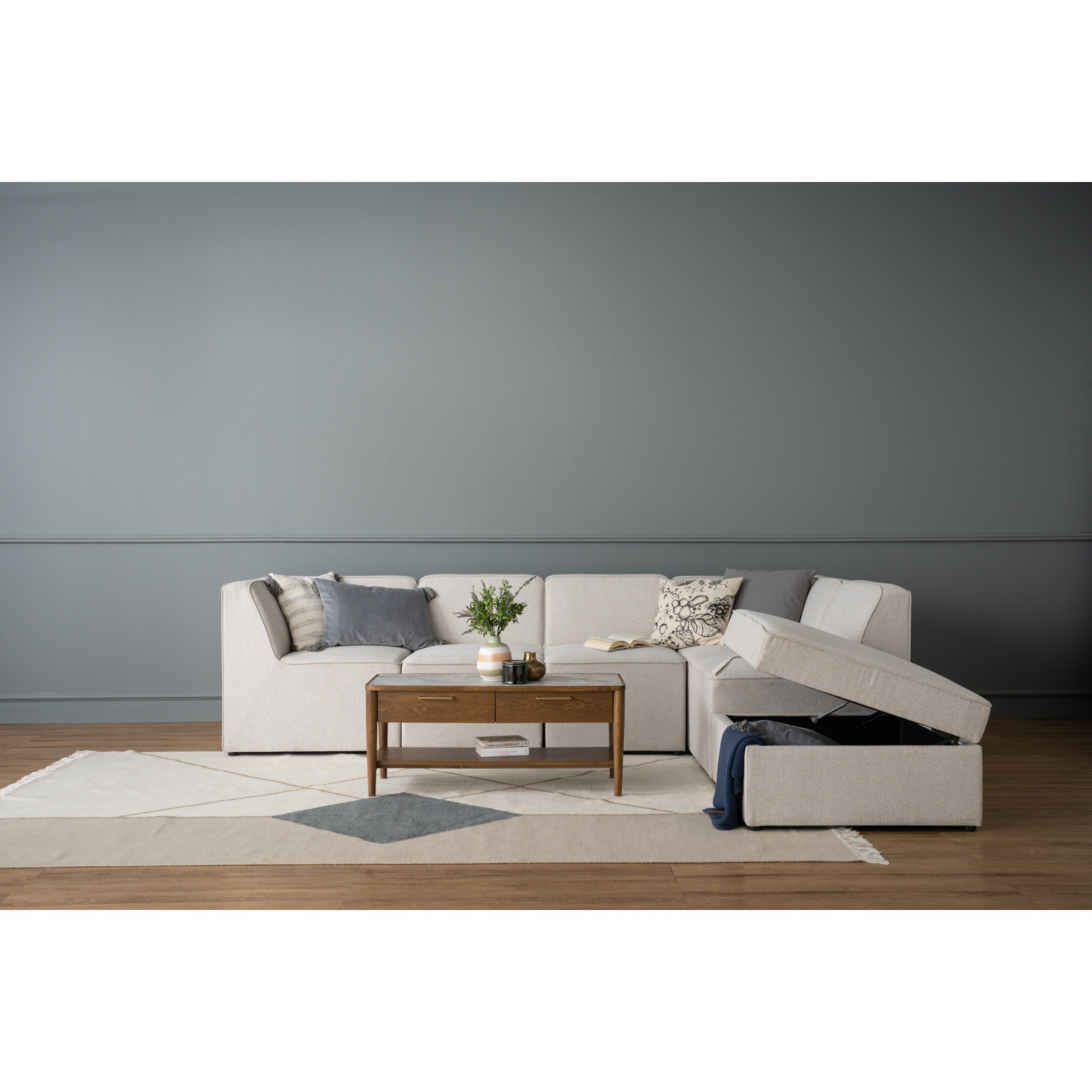 Traverese ottoman with storage in Black colour leg, White colour Chenille fabric. The Traverese Ottoman with Storage combines Mid-Century Modern aesthetics with Contemporary functionality, offering style with added utility. Built on sturdy Malaysian Oak legs in a sleek black finish, it ensures long-lasting support. Upholstered in chenille fabric in a crisp white shade, it presents a clean and sophisticated look. With hidden storage inside, the ottoman adds practicality while maintaining a refined design, making it a smart choice for compact living spaces or versatile seating areas.