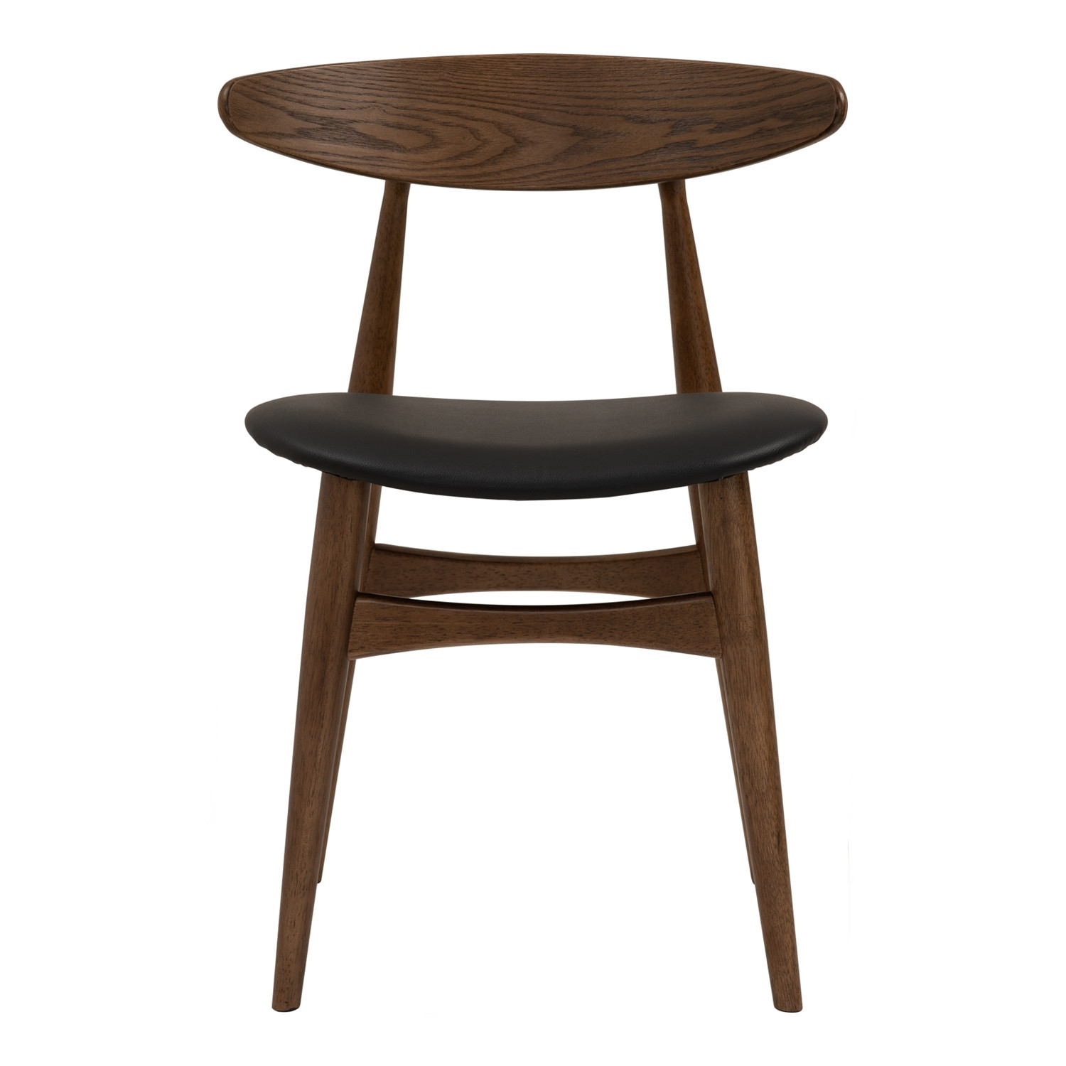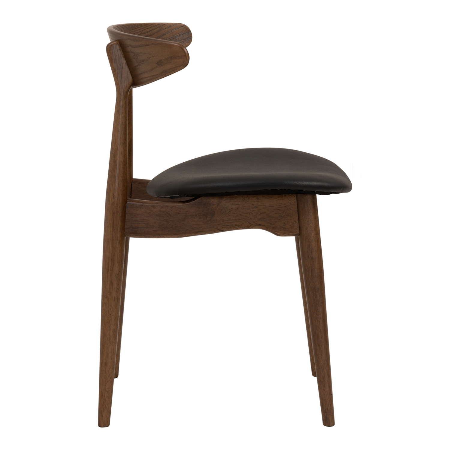 Tricia Dining Chair in Cocoa colour frame, Espresso colour Vinyl seat. The Tricia Dining Chair combines rustic appeal with mid-century modern form. Its cocoa oak legs and bentwood back deliver lasting strength and organic warmth. A cushioned vinyl seat in espresso tone offers comfort with easy maintenance, ideal for daily use. The balanced silhouette works well in both casual and formal dining areas. Compact yet supportive, it’s designed for versatility in modern homes. This chair merges classic craftsmanship with practical elegance.